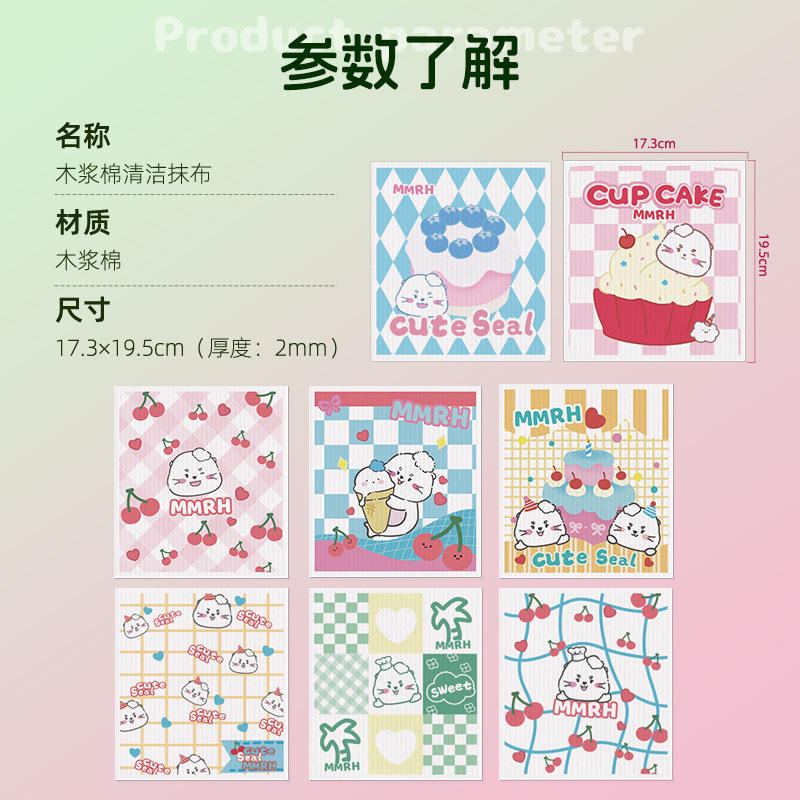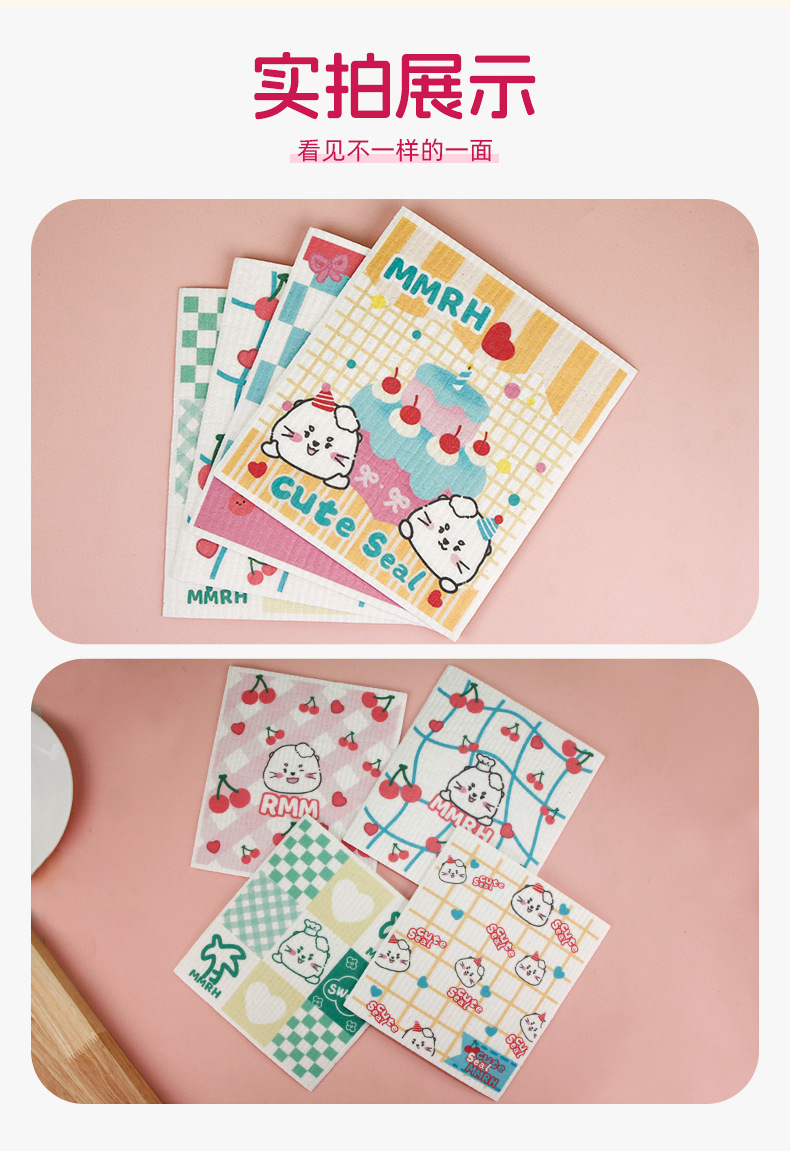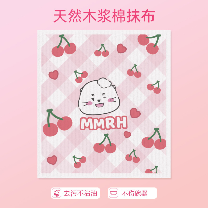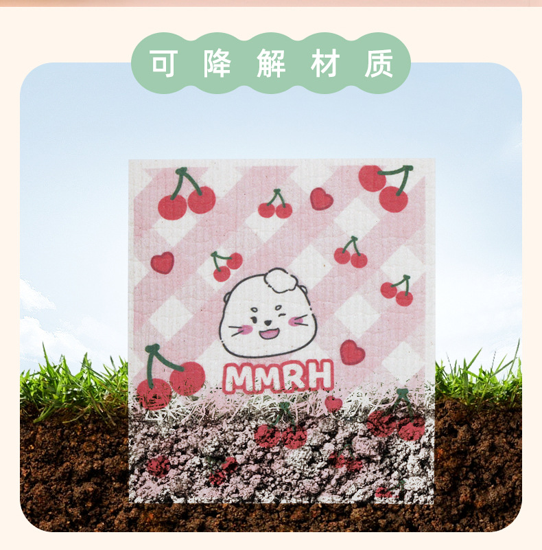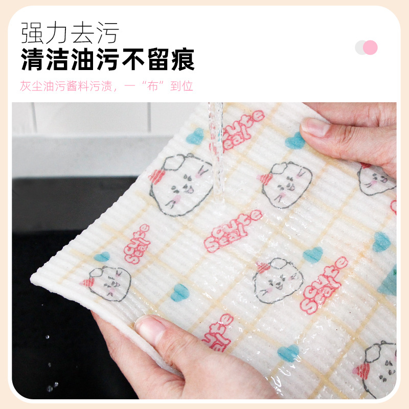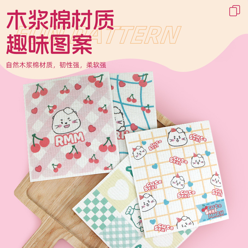 卡通印花洗碗布德国木浆棉抹布干湿两用海绵百洁布厨房清洁抹布