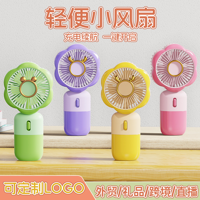 哇噢定制便携式缤纷花朵手持新款充电大风学生户外迷你小风扇礼品
