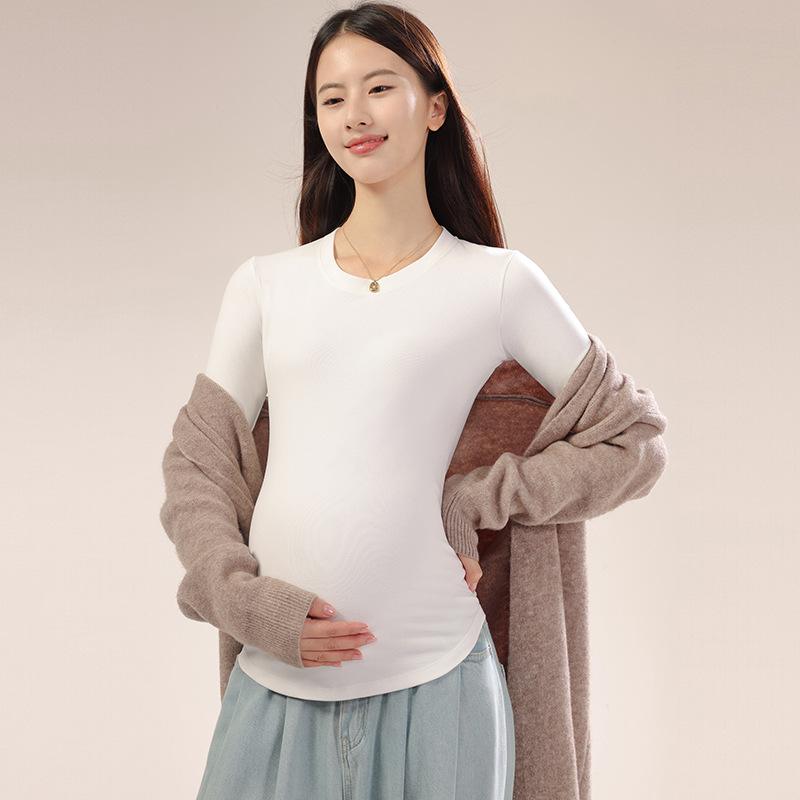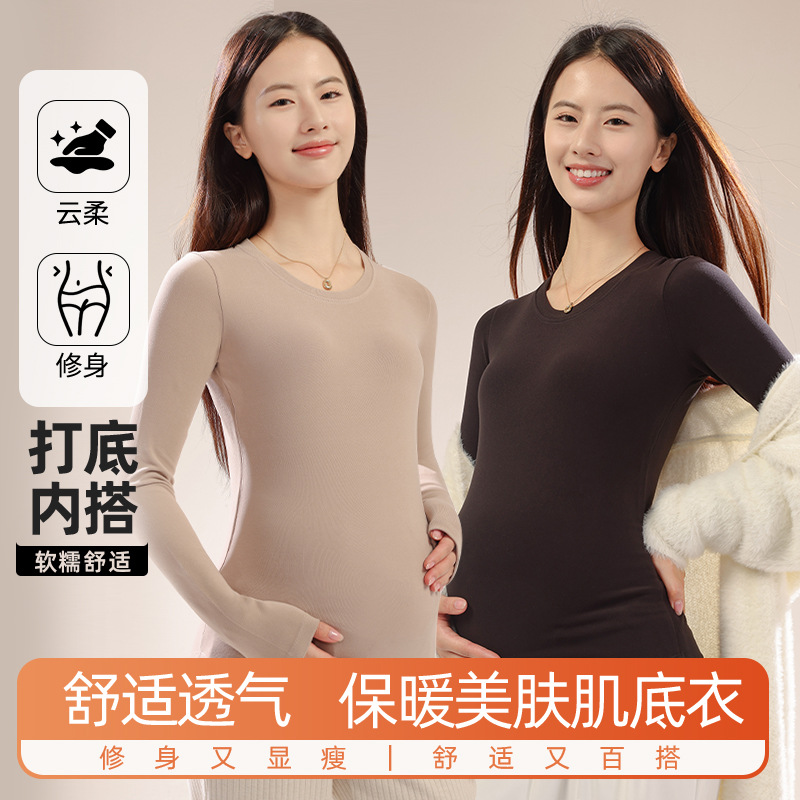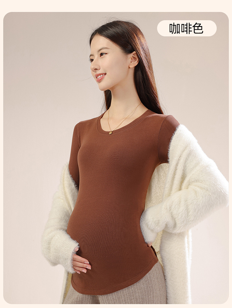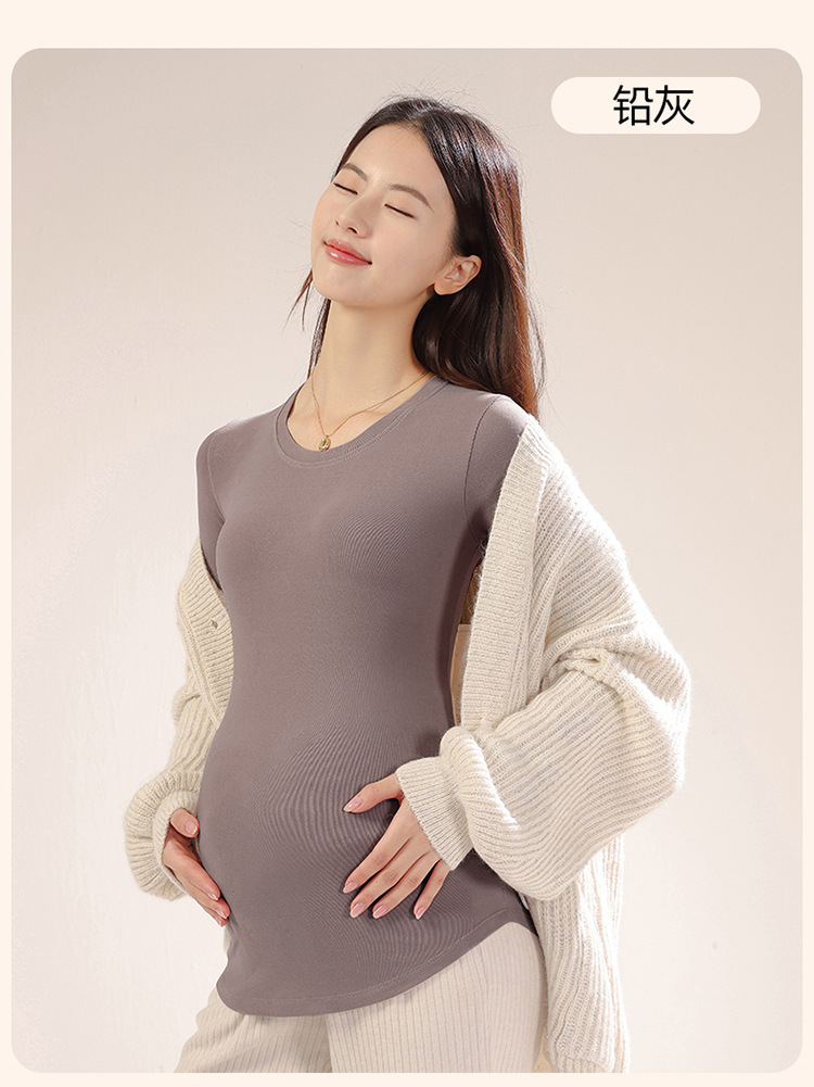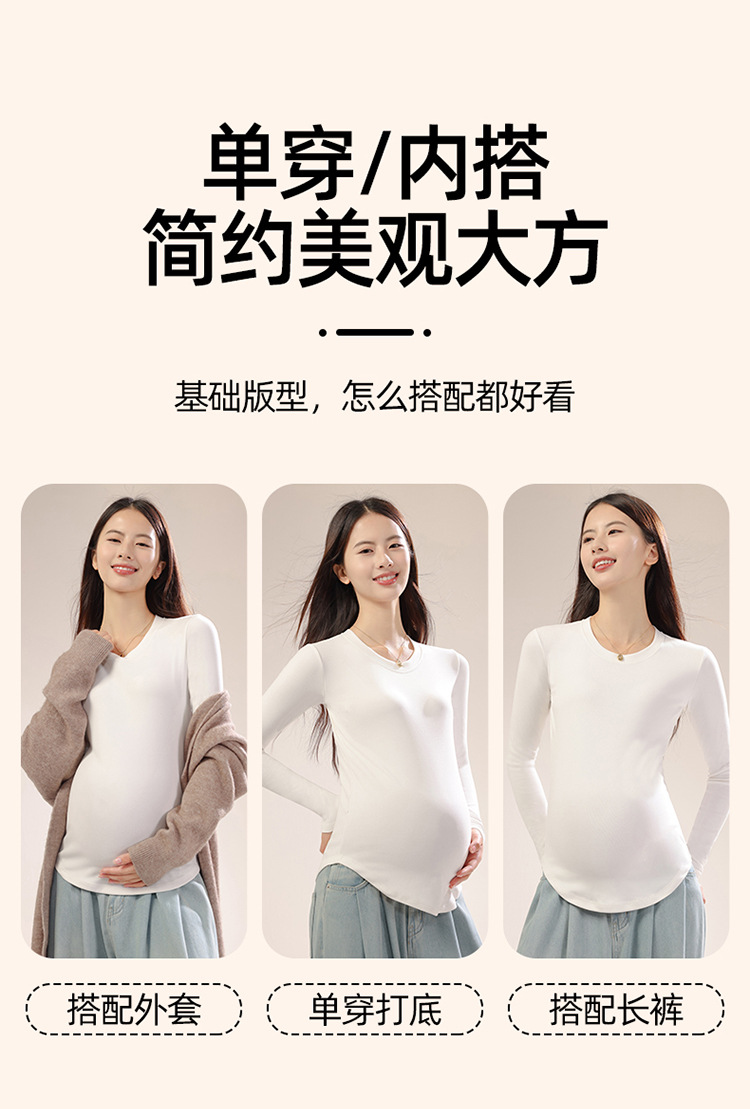 新款孕妇秋冬打底衫怀孕期外穿内搭加大码孕妇装修身圆领长袖上衣