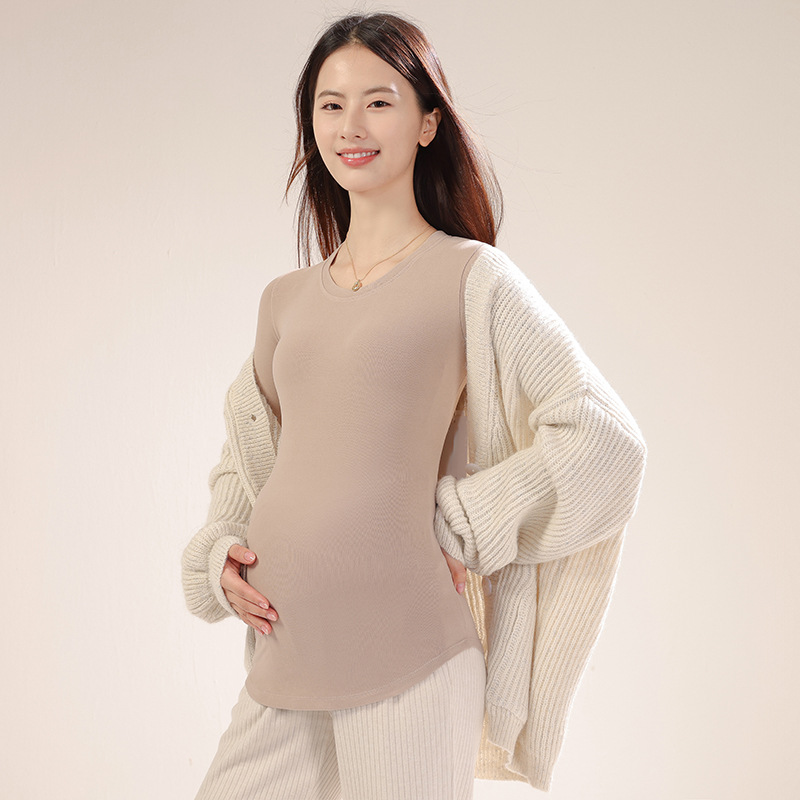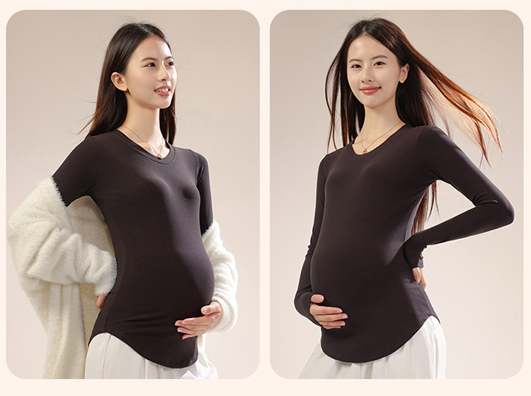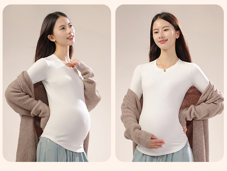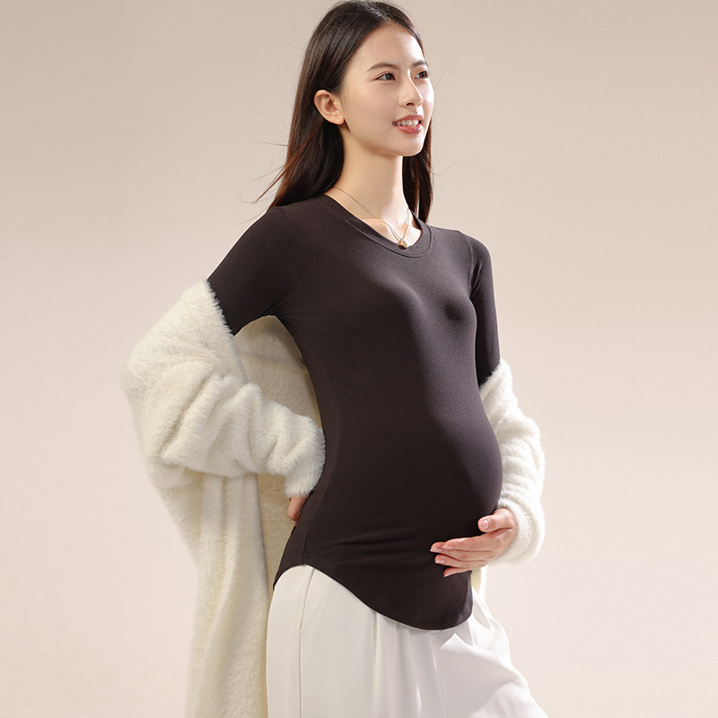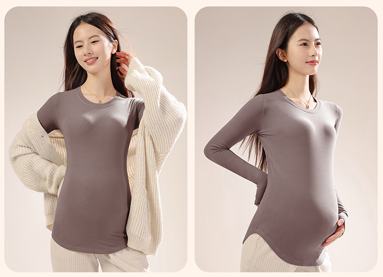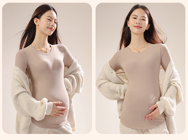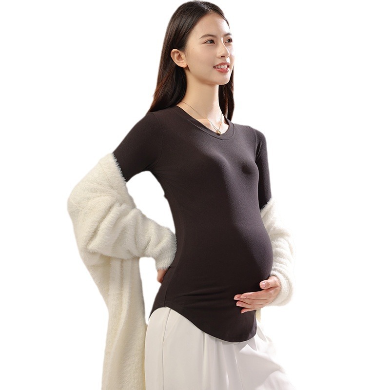 新款孕妇秋冬打底衫怀孕期外穿内搭加大码孕妇装修身圆领长袖上衣