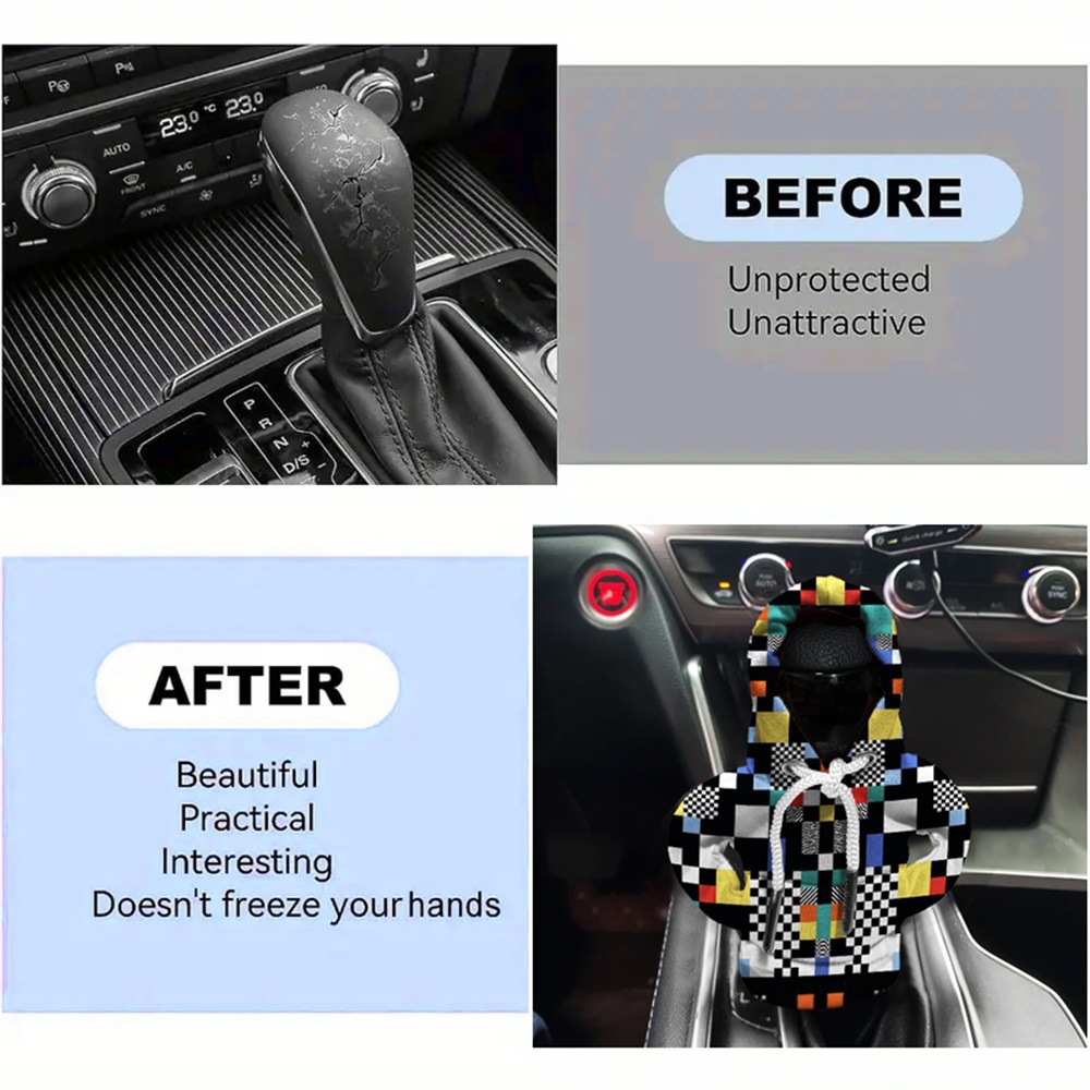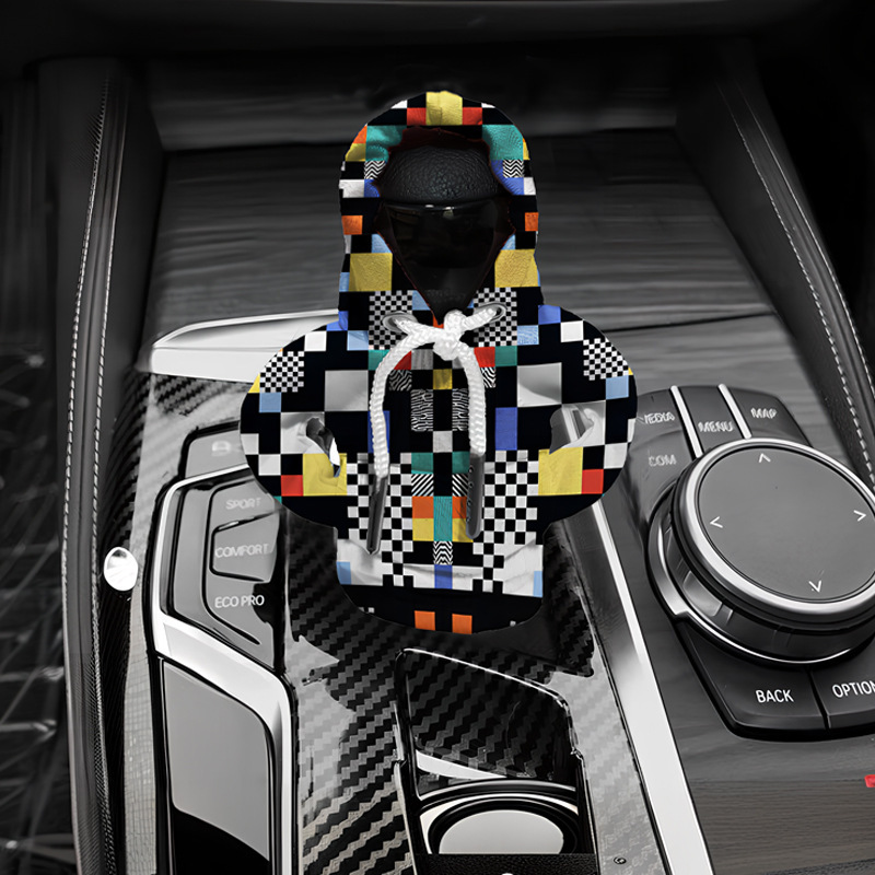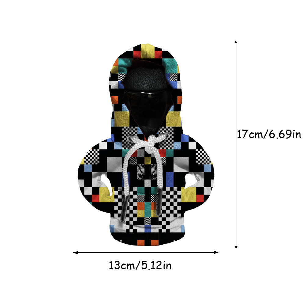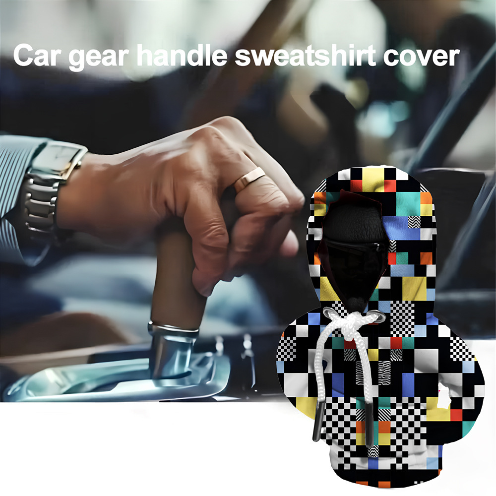 马赛克图案汽车挂档装饰小卫衣数码印花变速杆档把迷你连帽保护套