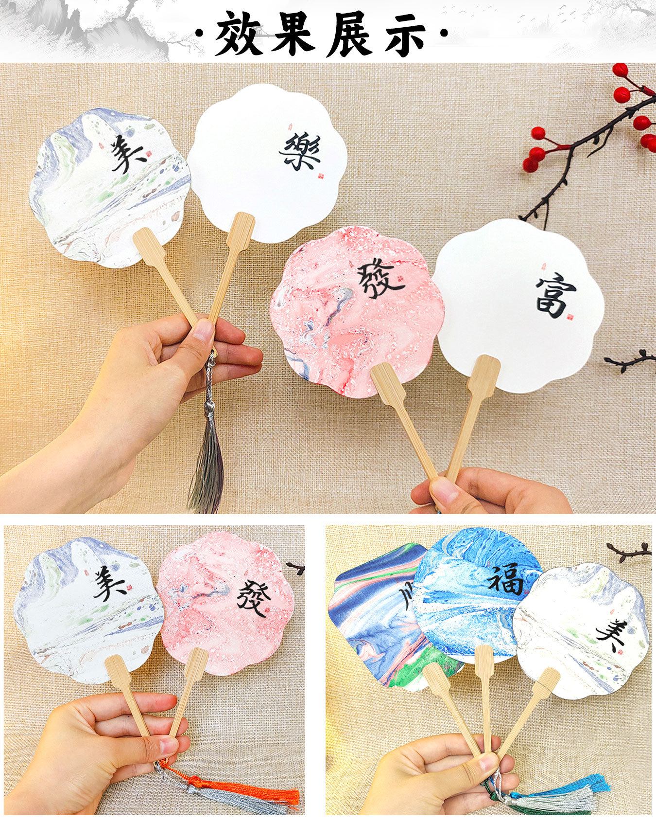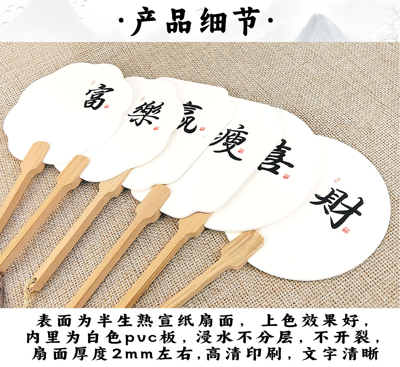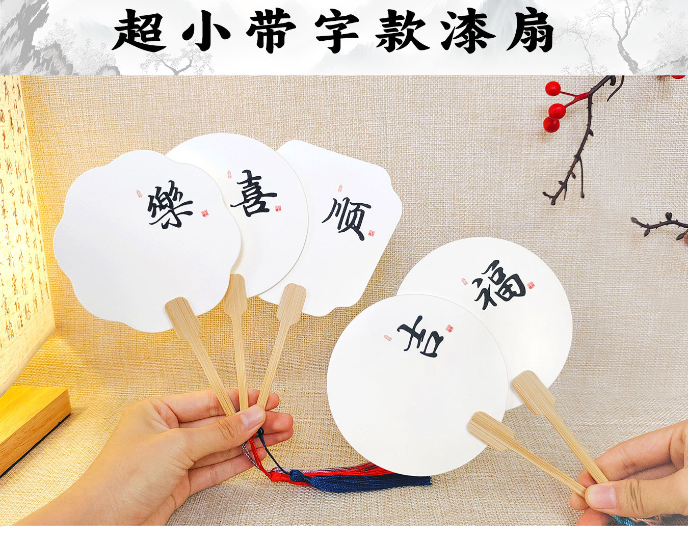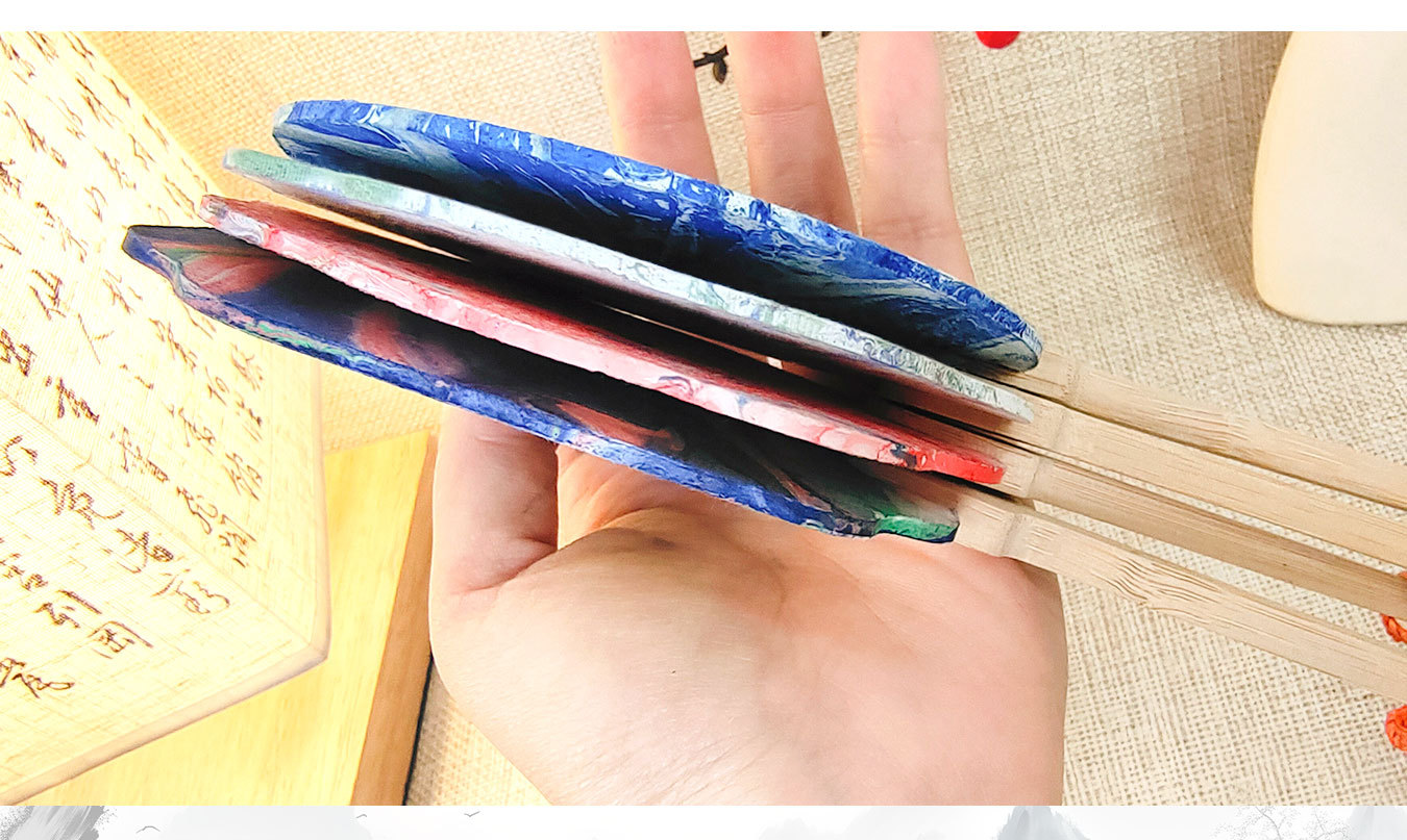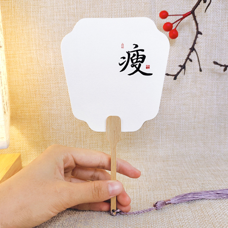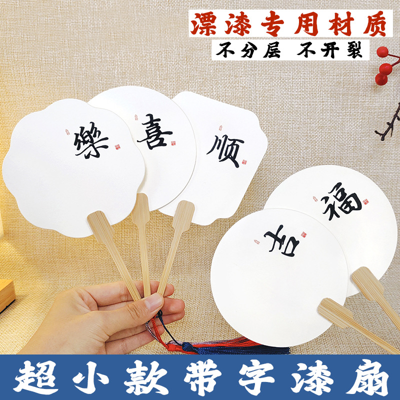 漆扇pvc带字款小号漂漆扇子书法文字大漆材料包diy袖珍迷你小团扇