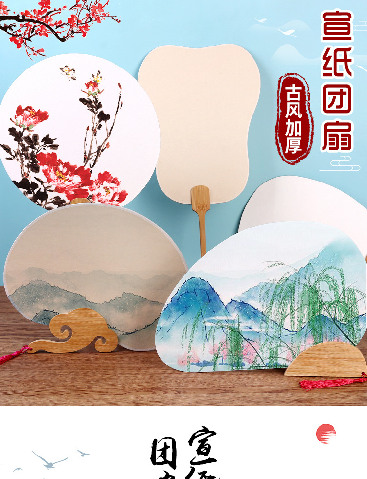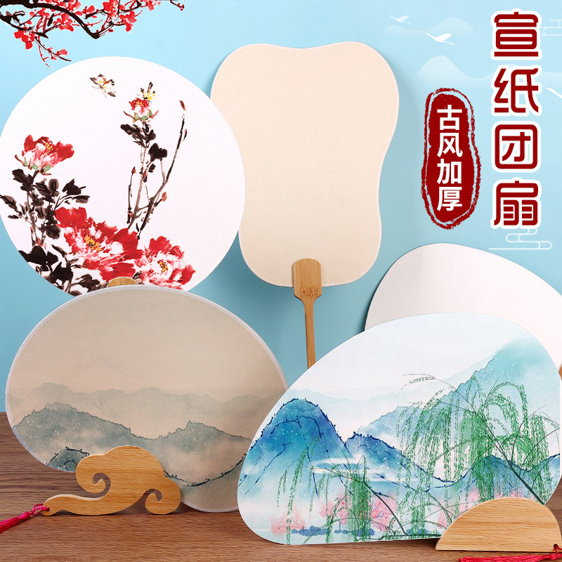双面加厚半生熟宣纸空白漆扇 手绘画国画水彩画毛笔字DIY古风团扇