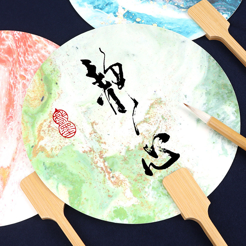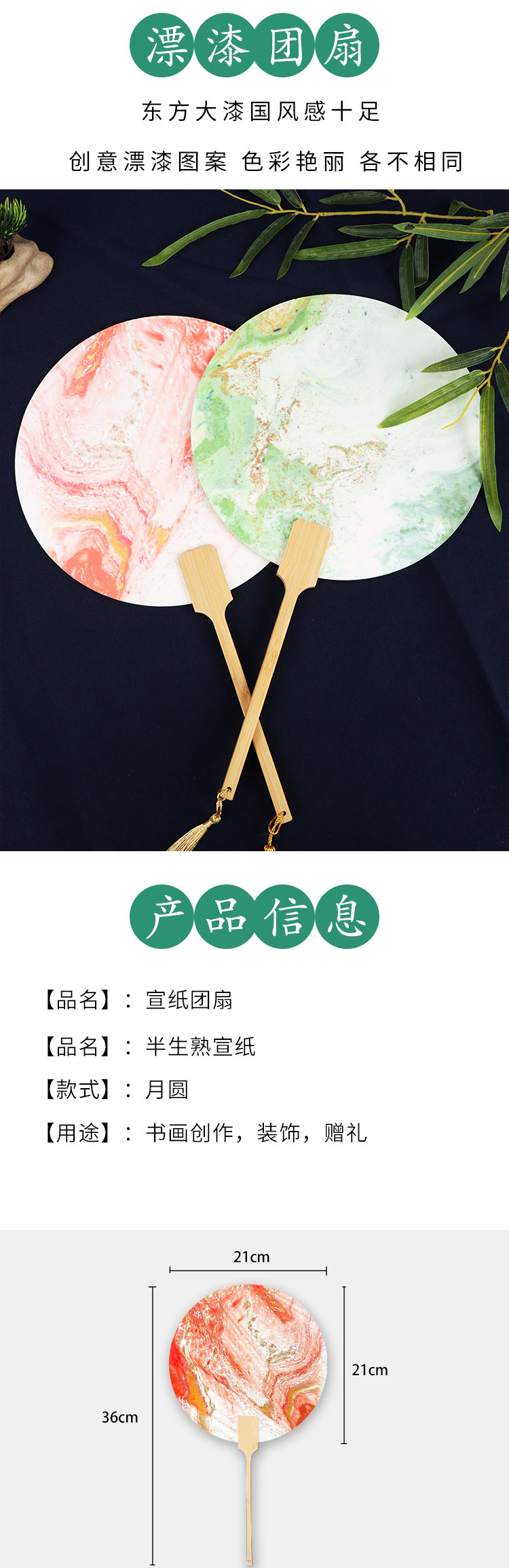 漂漆扇古风团扇复古宣纸双面染色加厚空白手绘画diy扇子书法创作