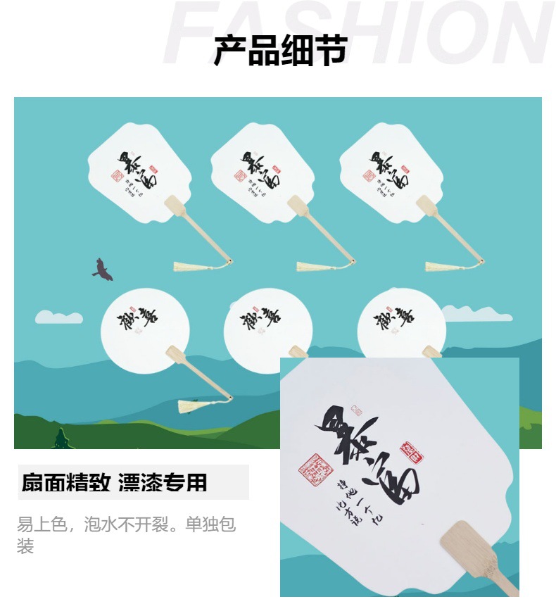 漆扇 专用扇子diy 漂漆宣纸 团扇带字款大款带字大漆扇文字书法
