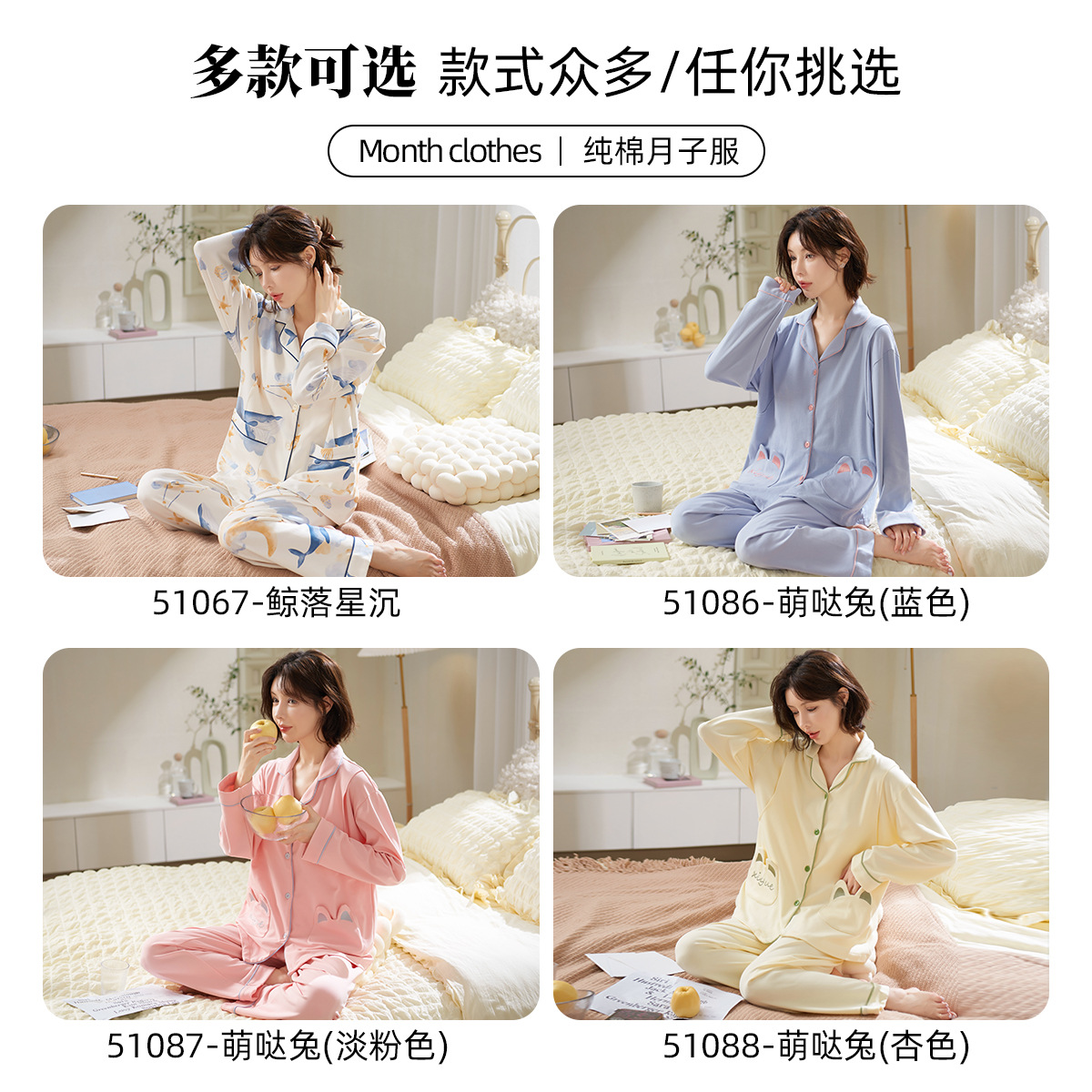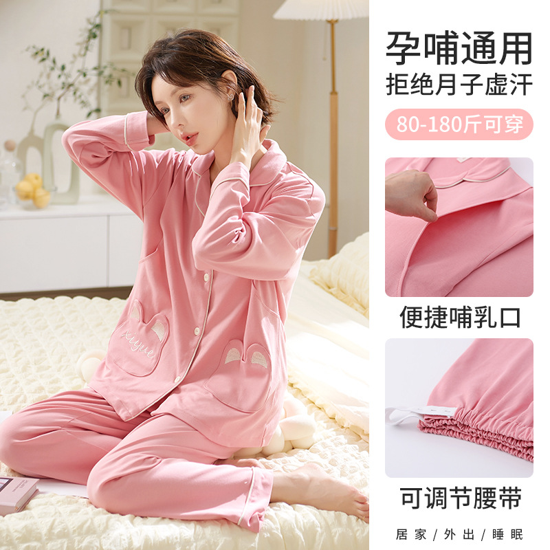 喜月批发A类月子服纯棉夏季薄款 孕期产后哺乳喂奶吸汗孕妇睡衣女