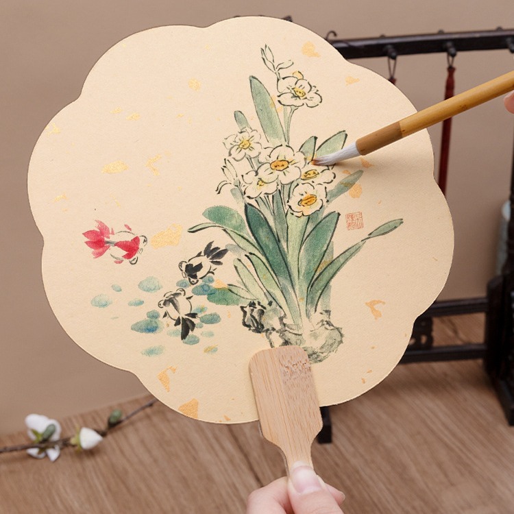 漂漆扇团扇批发加厚半生熟宣纸空白团扇专用扇子diy古风复古手绘