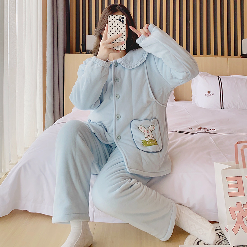 新款婴儿绒加厚夹棉现货月子服孕妇哺乳柔软套装2025年秋冬