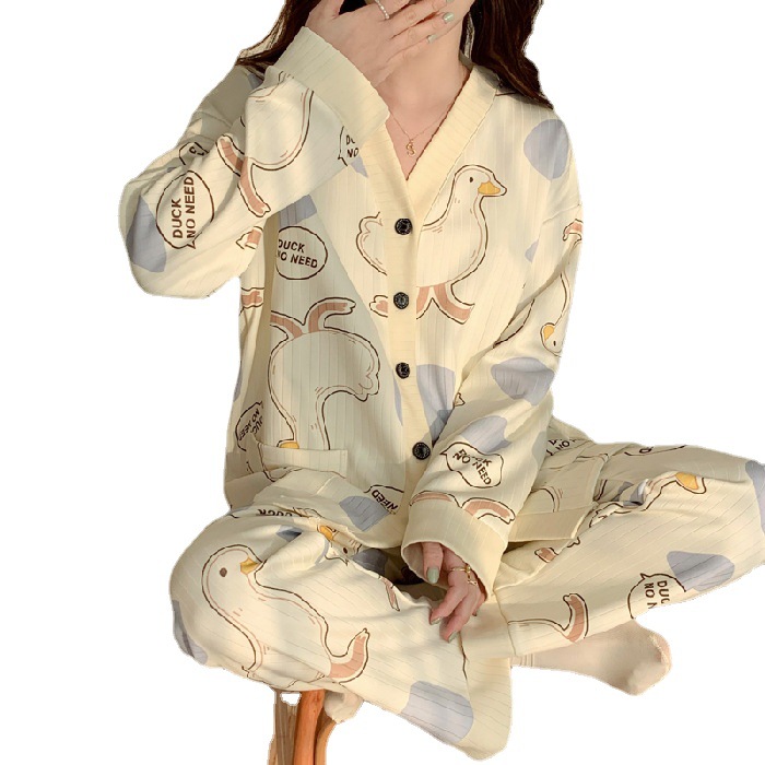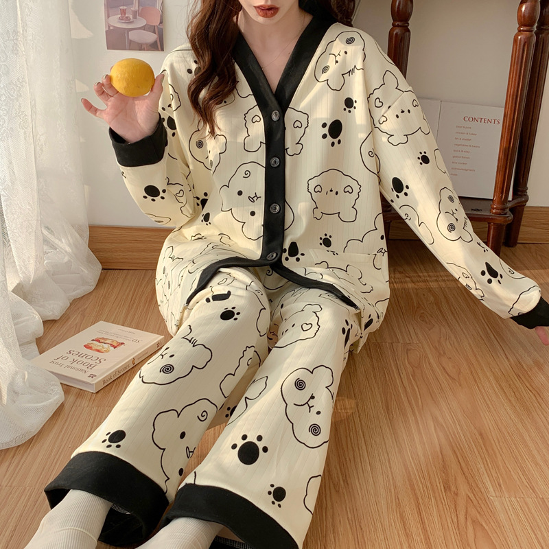 睡衣女春秋季月子服可爱甜美风韩版胖mm大码长袖长裤两件套家居服