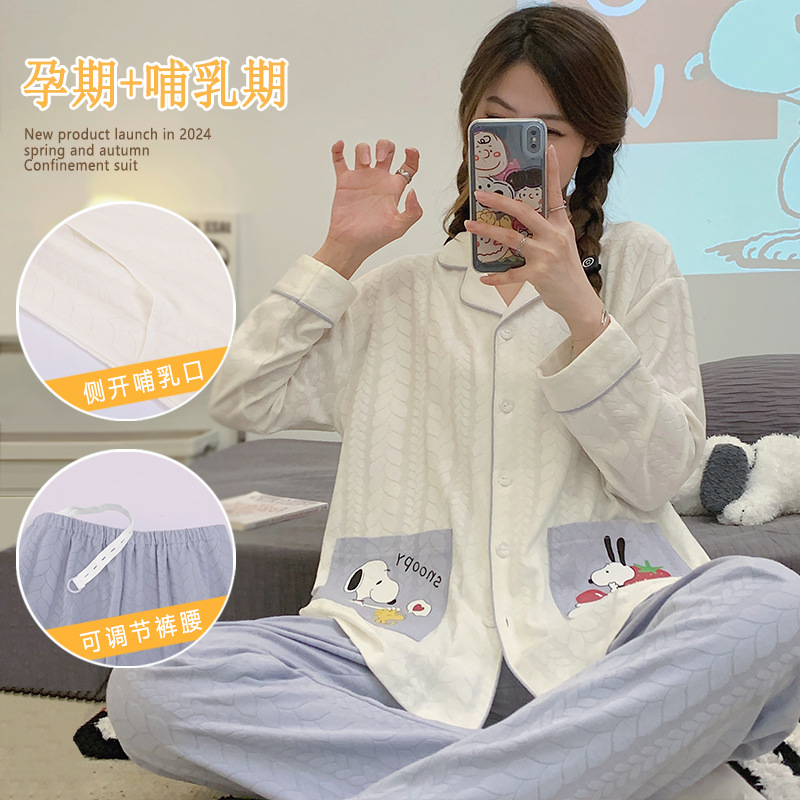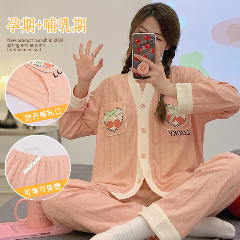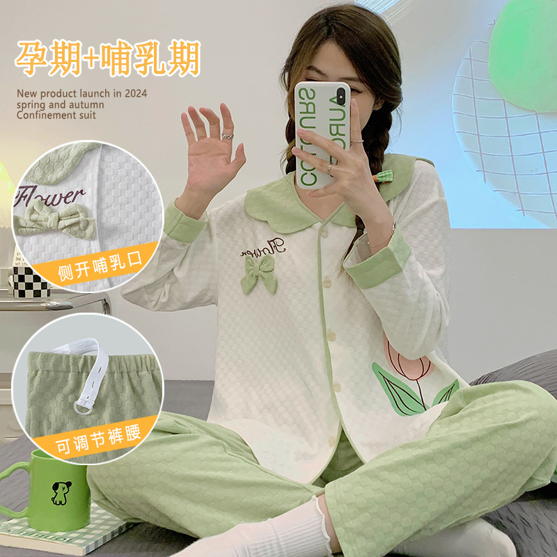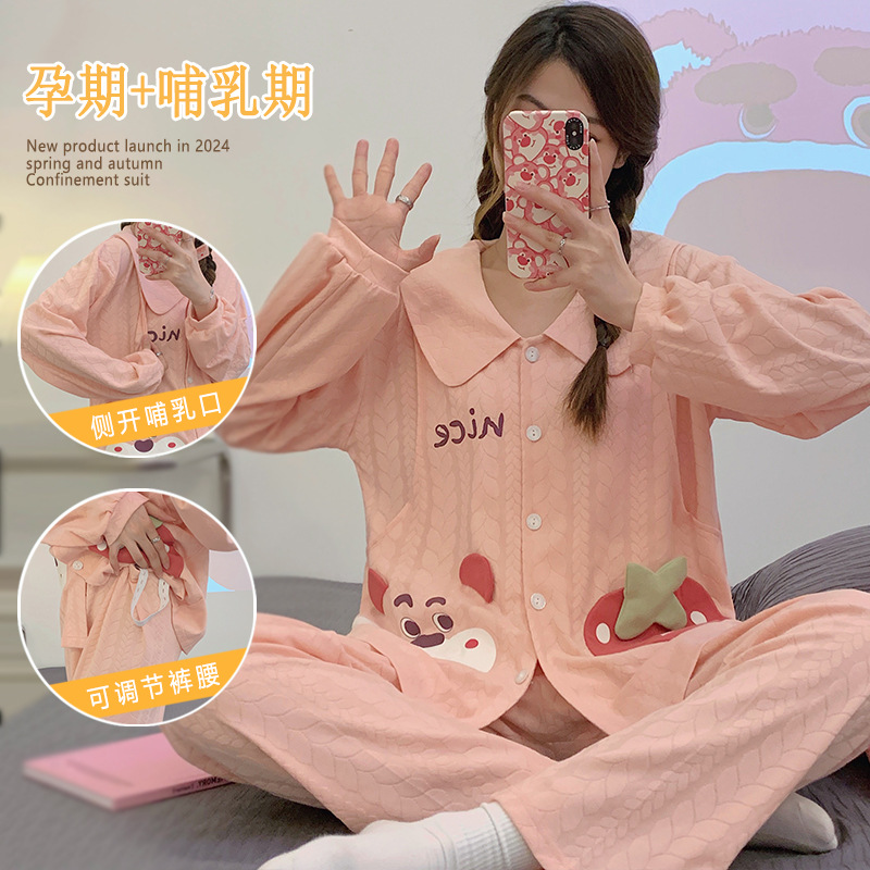 带胸垫月子服纯棉a类春夏产后哺乳孕妇睡衣夏季薄款母婴级家居服