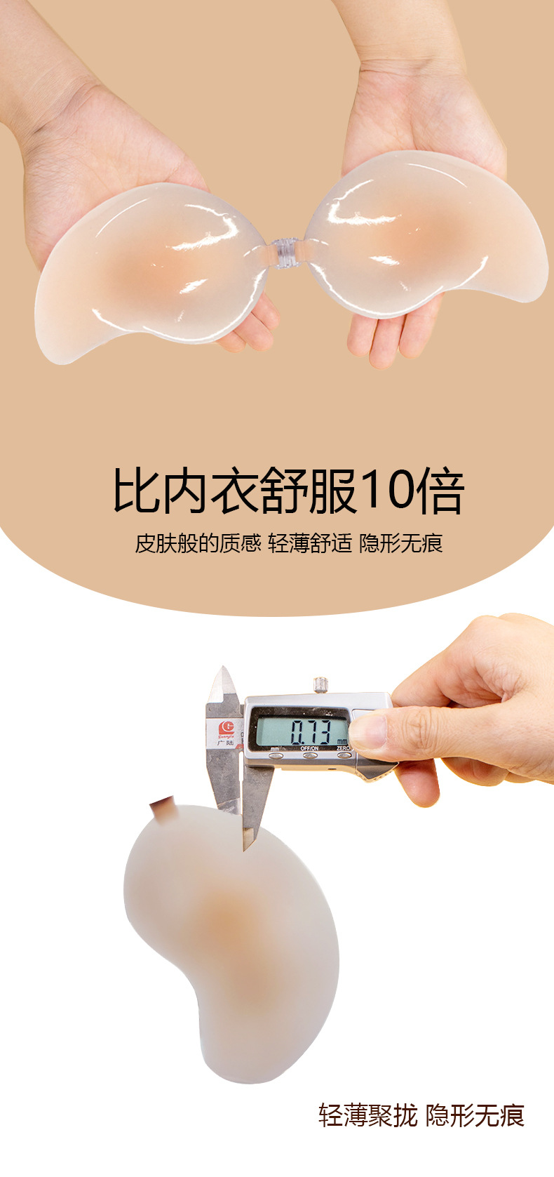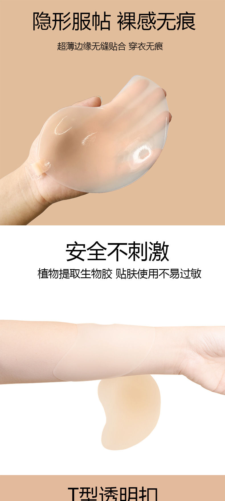 超薄固态芒果硅胶胸贴隐形吊带无痕内衣一片式前搭扣婚纱露背专用