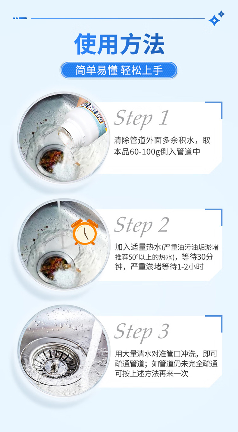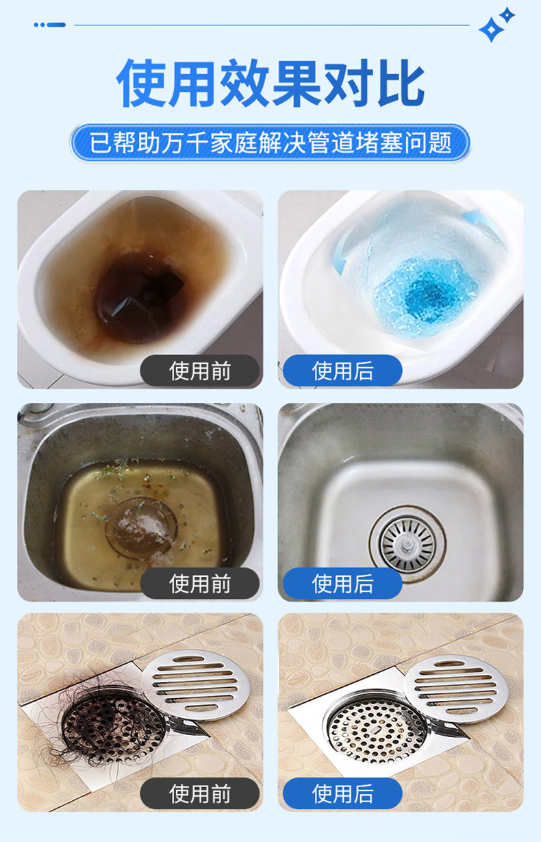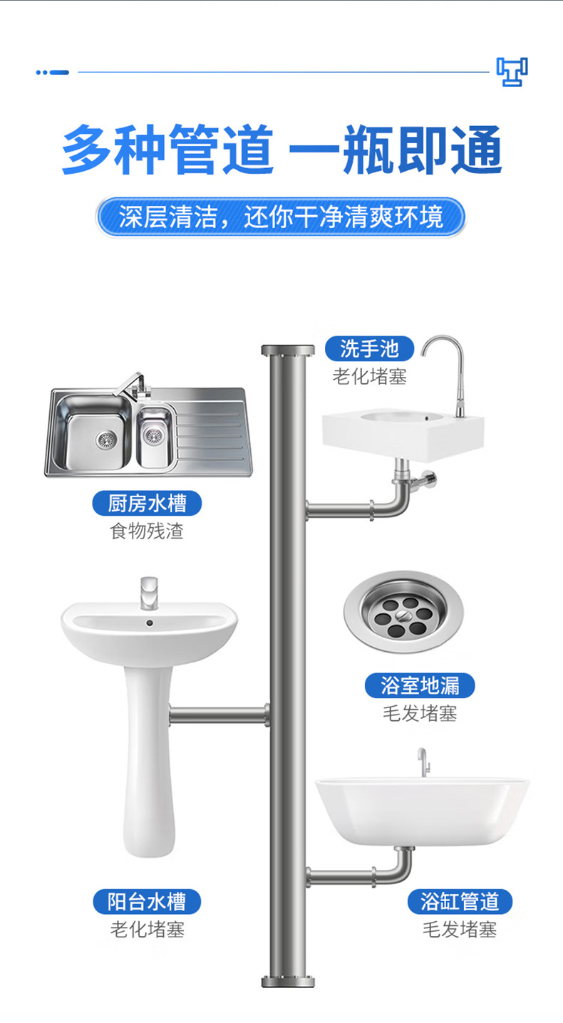 管道疏通剂强力溶解下水道马桶厕所地漏除臭厨房油污堵塞分解神器
