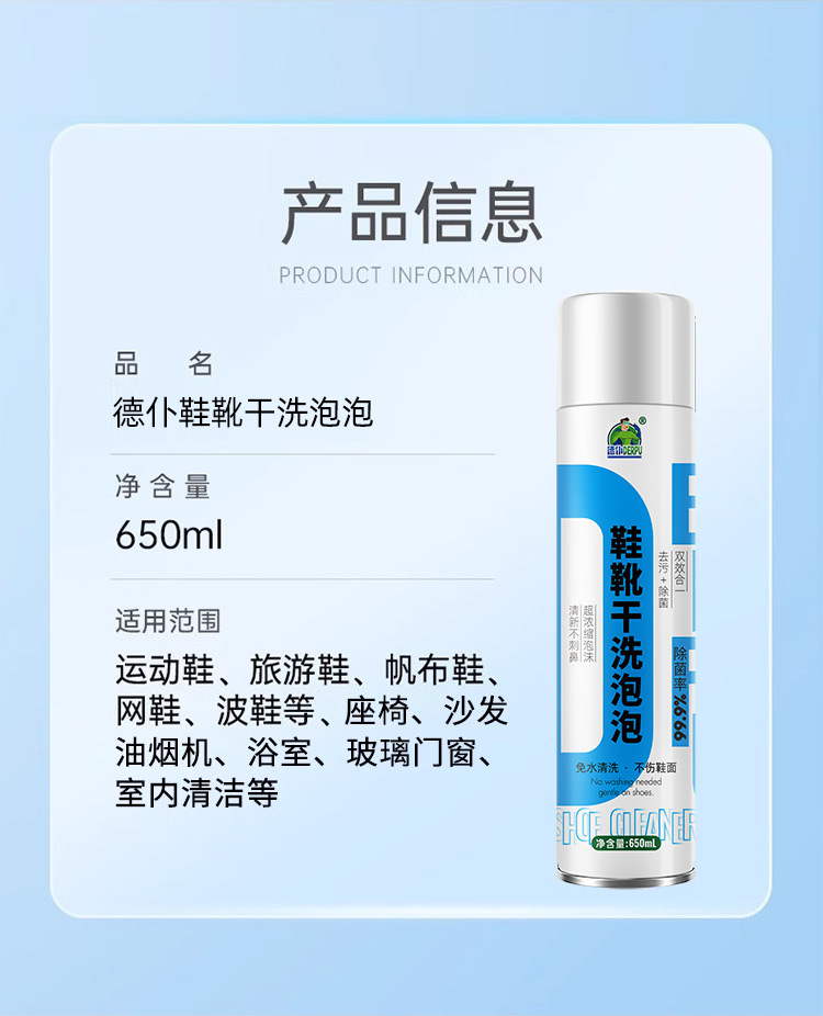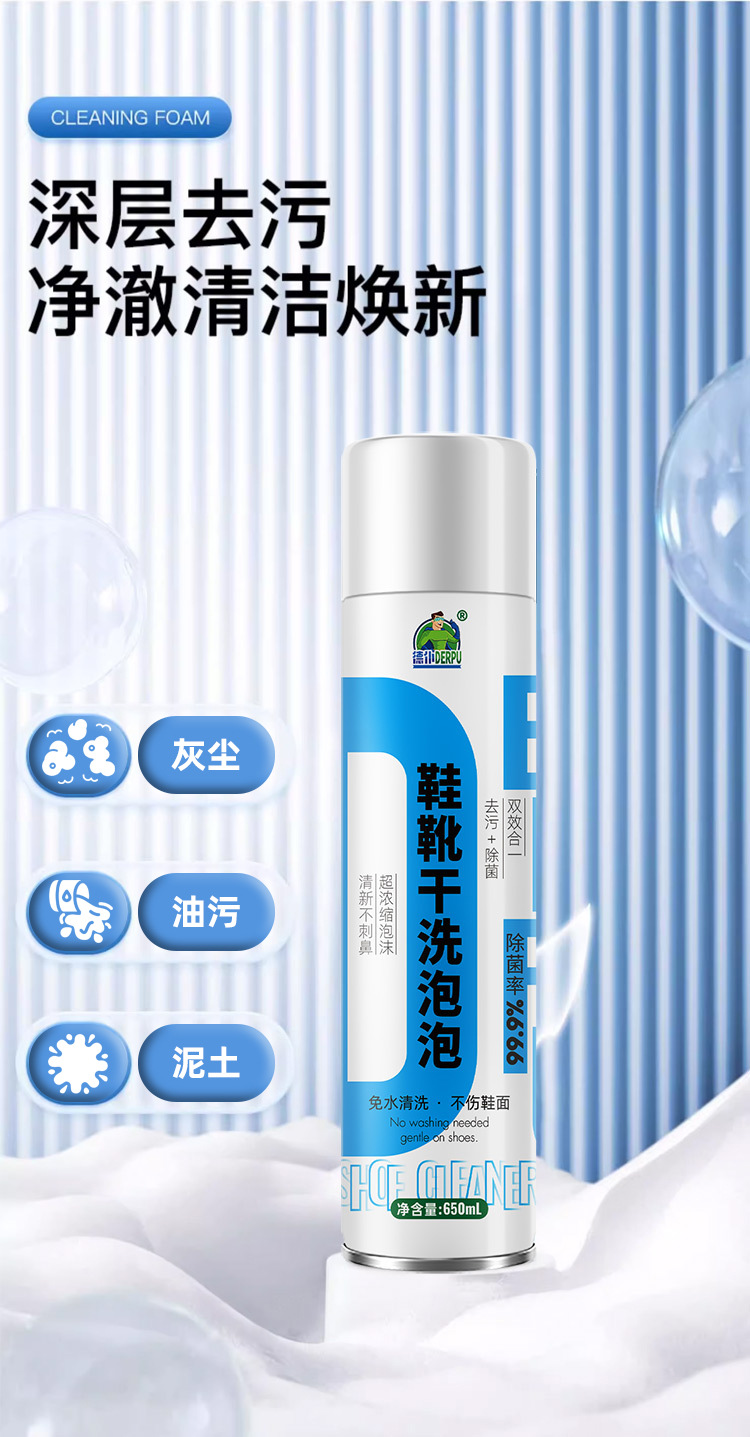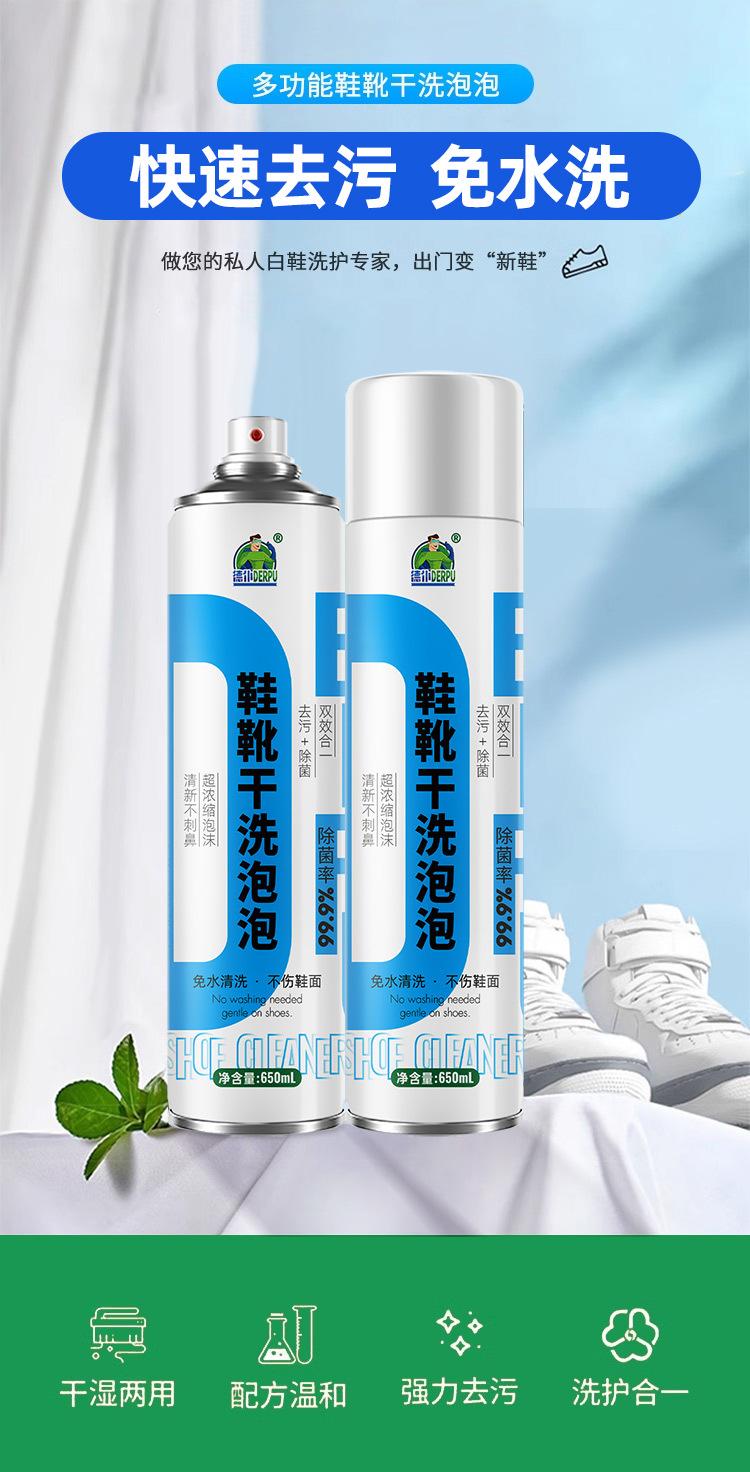 贴牌定制鞋靴干洗泡泡小白鞋干洗剂多功能泡沫清洁剂刷鞋清洗剂