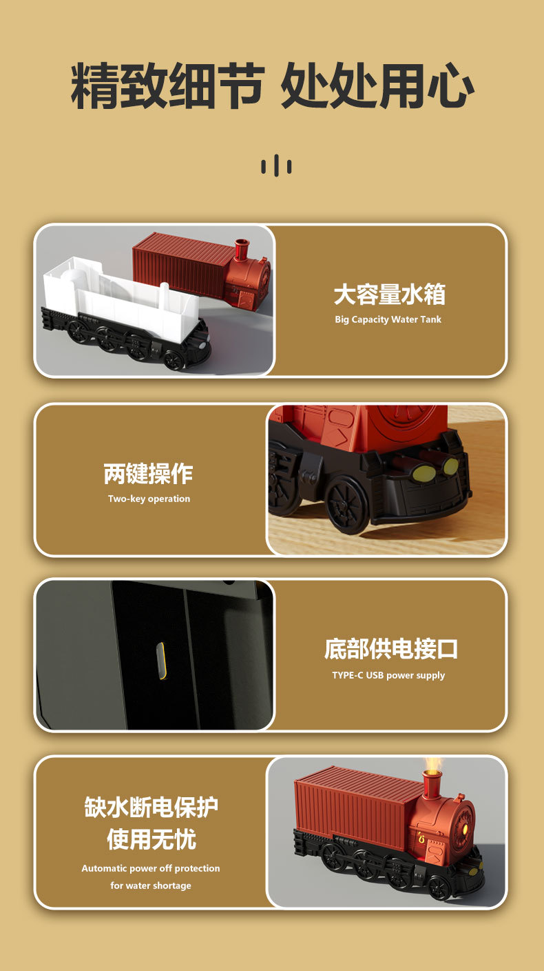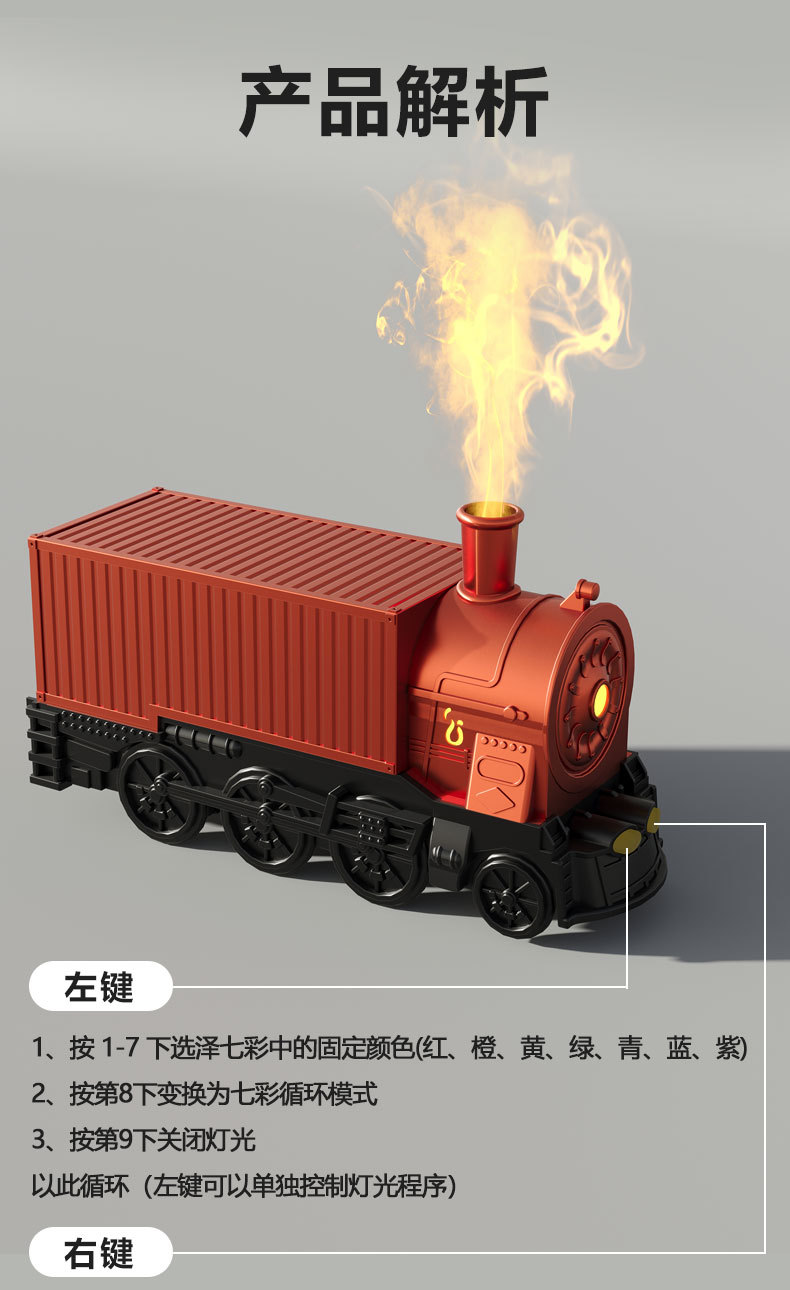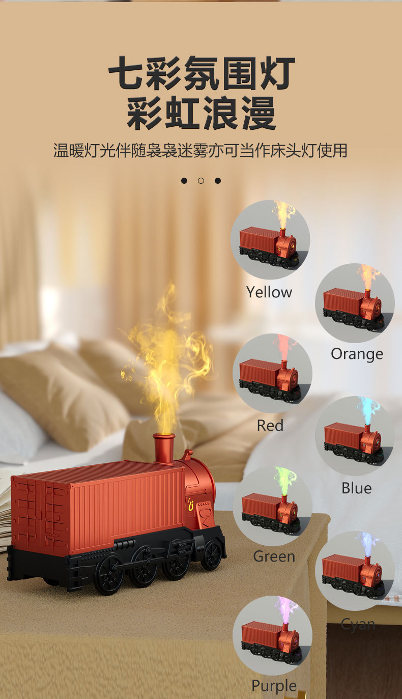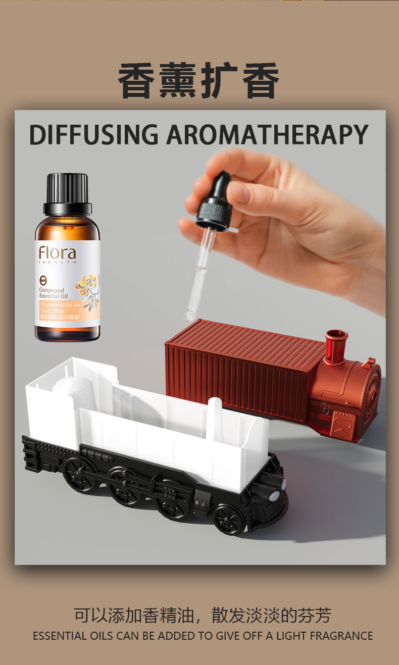 2025跨境新款小火车香薰机集装箱精油七彩香薰灯超声波雾化加湿器