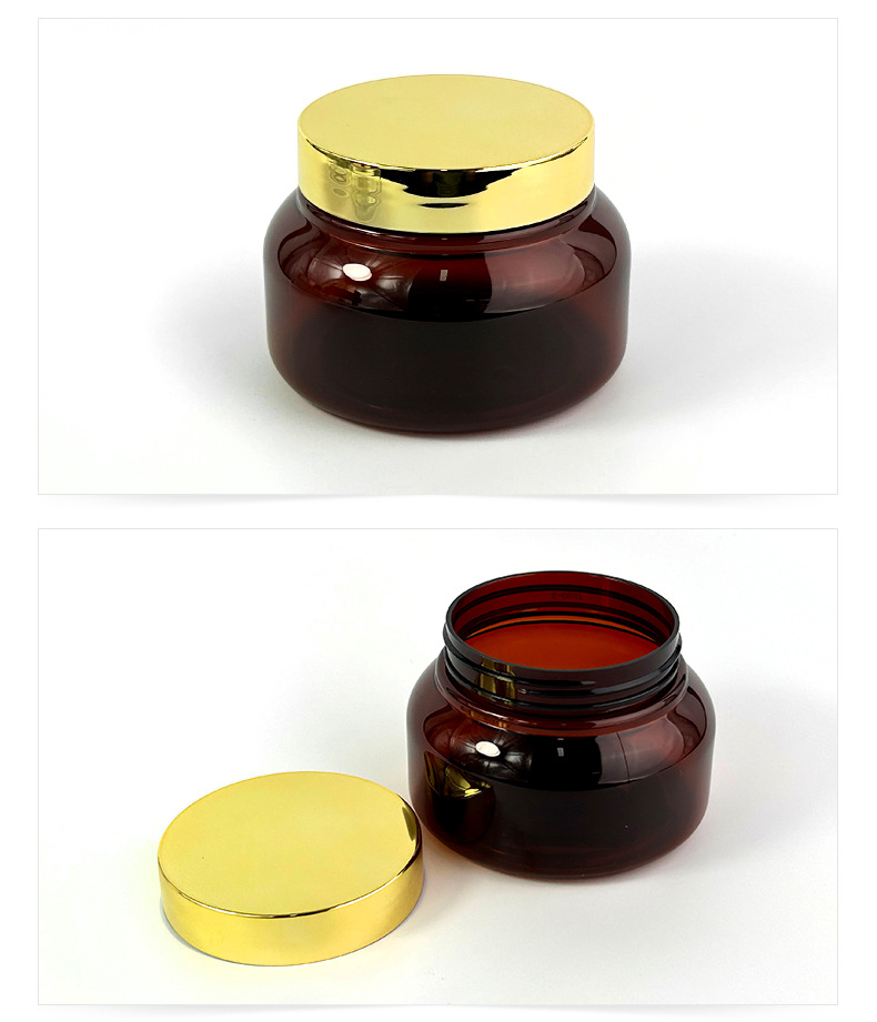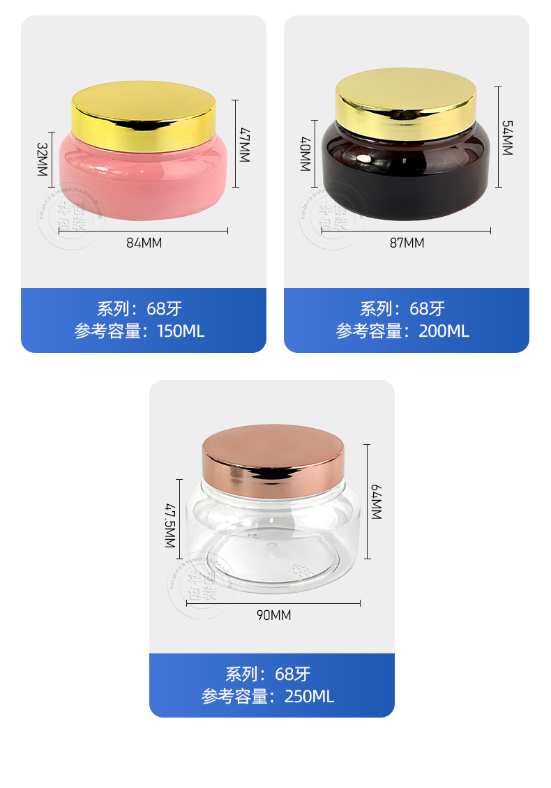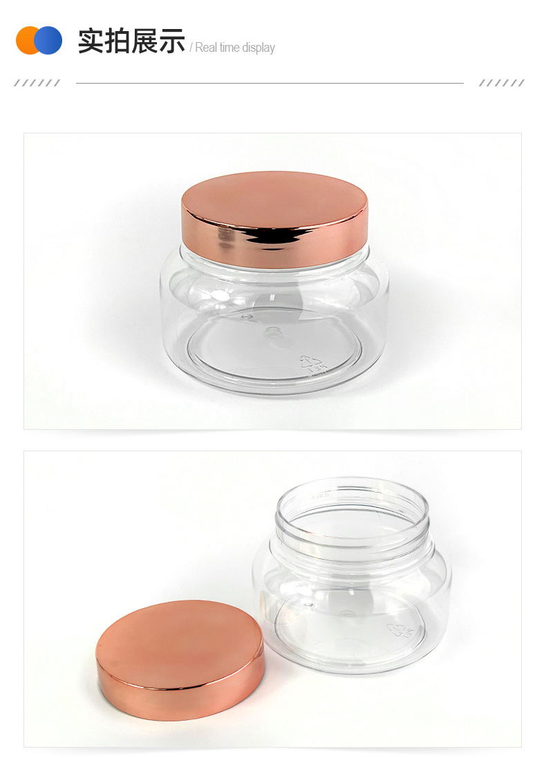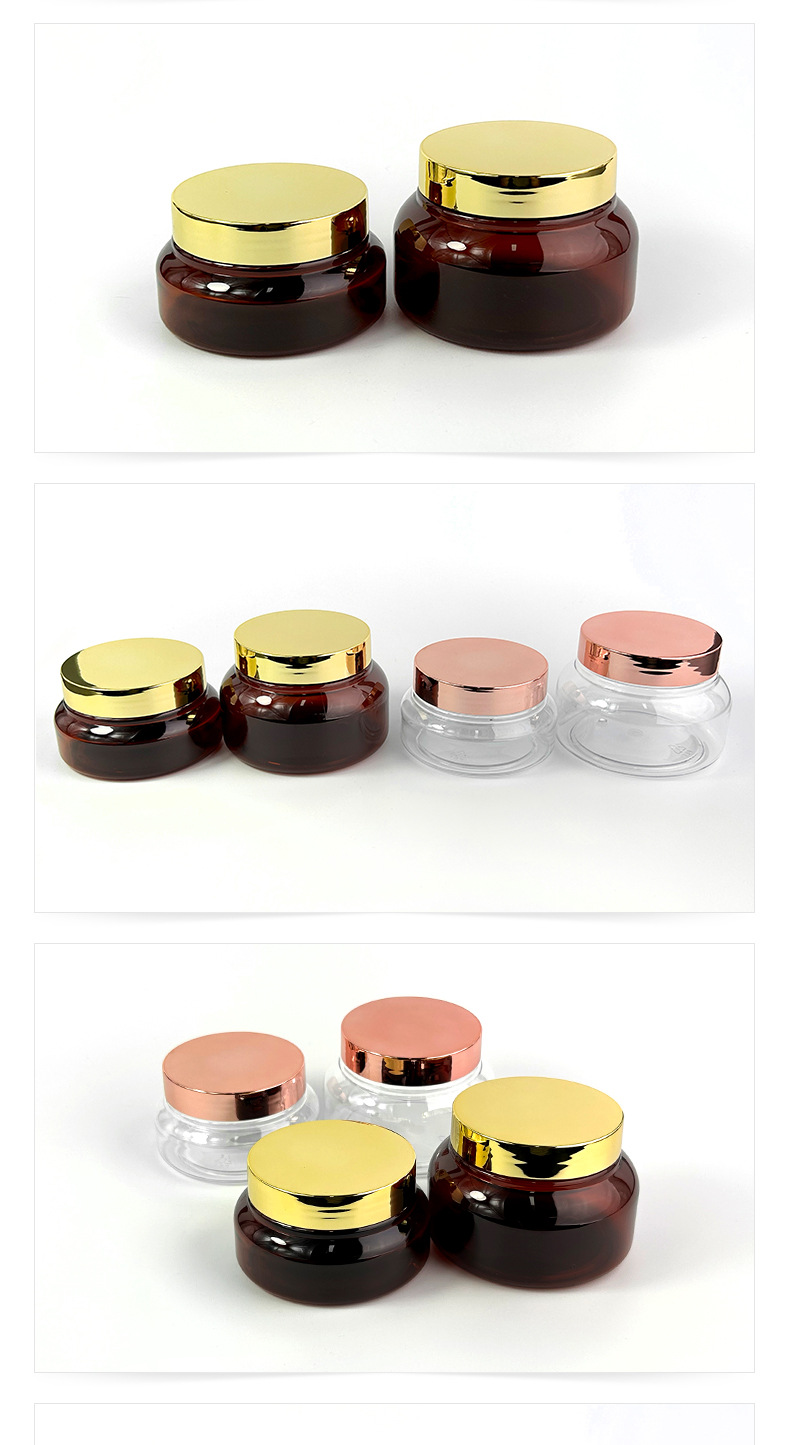 现货68牙250ml PET粉色广口瓶茶色瓶大肚瓶玫瑰金色金色电镀盖
