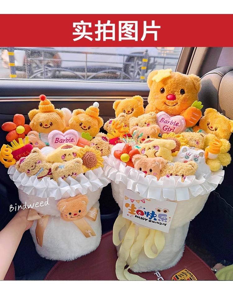 520情人节黄油小熊玩偶花束送女友闺蜜毛绒公仔卡通创意生日礼物