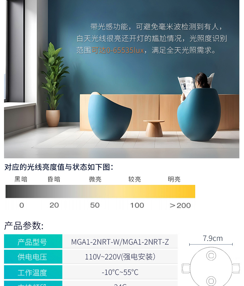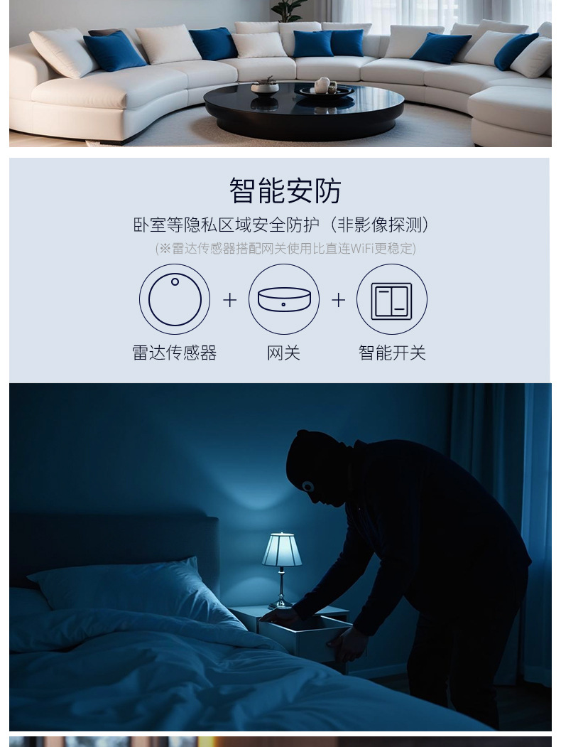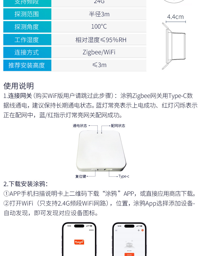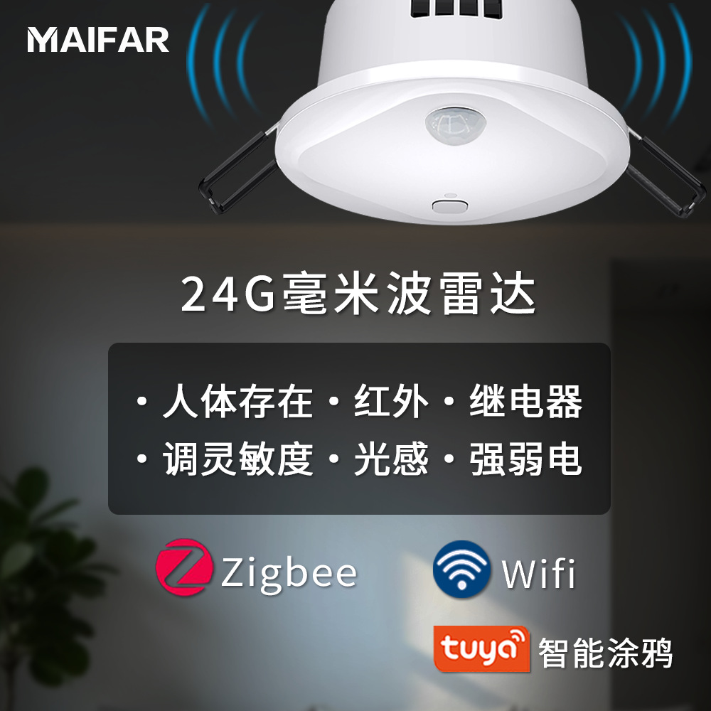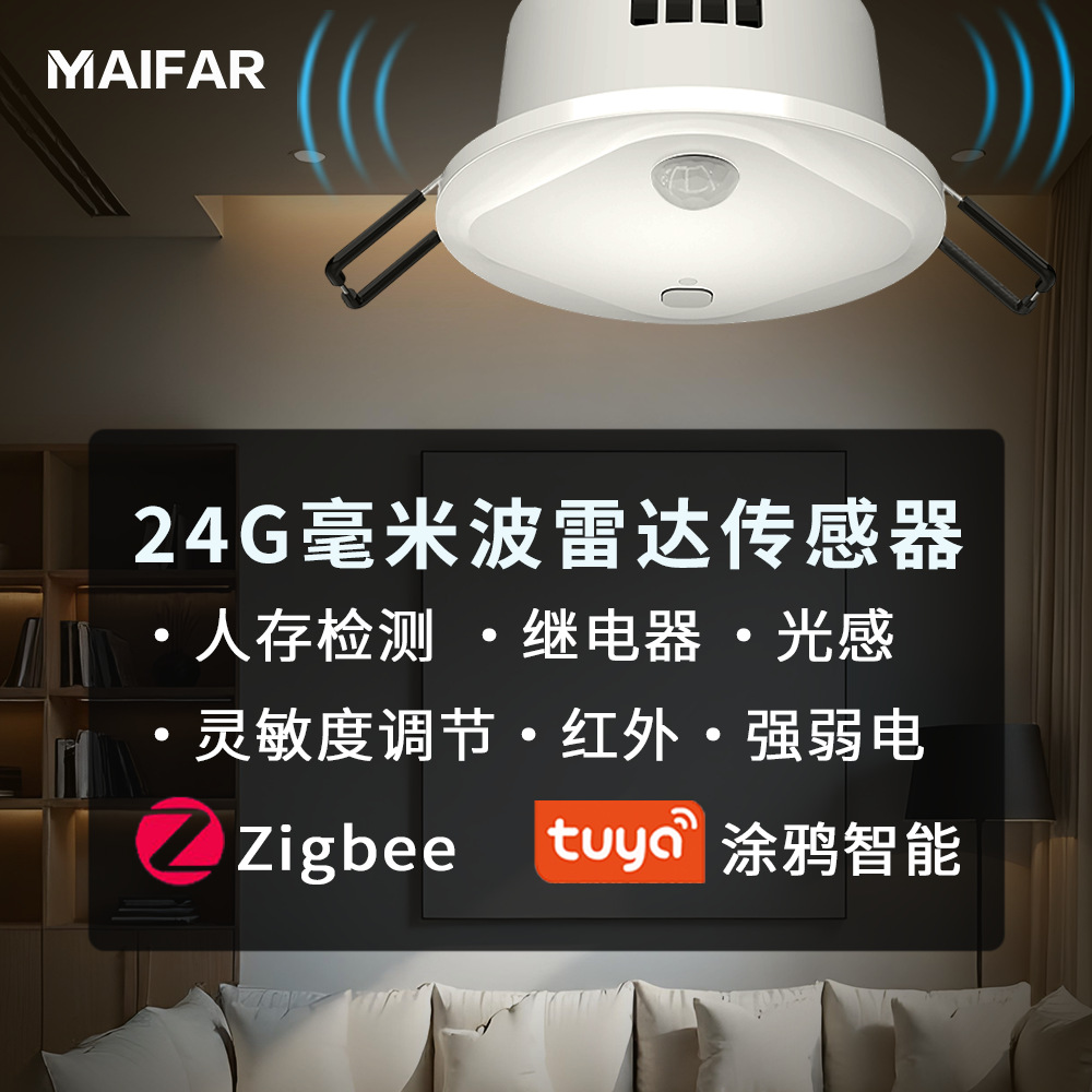 涂鸦人体传感器吸顶毫米波雷达微波存在感应器智能家居人在传感器