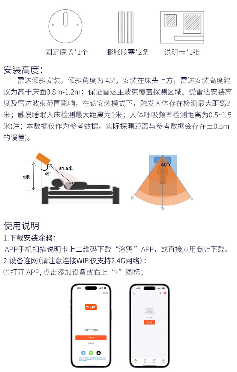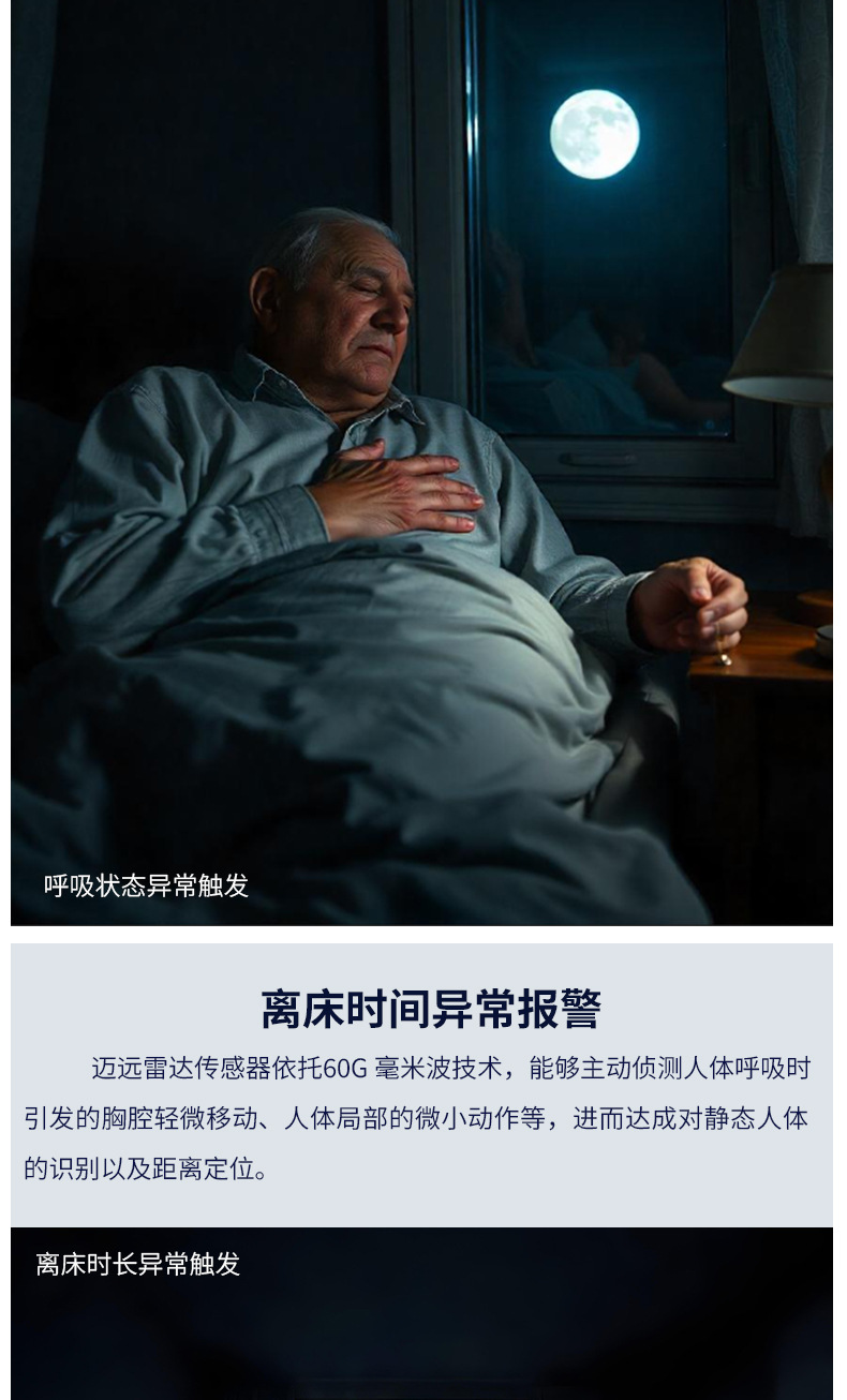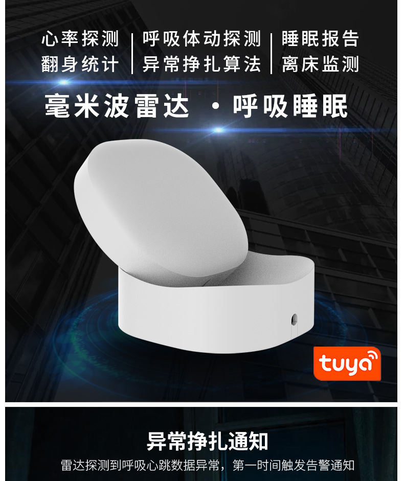 涂鸦呼吸睡眠传感器毫米波雷达生命体征睡眠心率监测器人在传感器