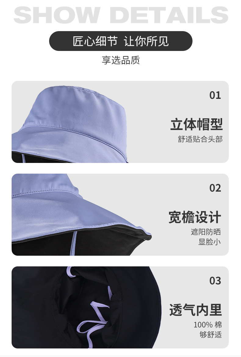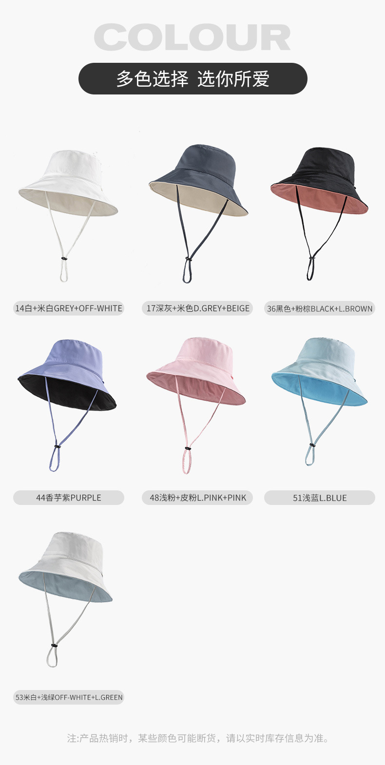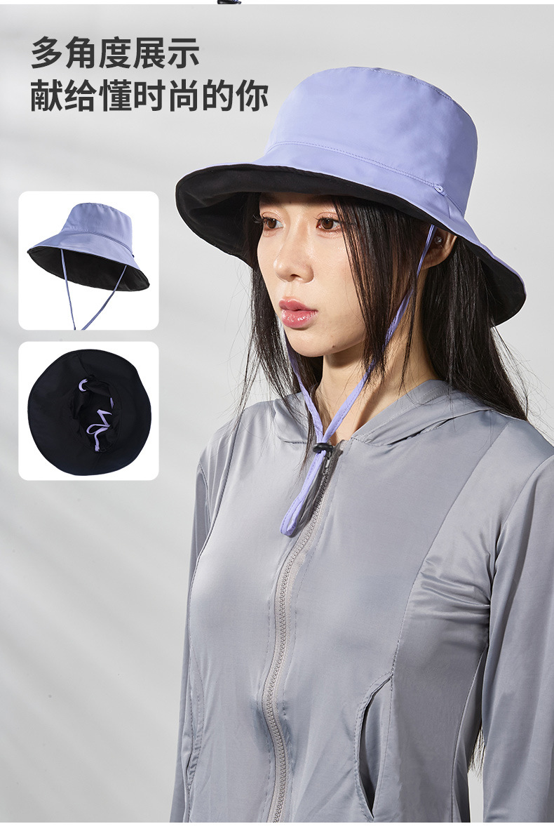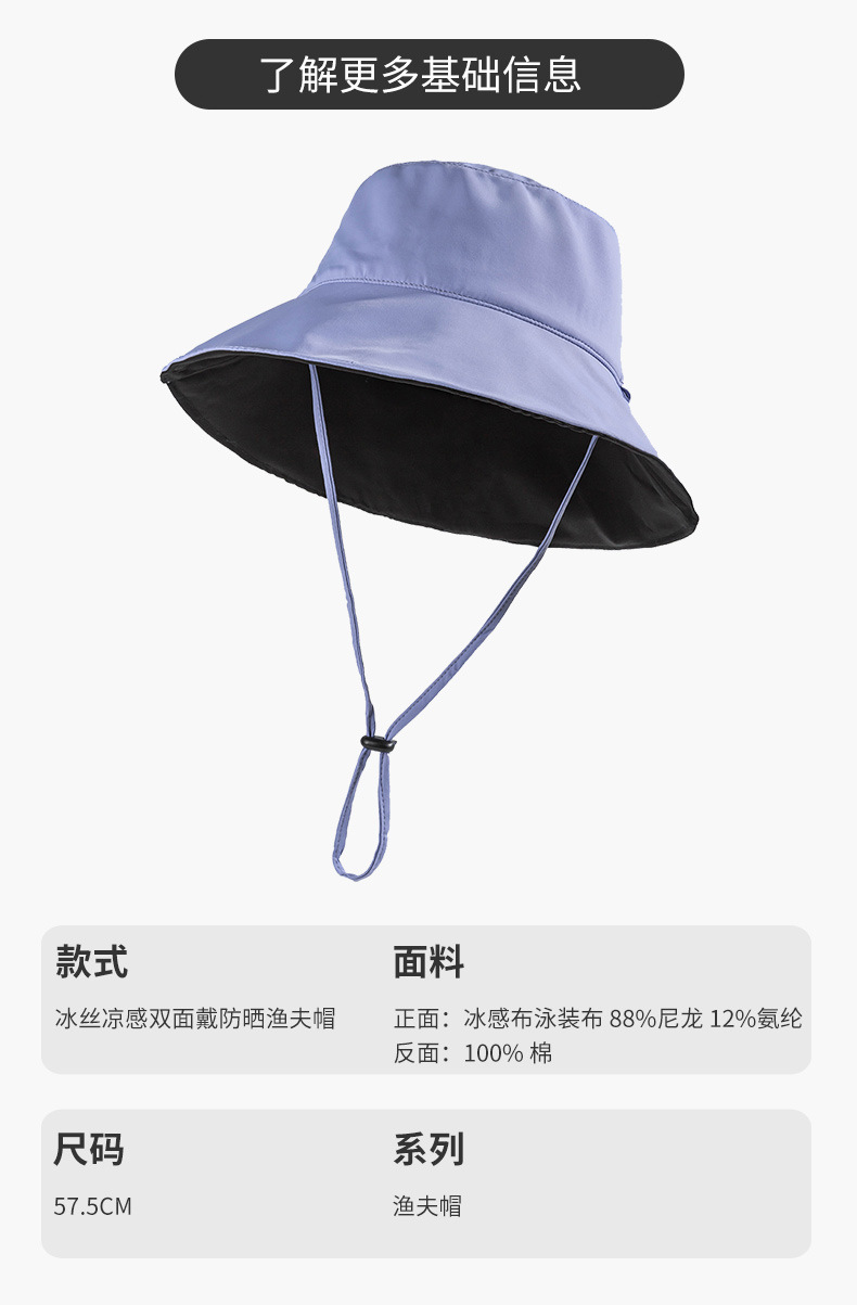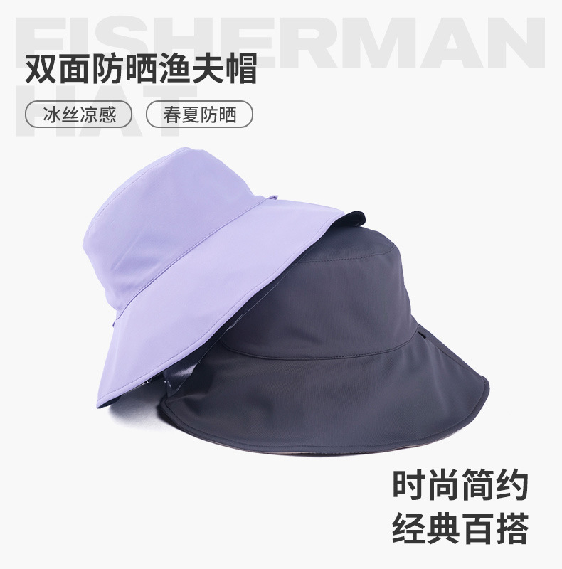 新款春夏冰丝凉感防晒渔夫帽户外运动双面戴UPF50+防晒太阳帽盆帽