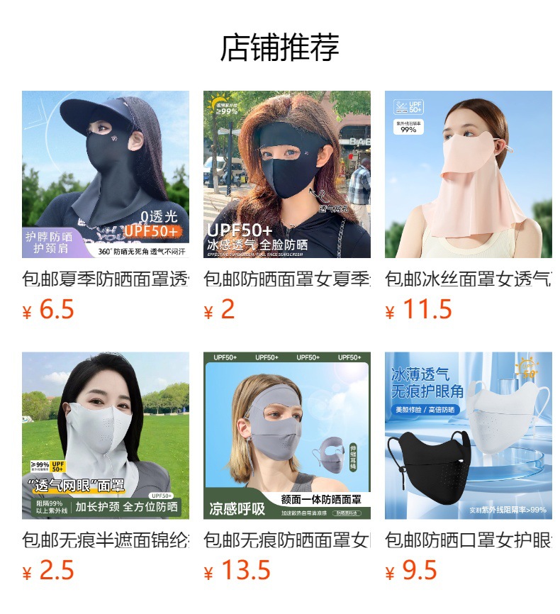 防晒口罩全脸女骑行冰丝护眼角高防晒脸基尼夏季防紫外线防晒面罩