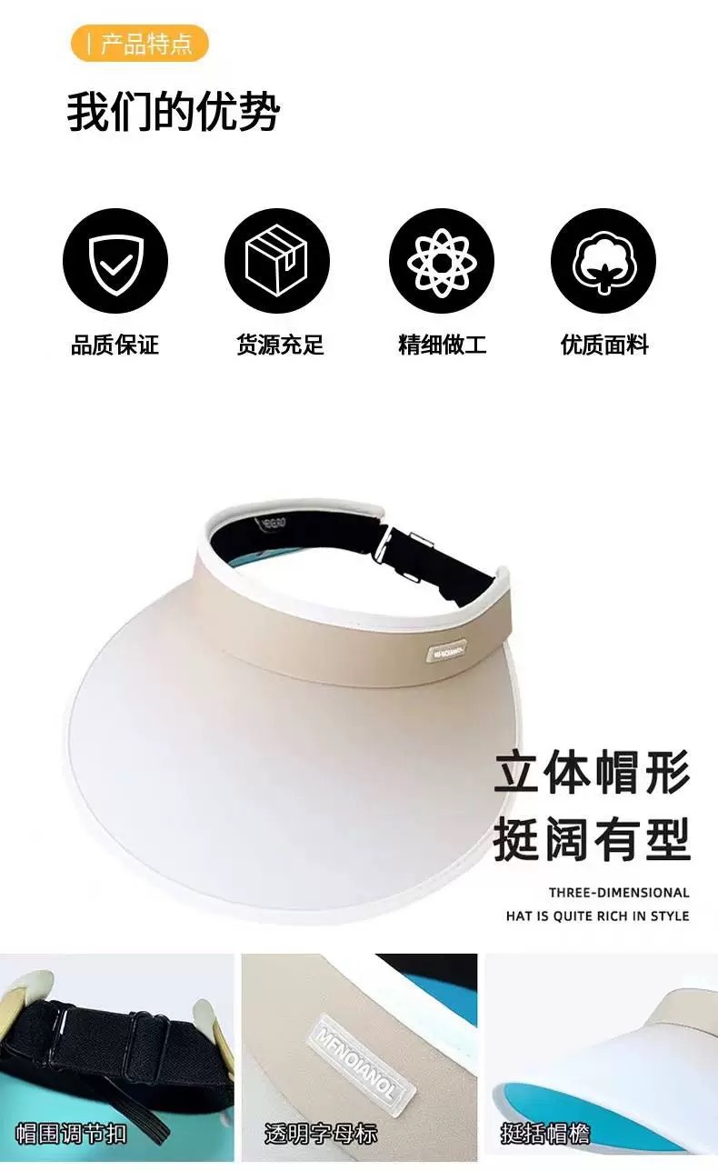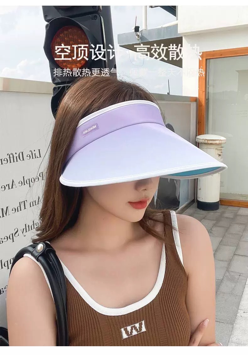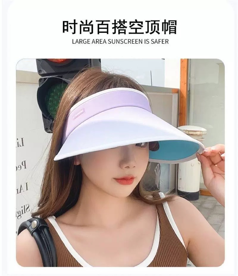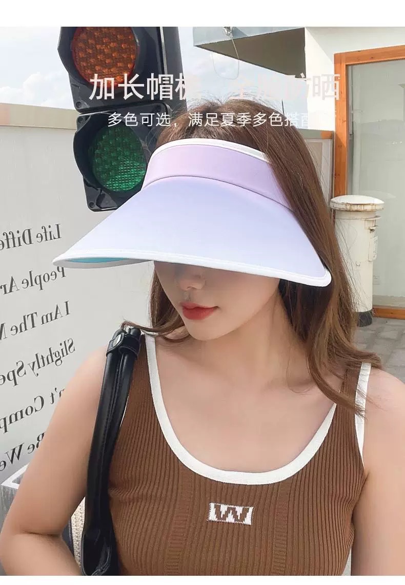 可折叠调节渐变空顶防晒帽子女夏季防紫外线遮阳显脸小沙滩太阳帽