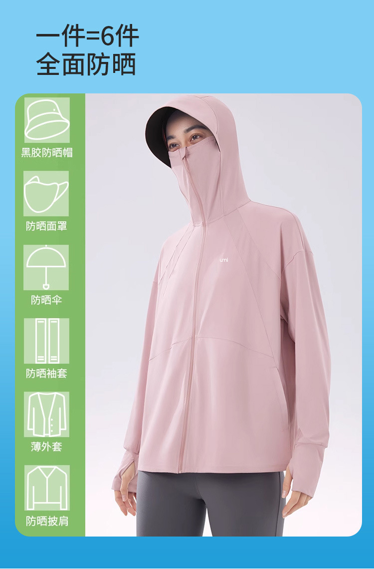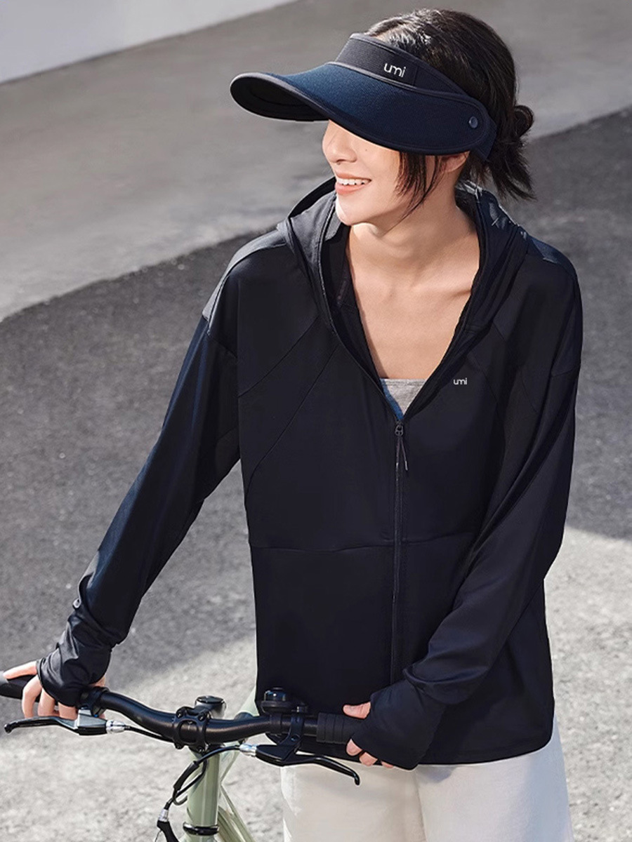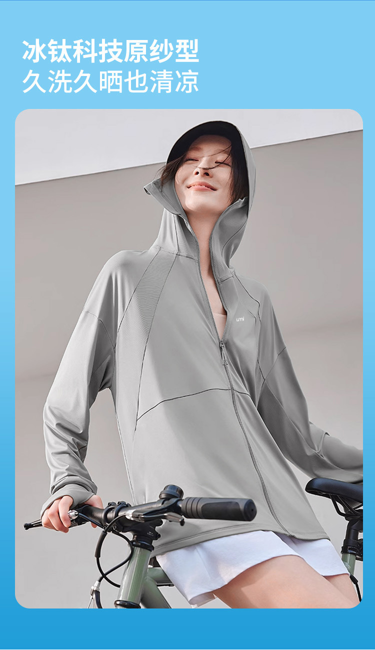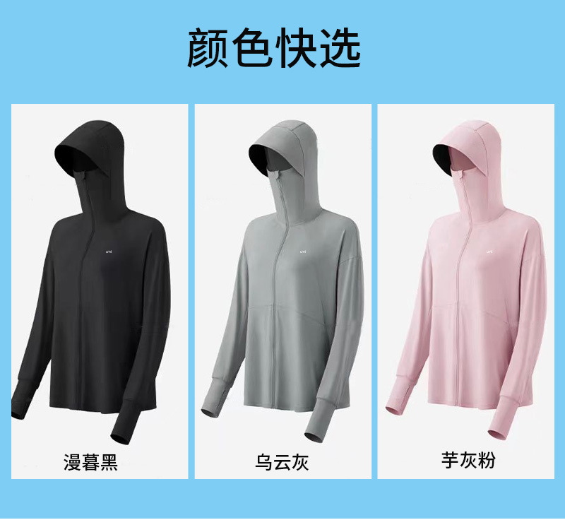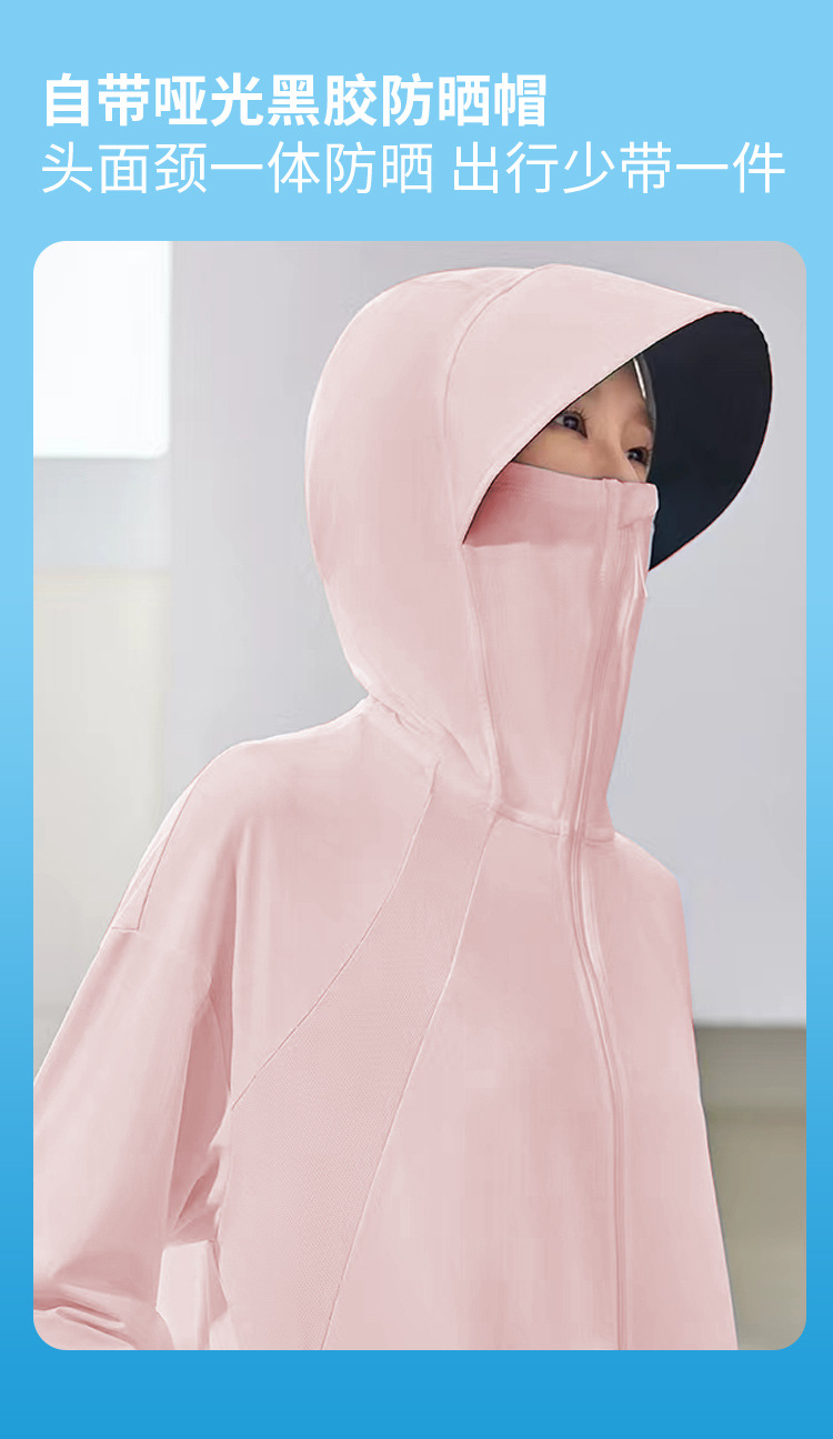 冰丝防晒衣女薄款连帽黑胶帽檐宽松防紫外线冰感防晒服女夏季户外