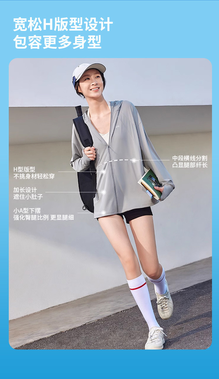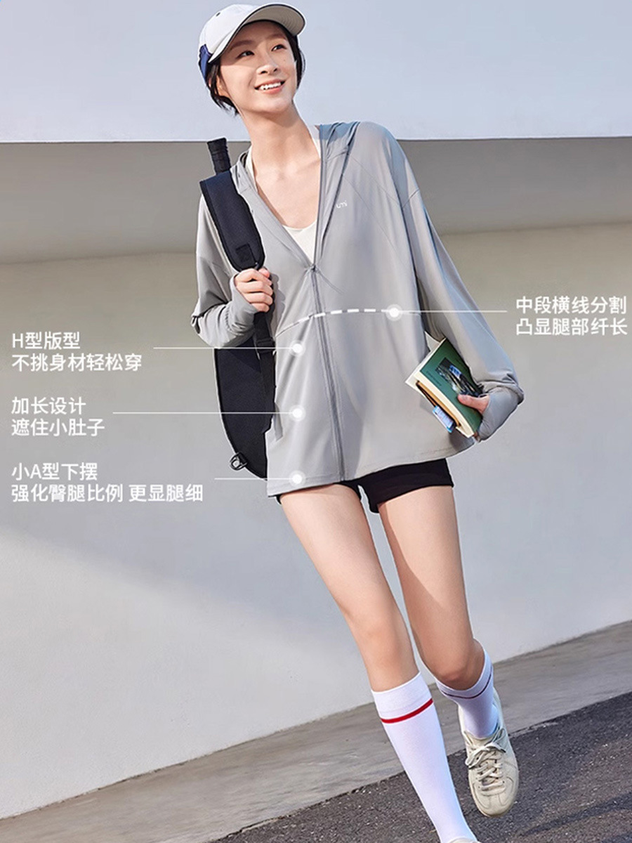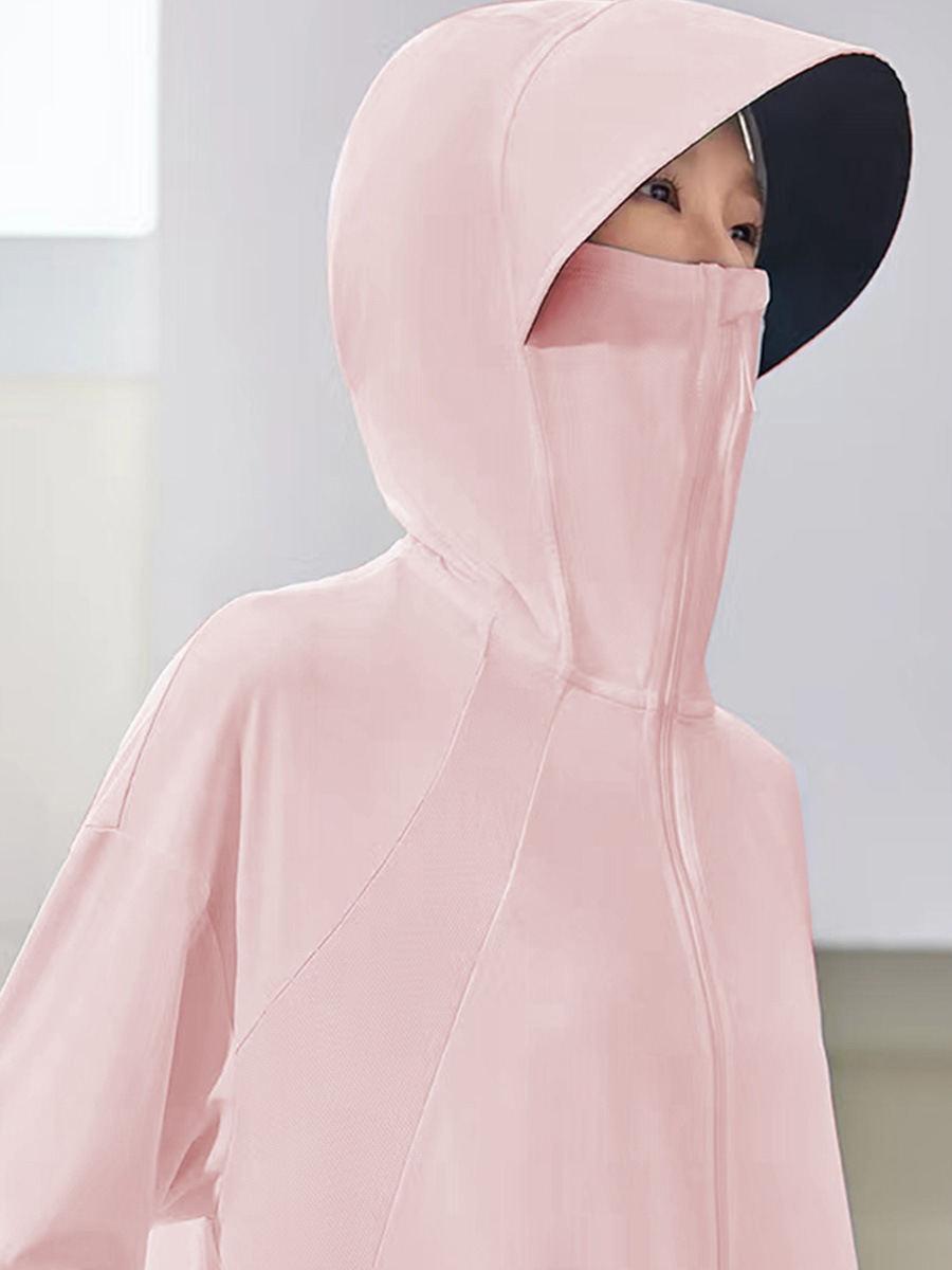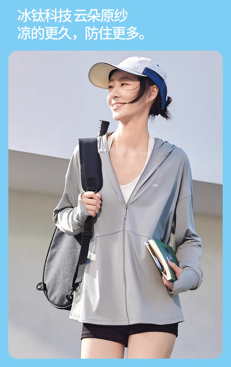 冰丝防晒衣女薄款连帽黑胶帽檐宽松防紫外线冰感防晒服女夏季户外