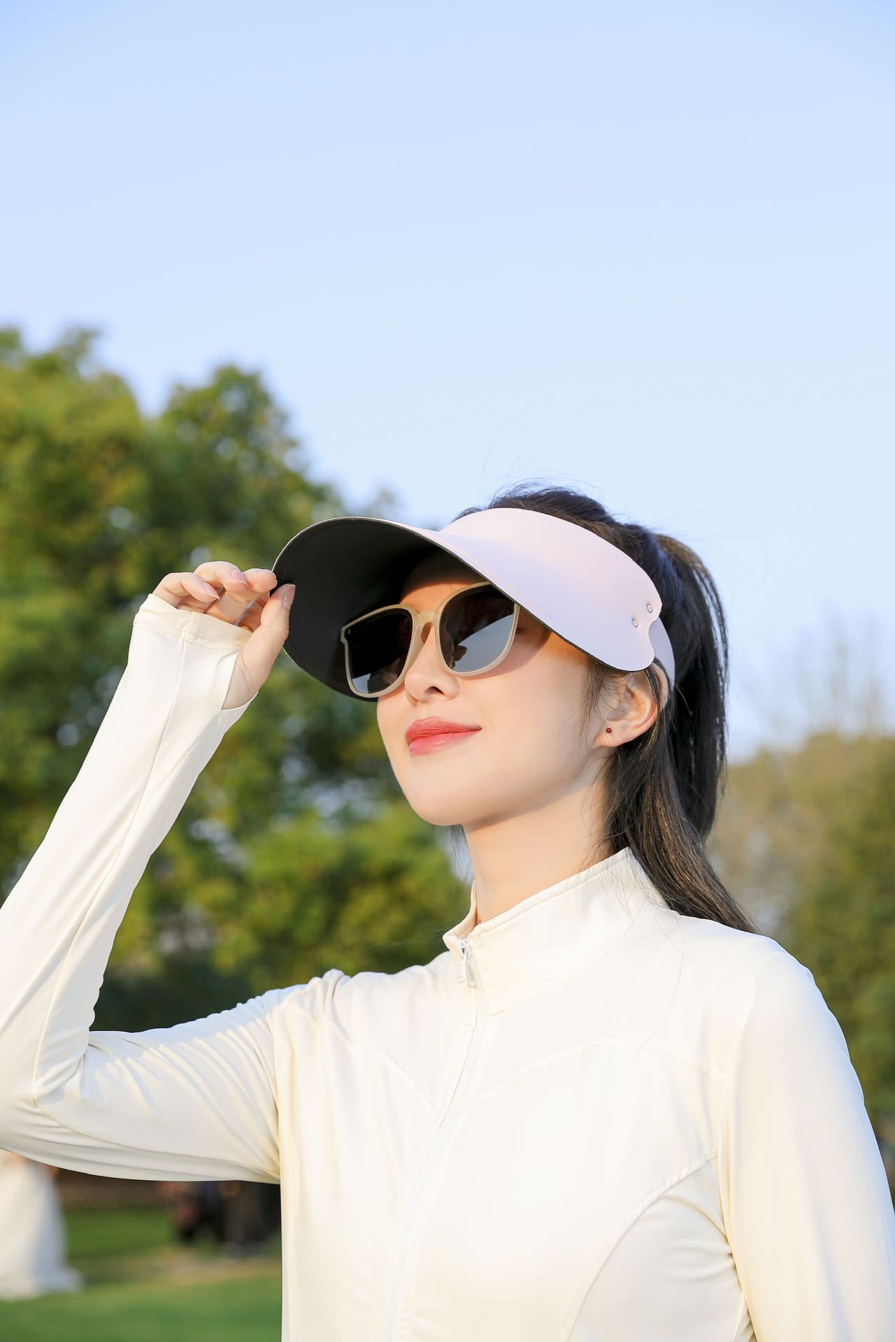 无痕空顶防晒帽女夏季防紫外线遮阳帽一体可折叠运动太阳帽子批发