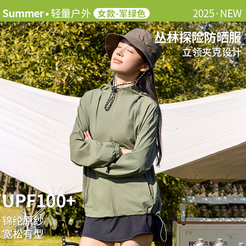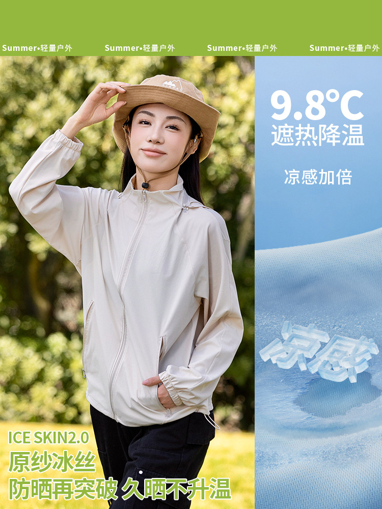 UPF100+连帽防晒服冰丝防晒上衣轻薄透气女夏季户外防紫外线外套