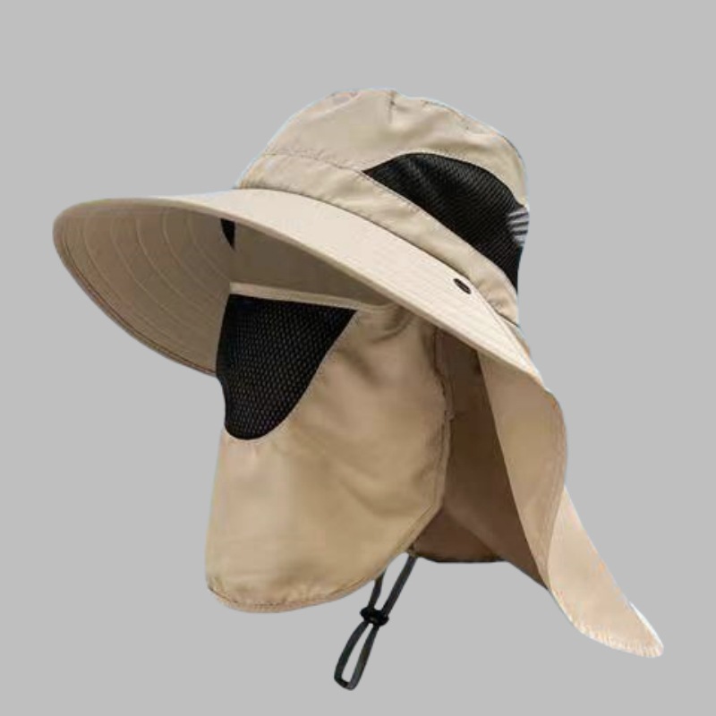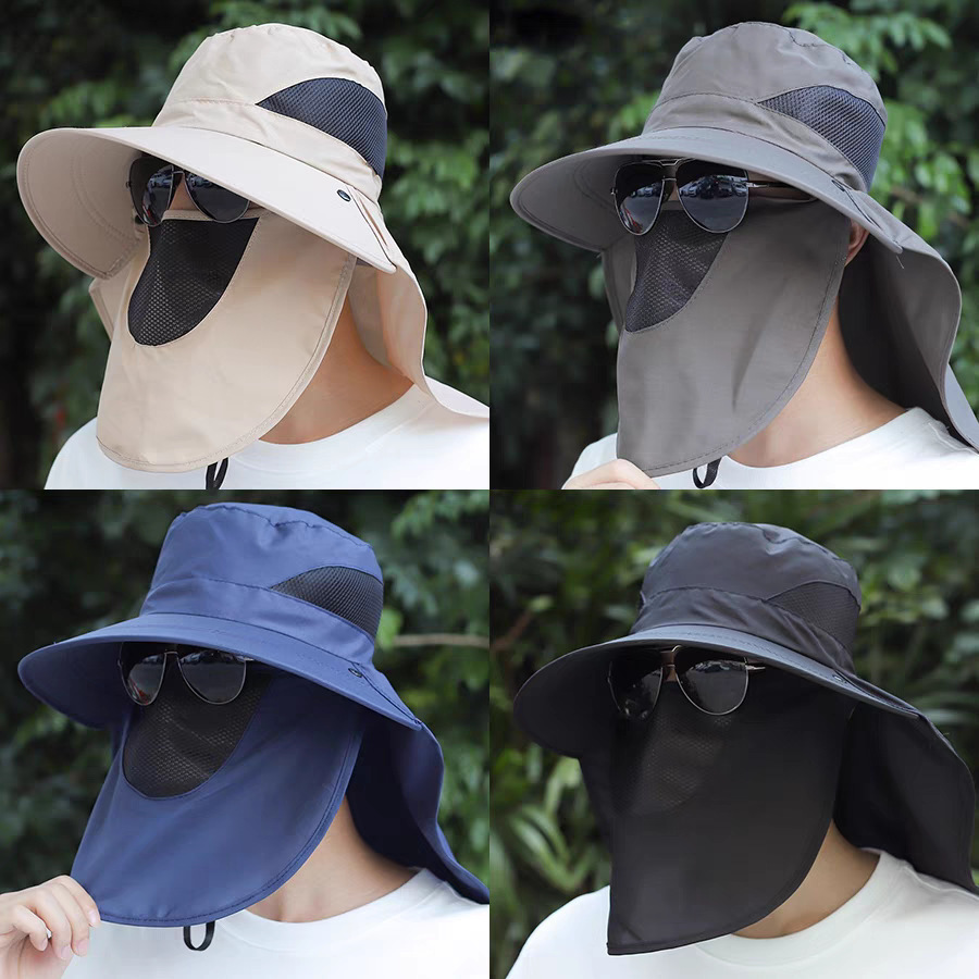 男夏季大檐防紫外线太阳钓鱼帽登山户外防晒帽遮脸防水速干披肩帽