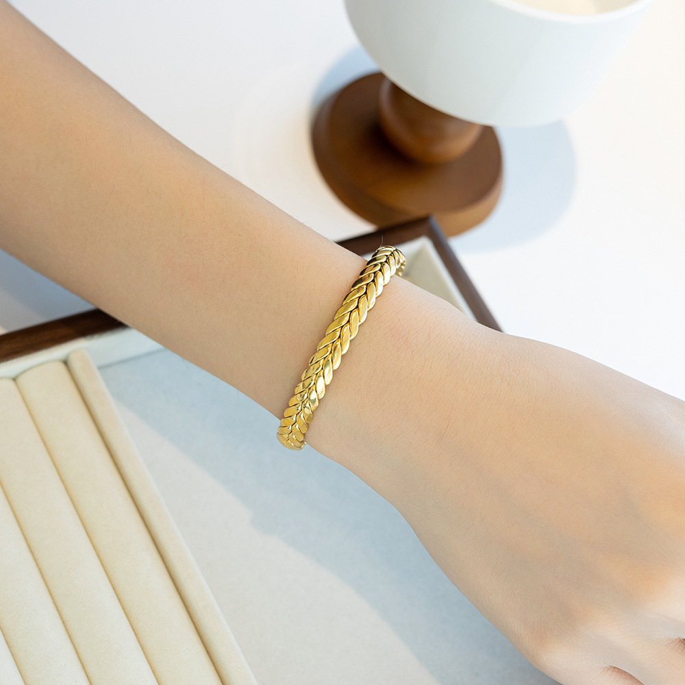 不掉色通体钛钢 手镯欧美INS风轻奢极简约跨境贝母不锈钢手环饰品