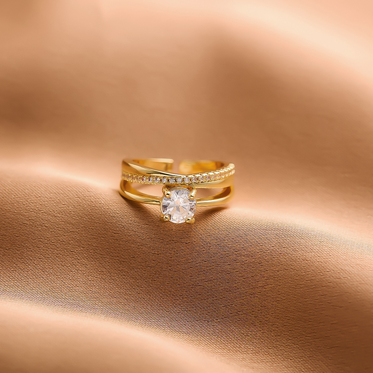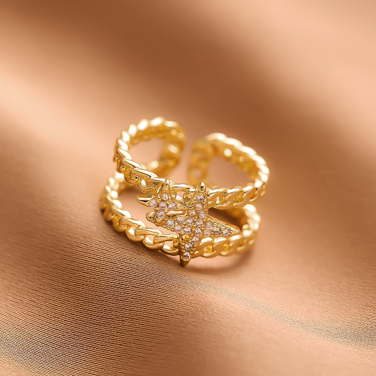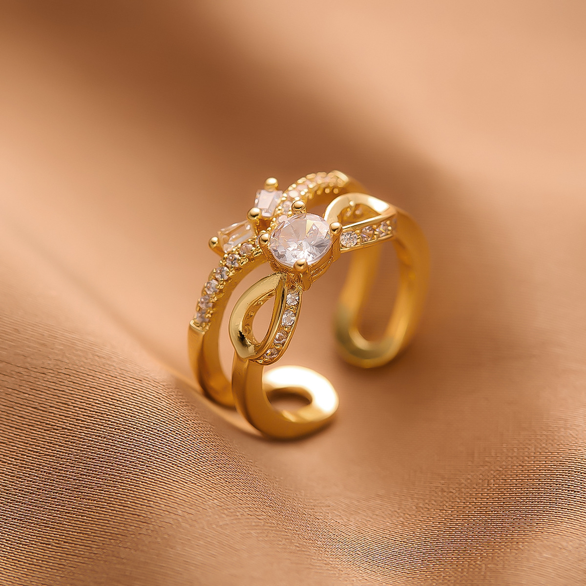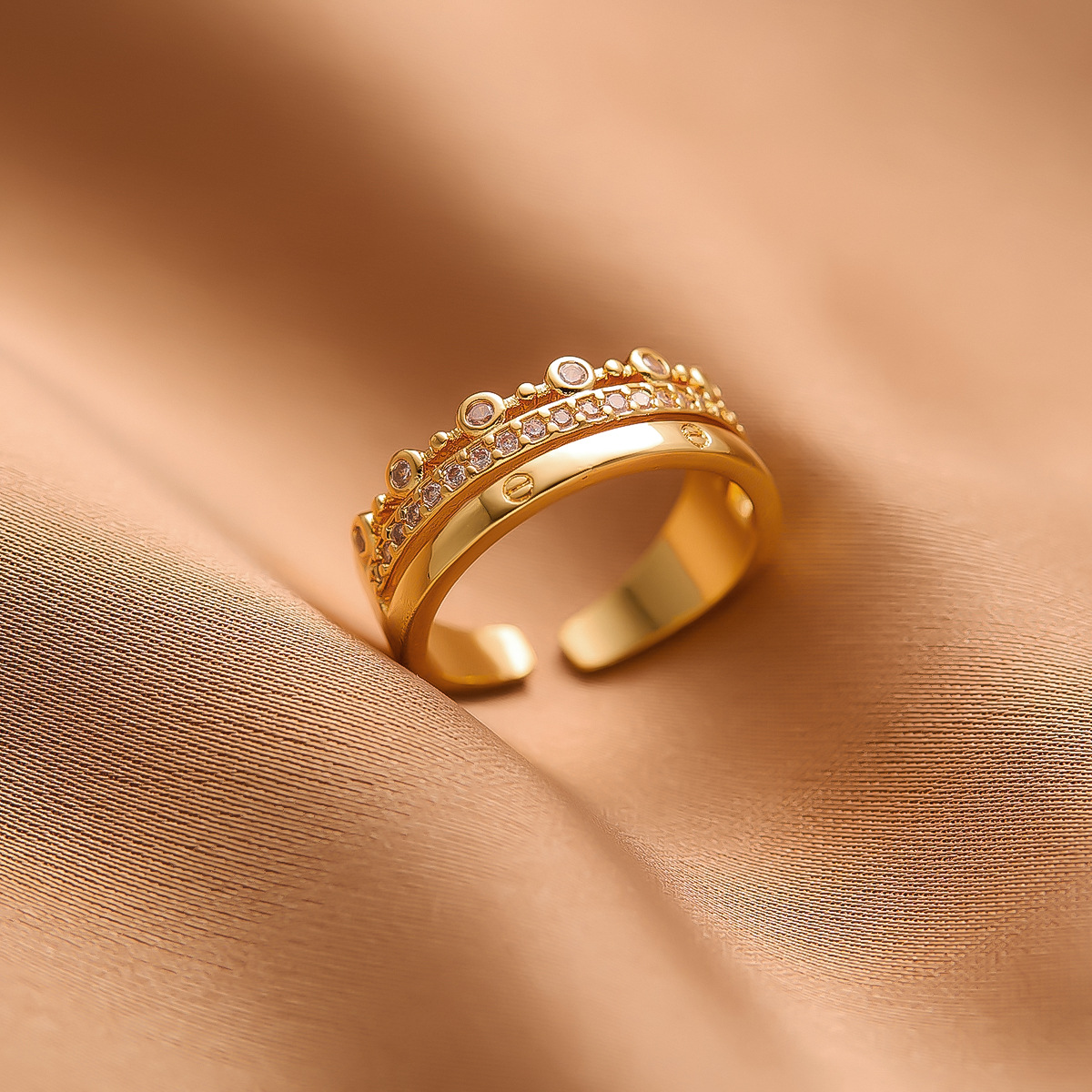 真金电镀铜戒指女小众高级轻奢不掉色开口指环ins批发直播热销厂