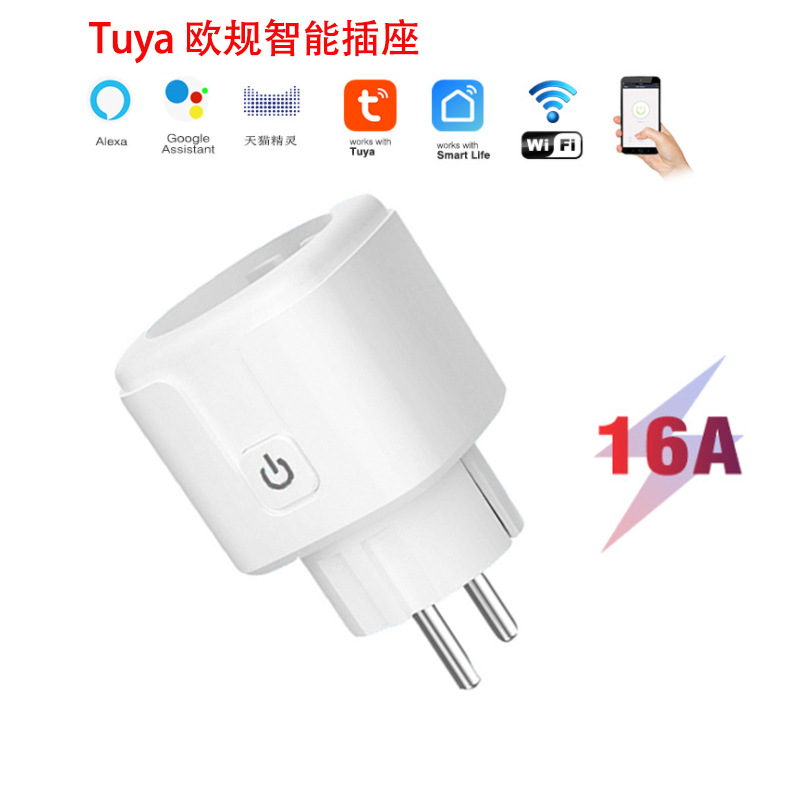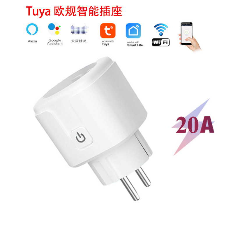 Tuya涂鸦Wifi欧规智能插座带电量计量语音手机远程控制16A 20A