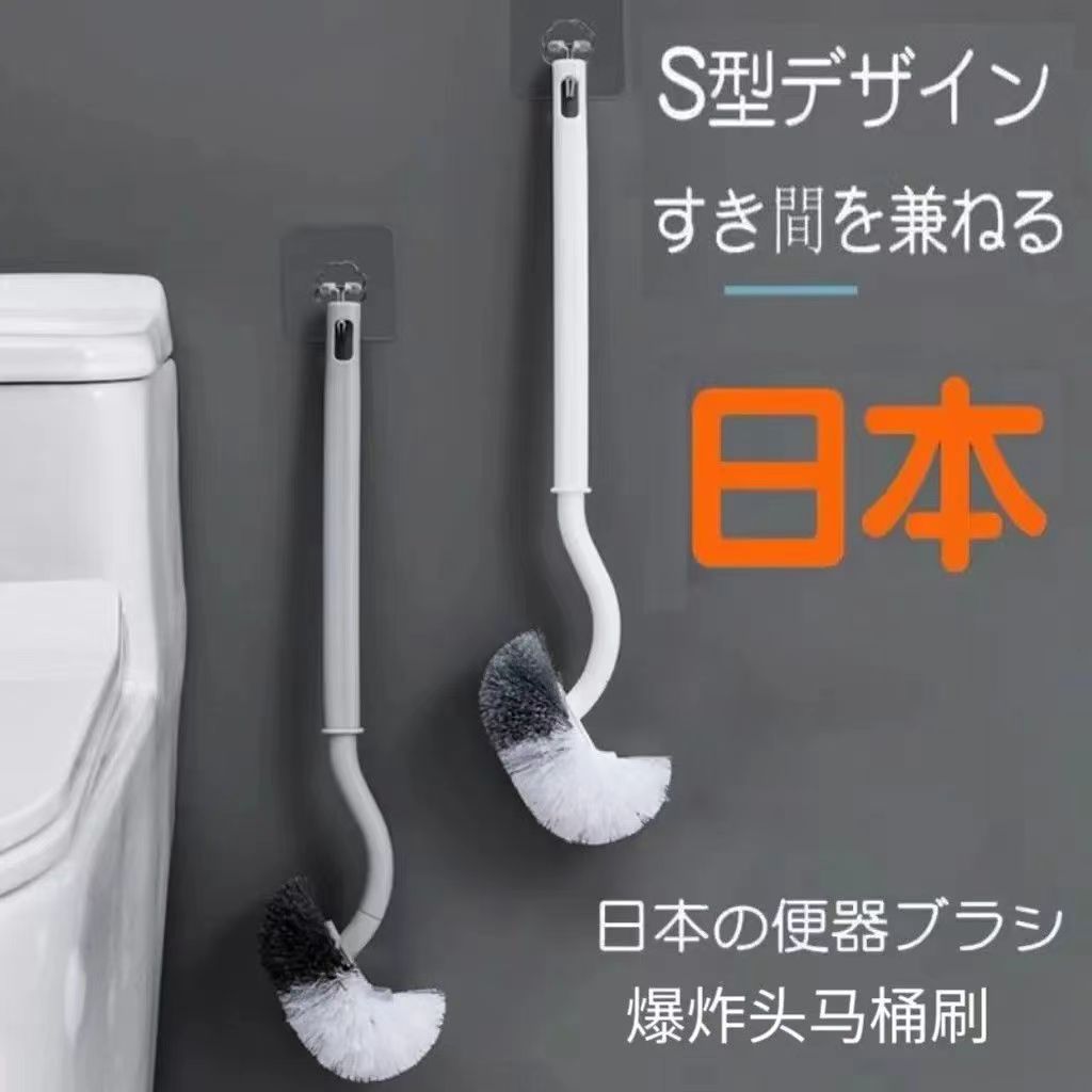 日式长炳清洁无死角马桶刷 家用挂墙式厕所卫生间软毛S形马桶刷