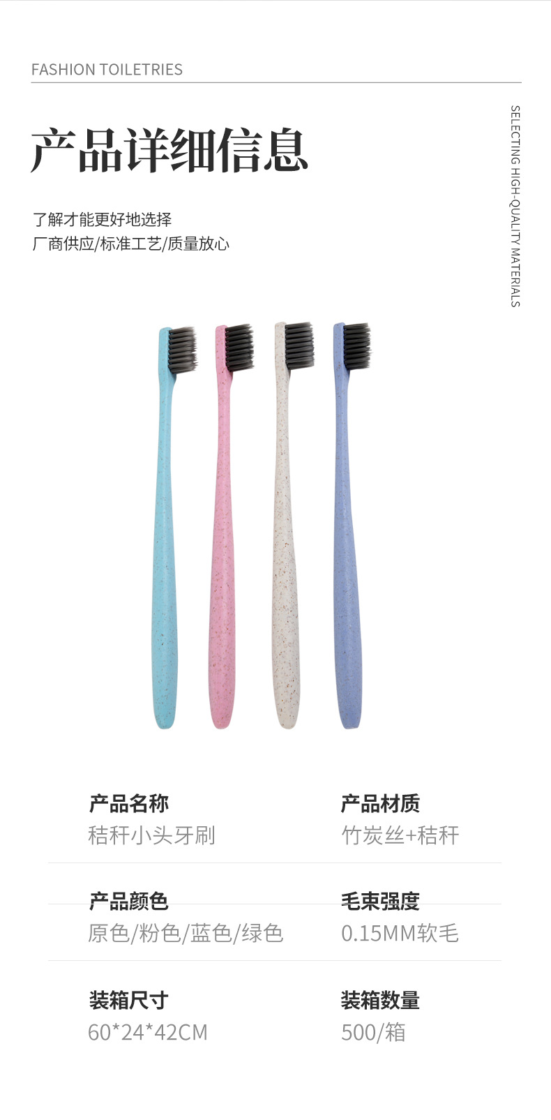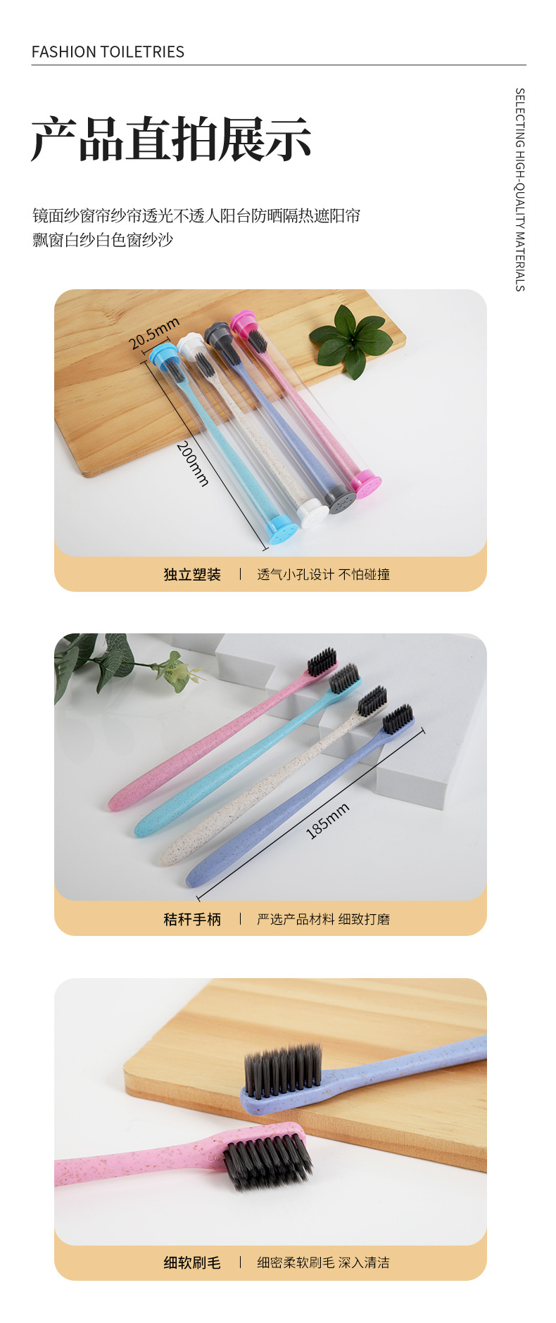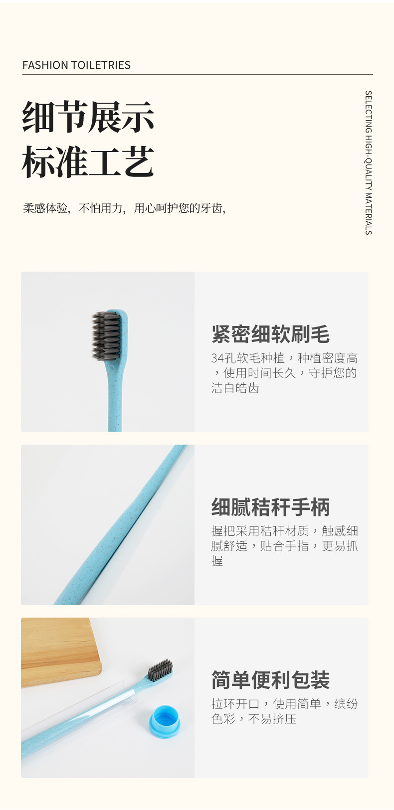 牙科口腔医院牙刷小麦秸秆竹炭成人软毛便携式清洁装酒店民宿牙刷