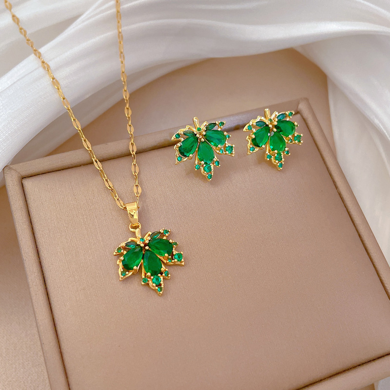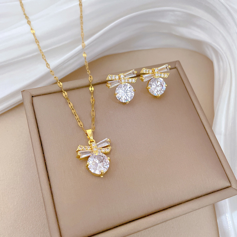 【套装】跨境时尚气质轻奢满锆精致元素风铜微镶耳环项链套装组合