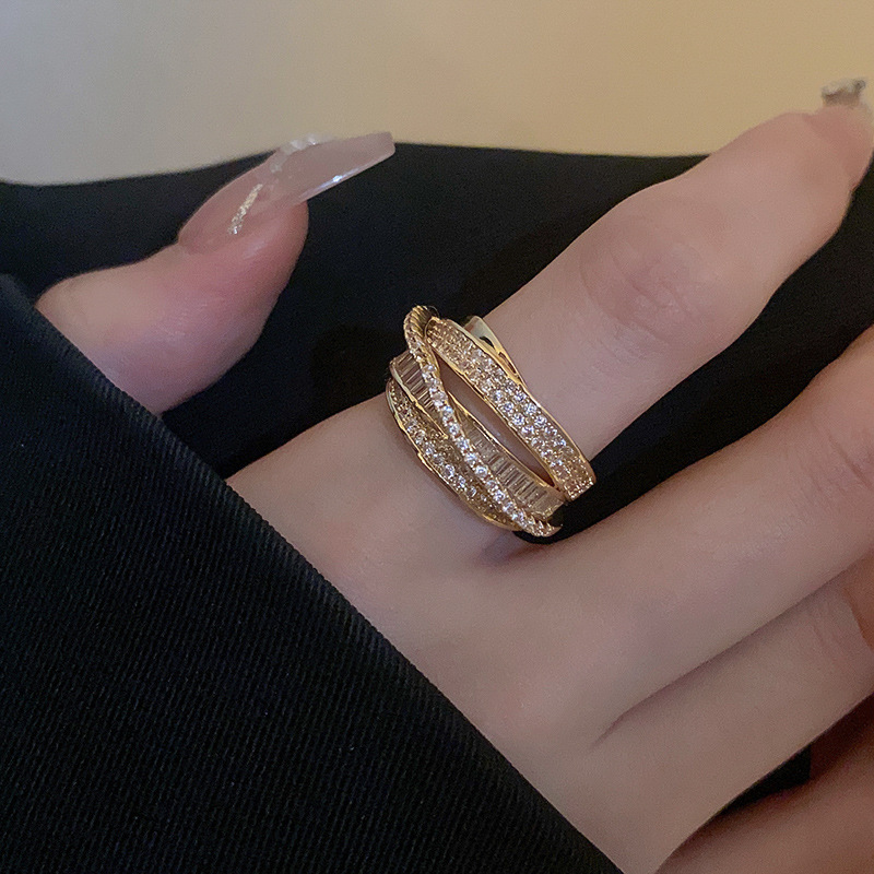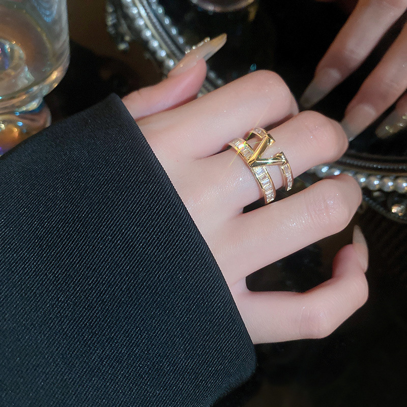 韩国简约锆石几何开口戒指轻奢高级感食指戒网红时尚手饰品批发女