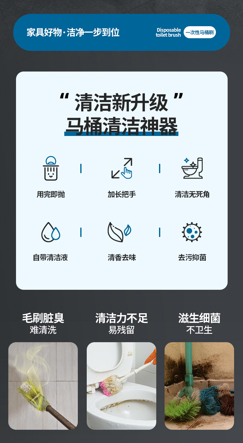 一次性马桶刷可抛式家用无死角洗厕所的刷子上墙式替换头免打孔