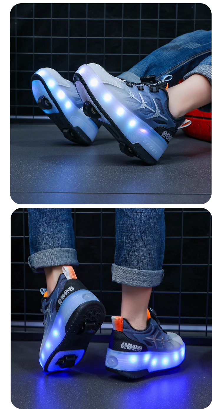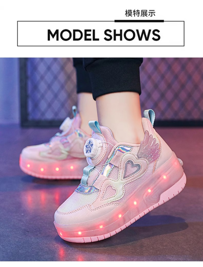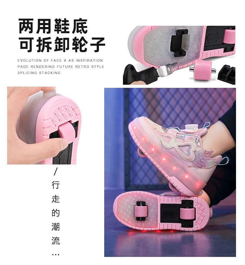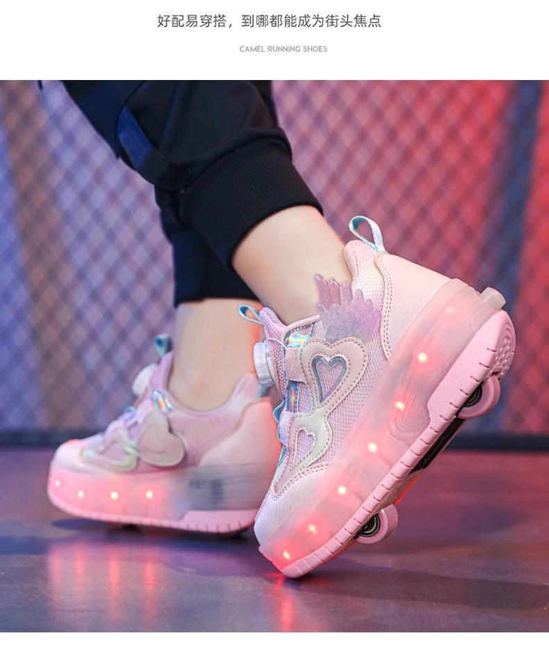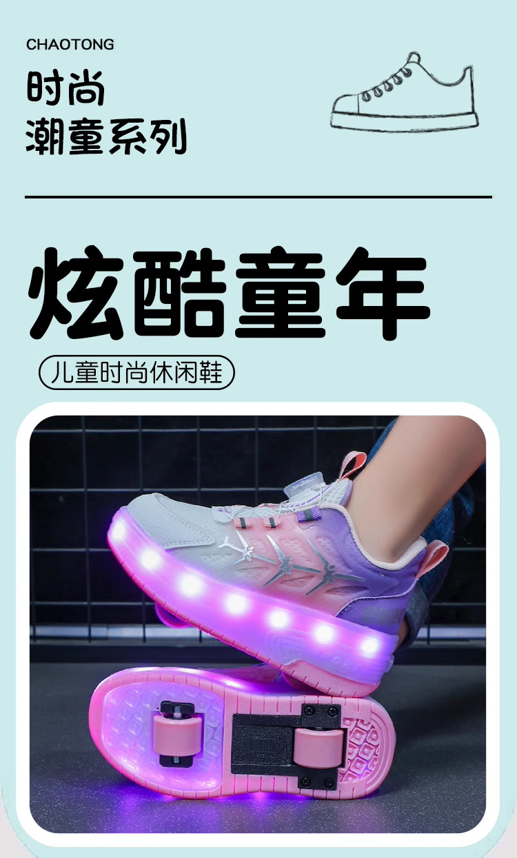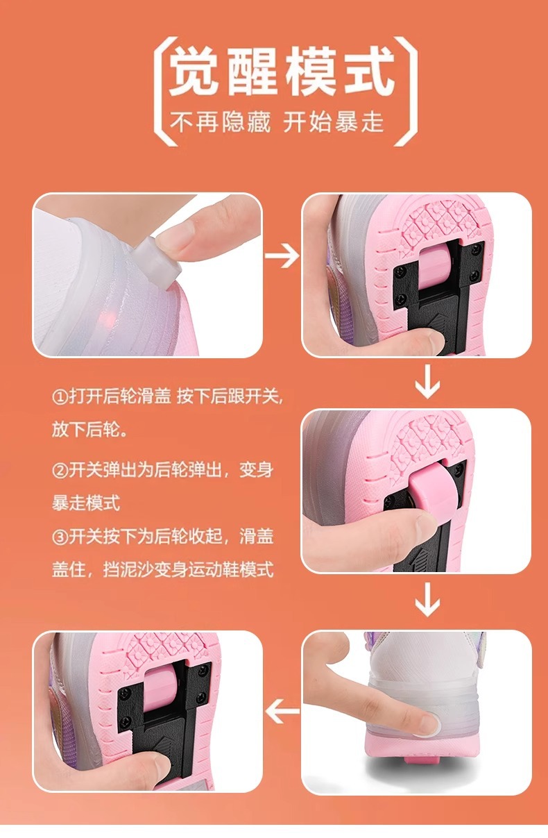 学生暴走鞋两轮代闪光轮滑鞋子厂家直销女童网面暴走鞋实体批发