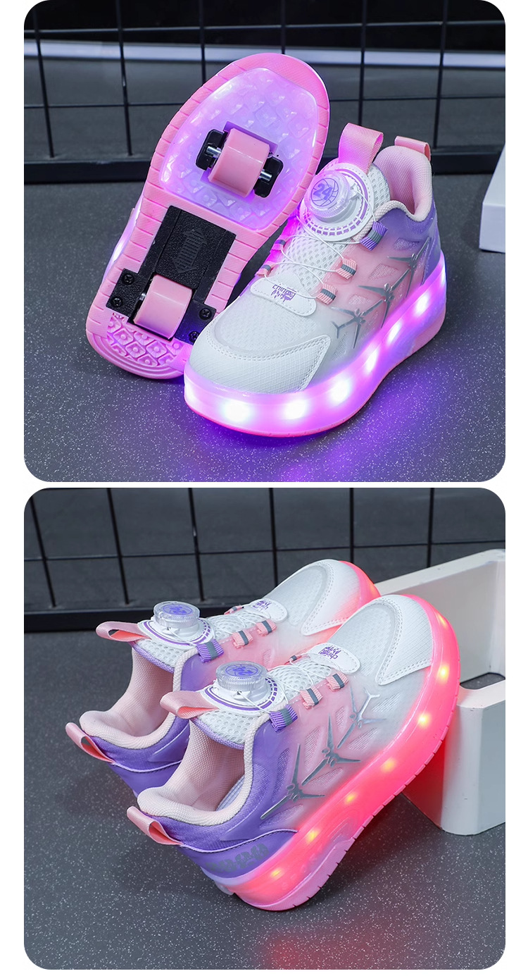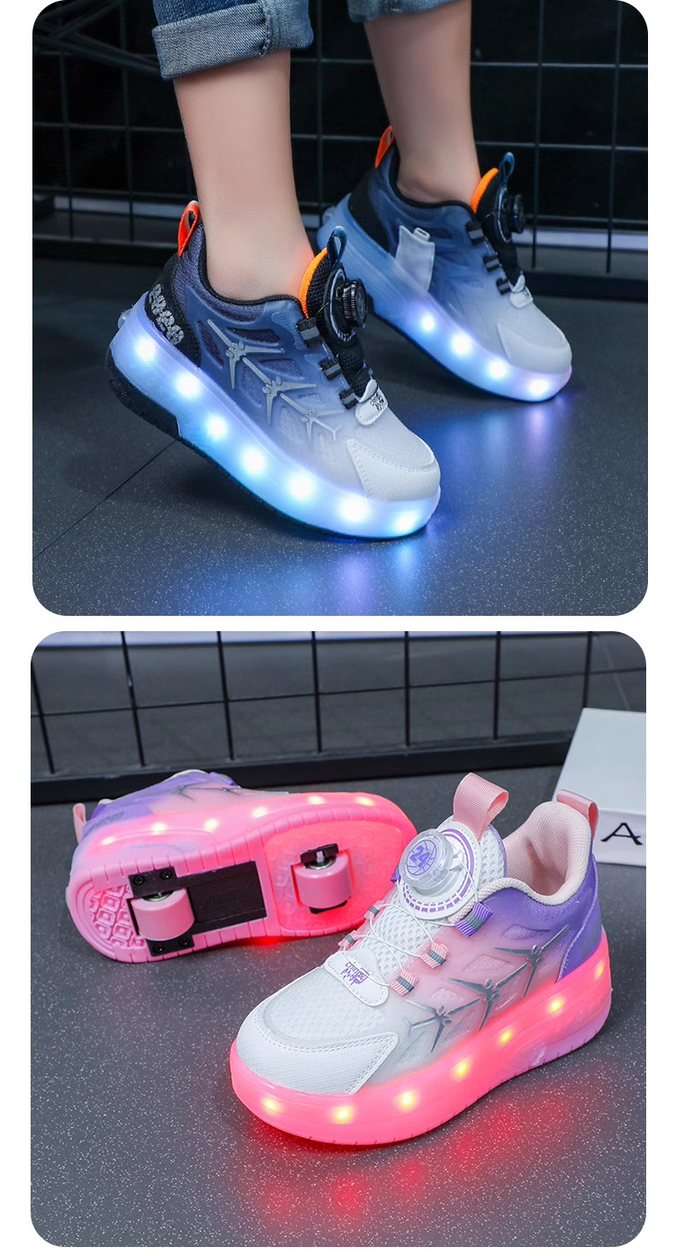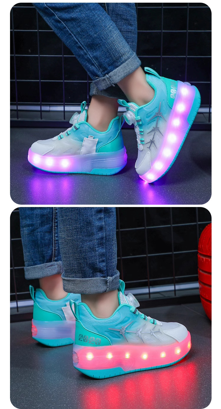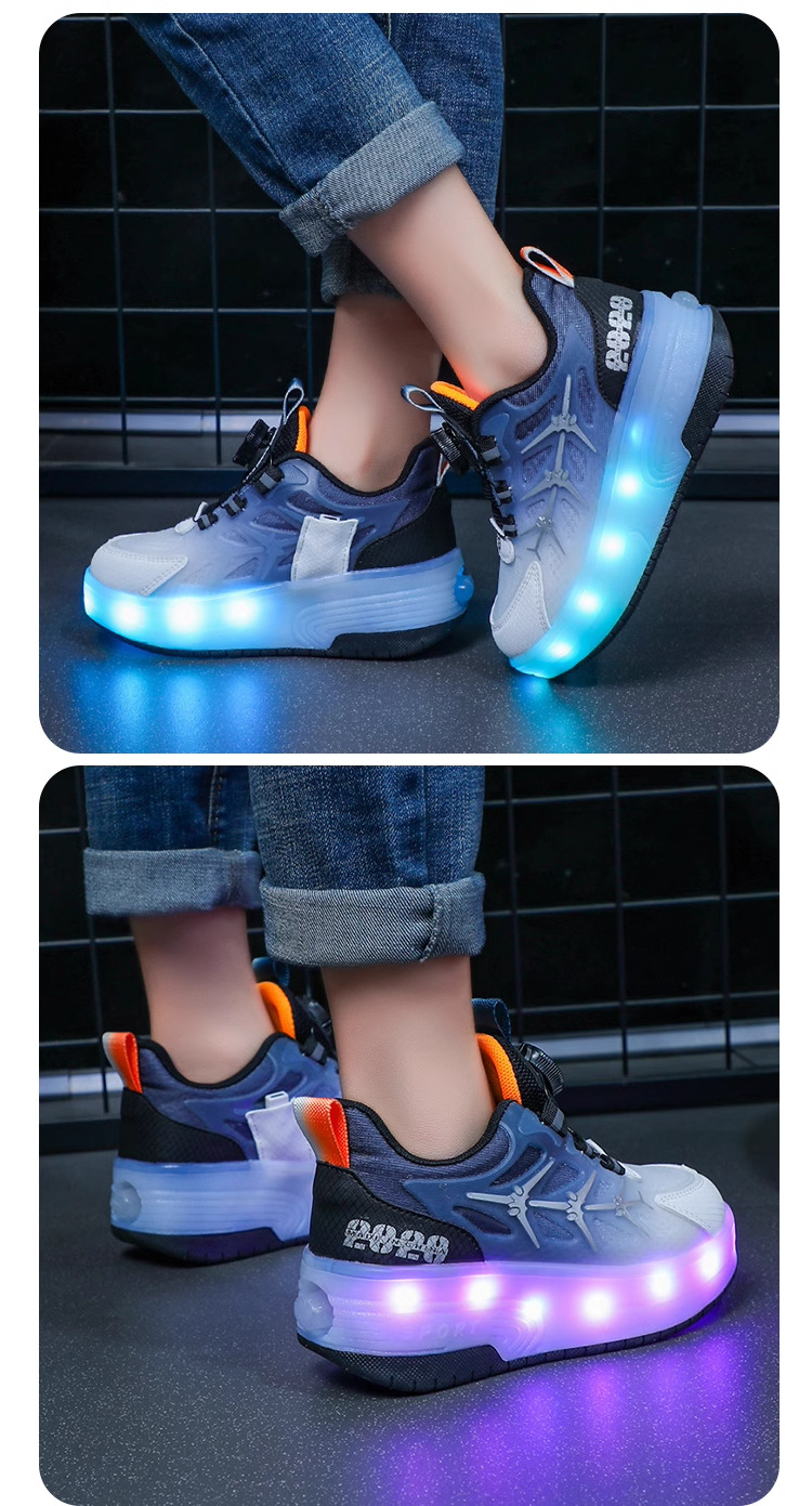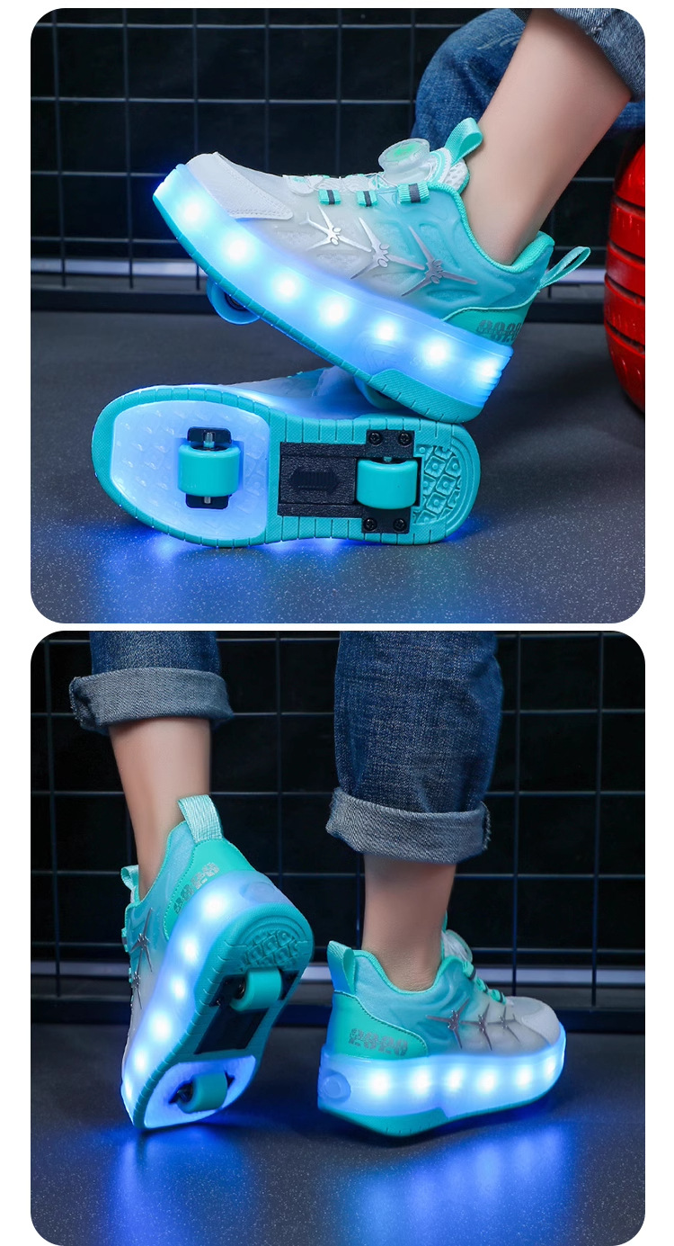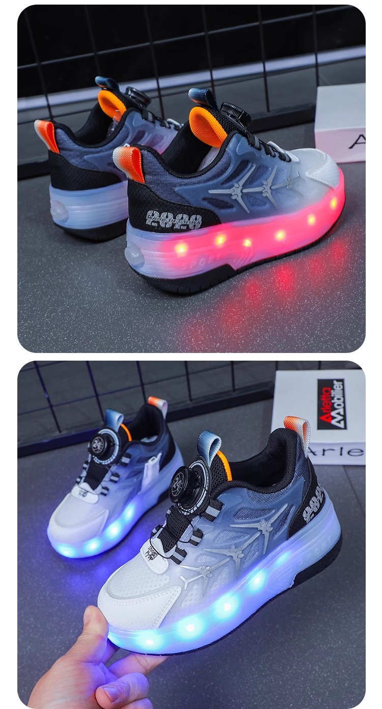 学生暴走鞋两轮代闪光轮滑鞋子厂家直销女童网面暴走鞋实体批发