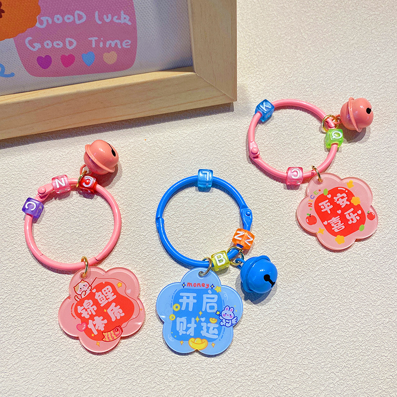 可爱花型文字寓意牌钥匙扣创意精致女汽车钥匙链挂件包包挂饰批发