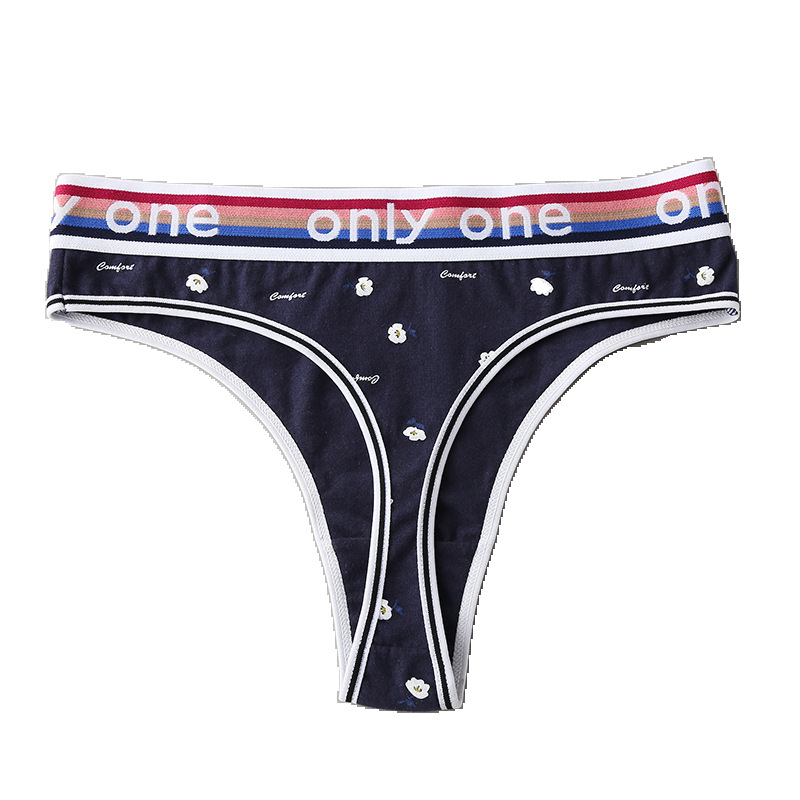 性感女士丁字裤棉彩条字母内裤运动T裤无痕舒适柔软内裤女