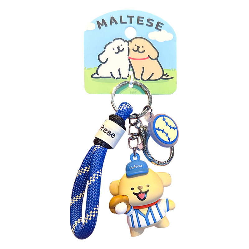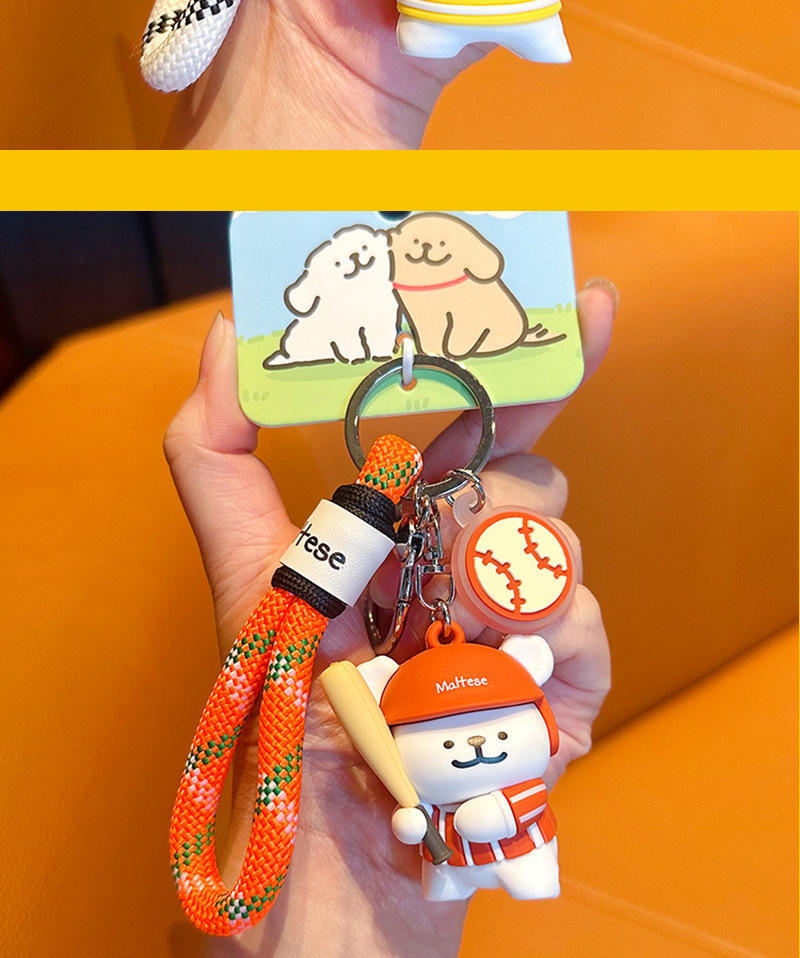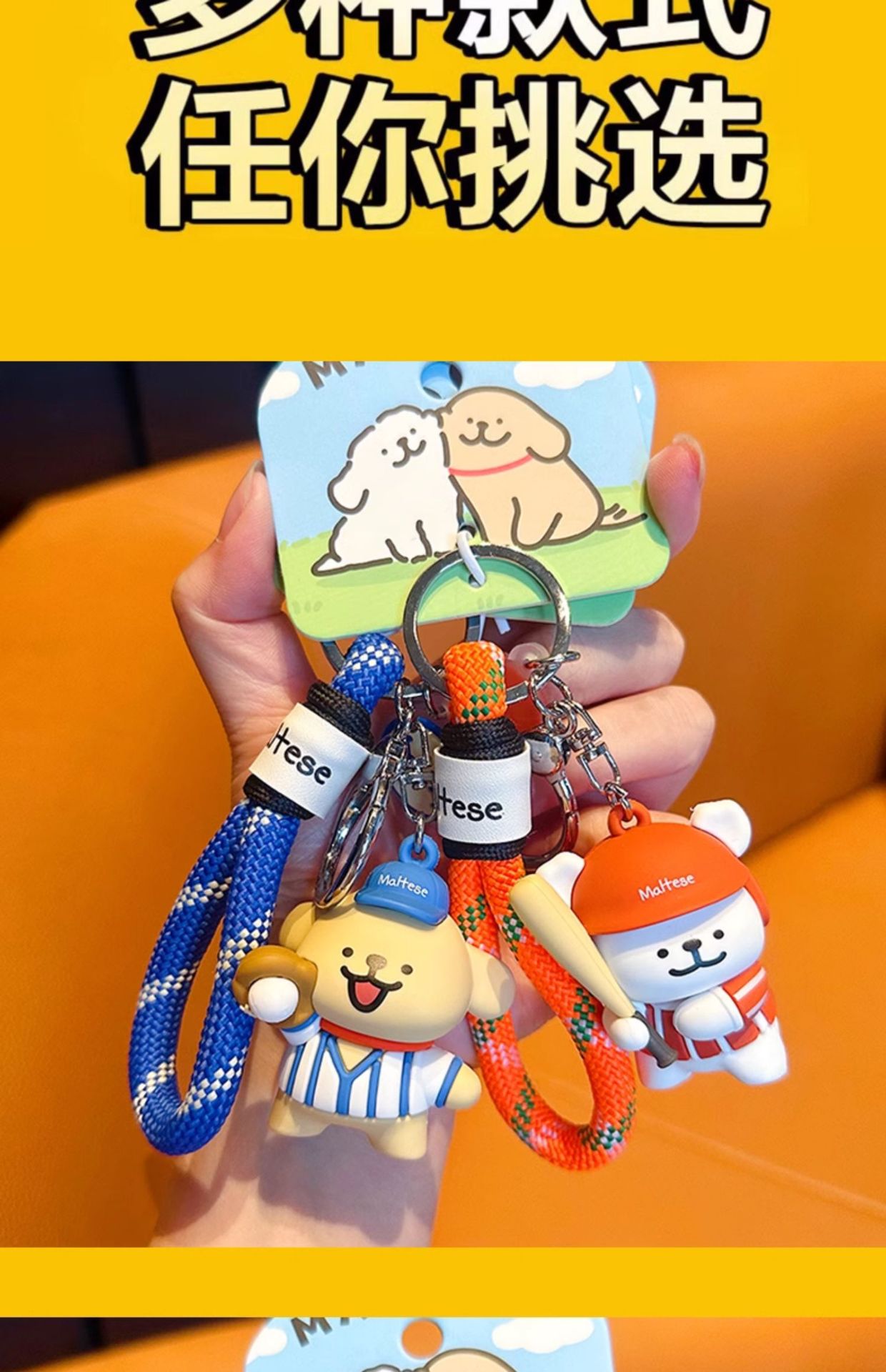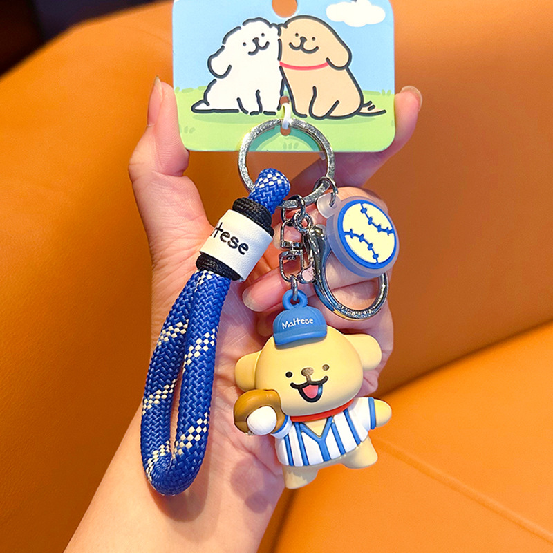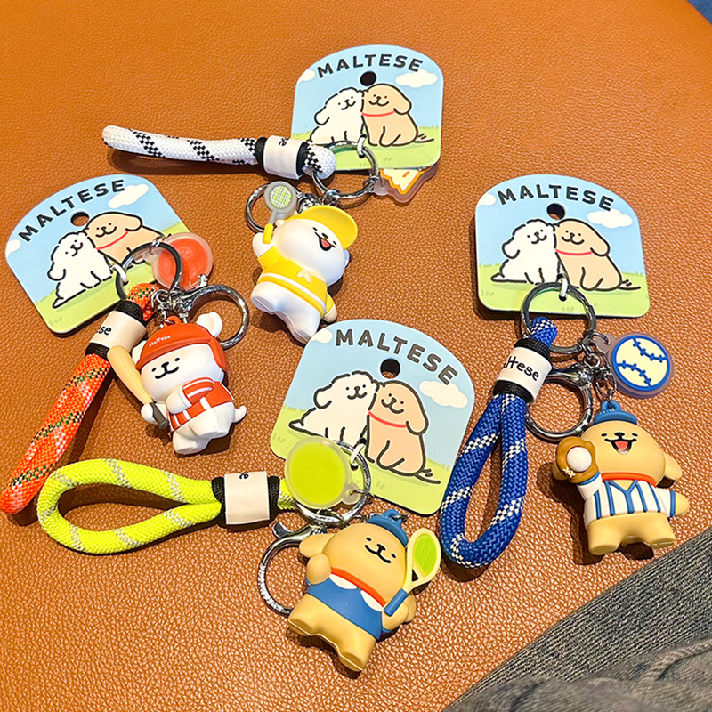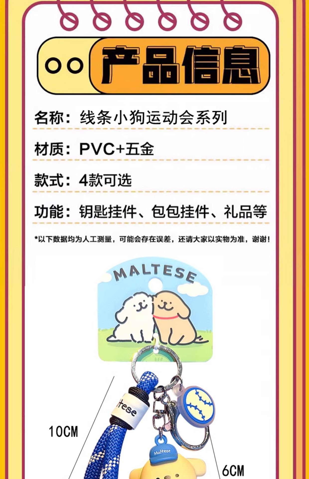正版线条小狗运动会钥匙扣棒球羽毛球可爱卡通背包挂饰情侣钥匙链