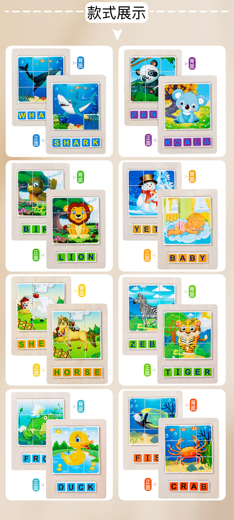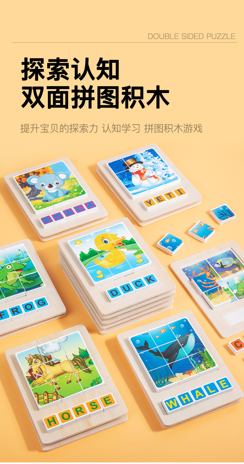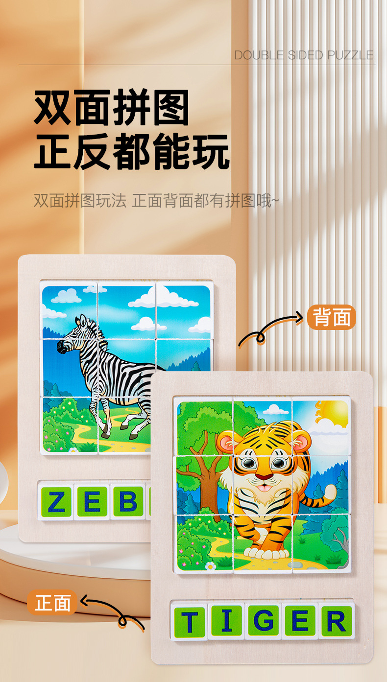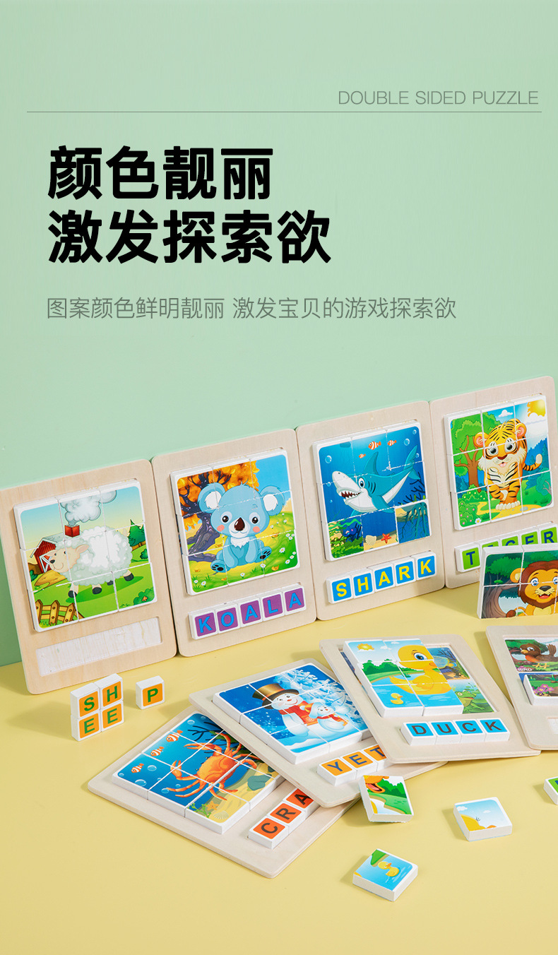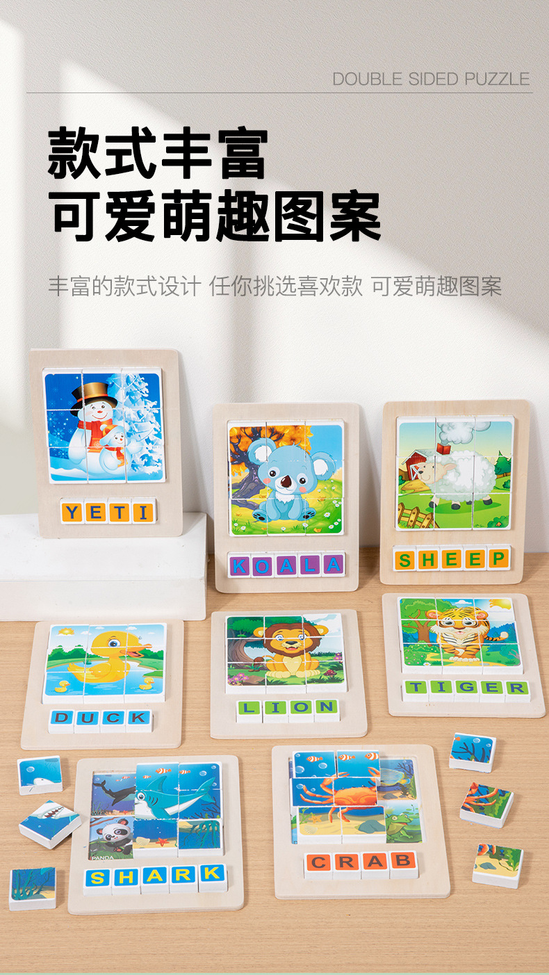 儿童木质卡通动物拼板9片幼儿园宝宝早教益智双面拼图积木小玩具