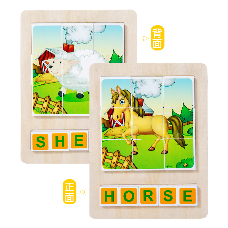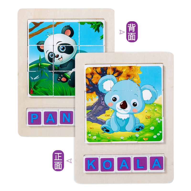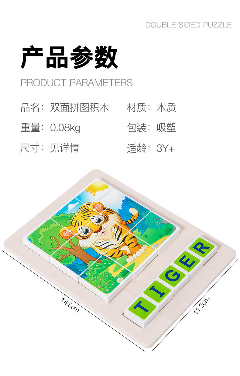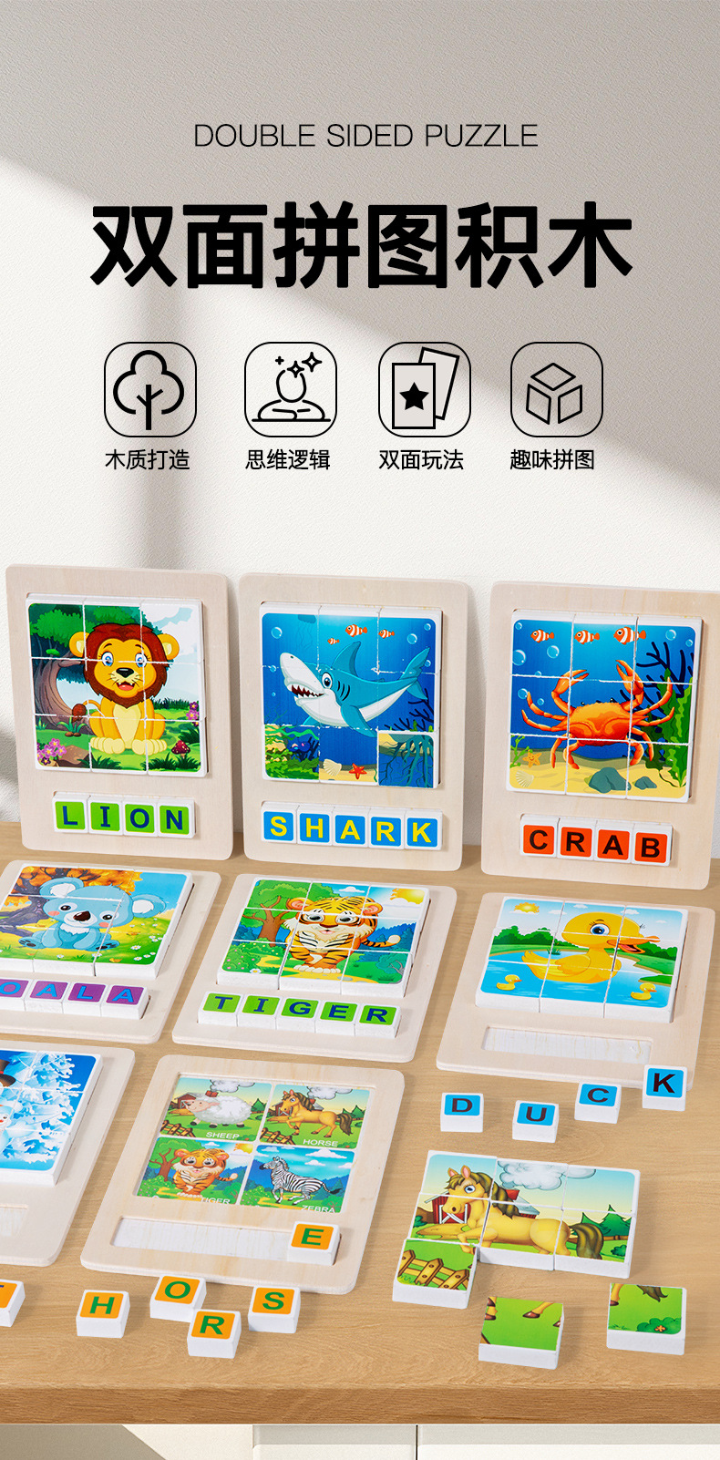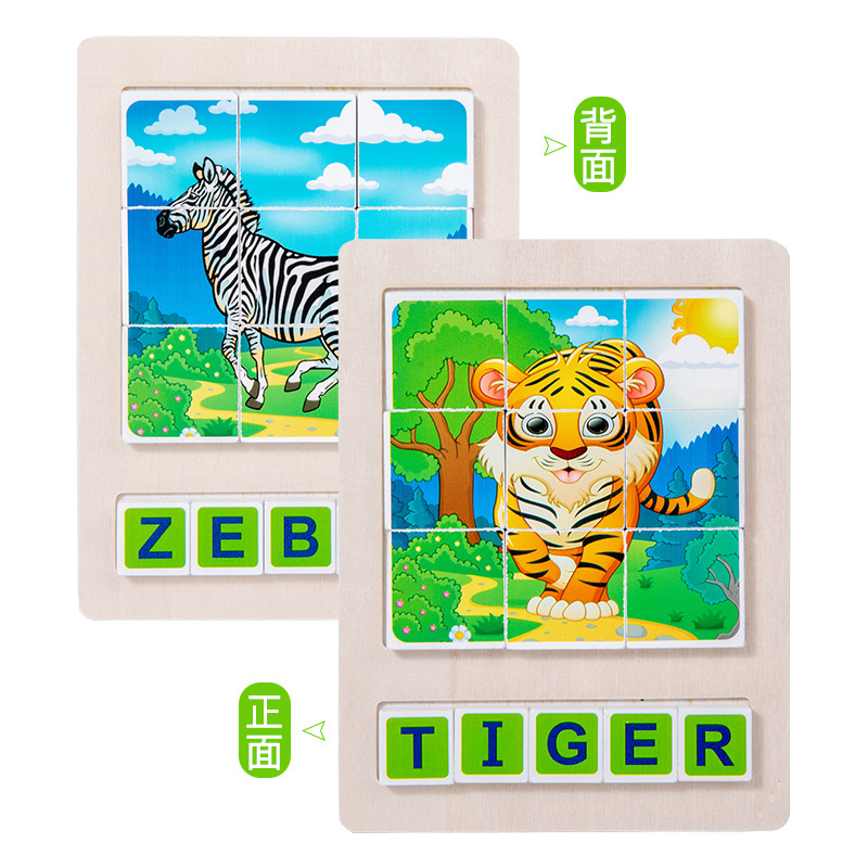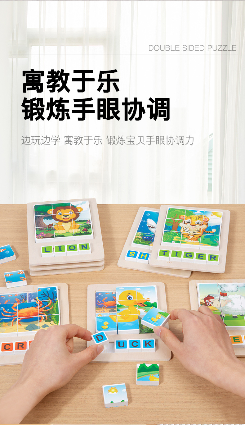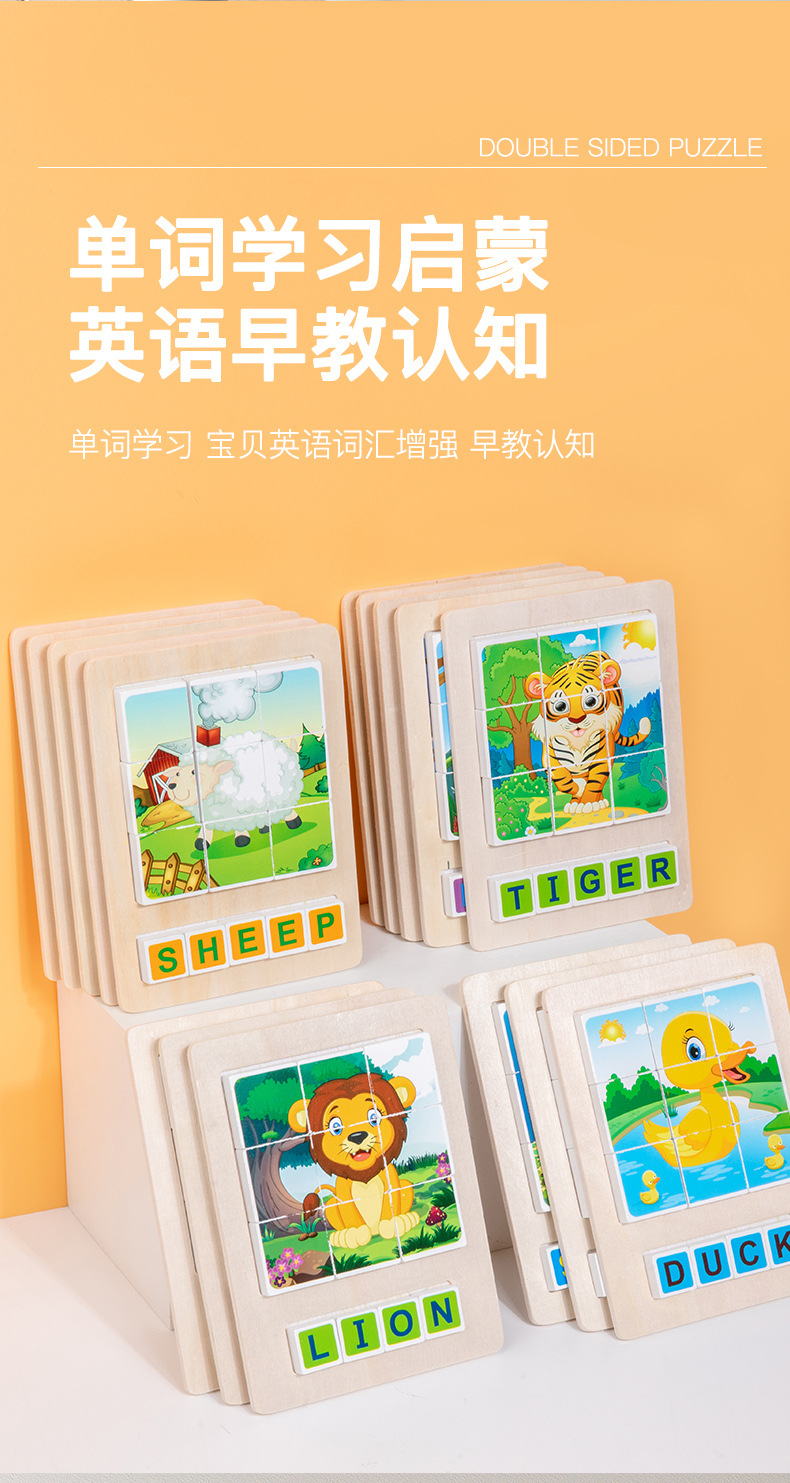 儿童木质卡通动物拼板9片幼儿园宝宝早教益智双面拼图积木小玩具