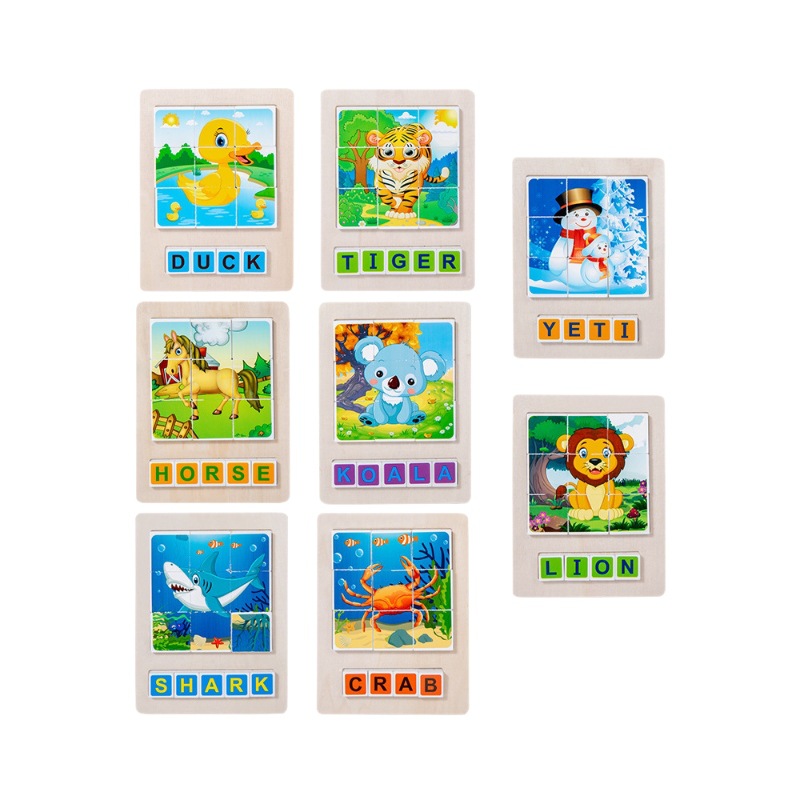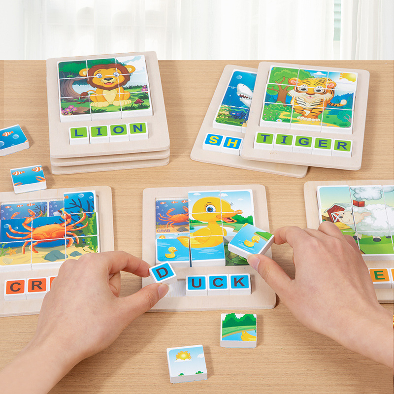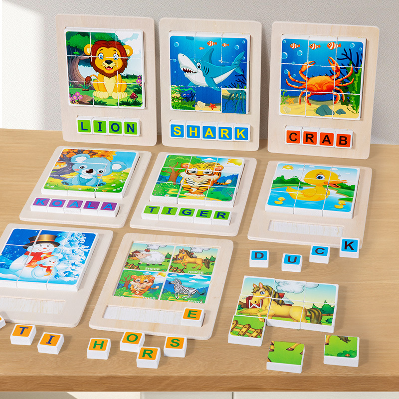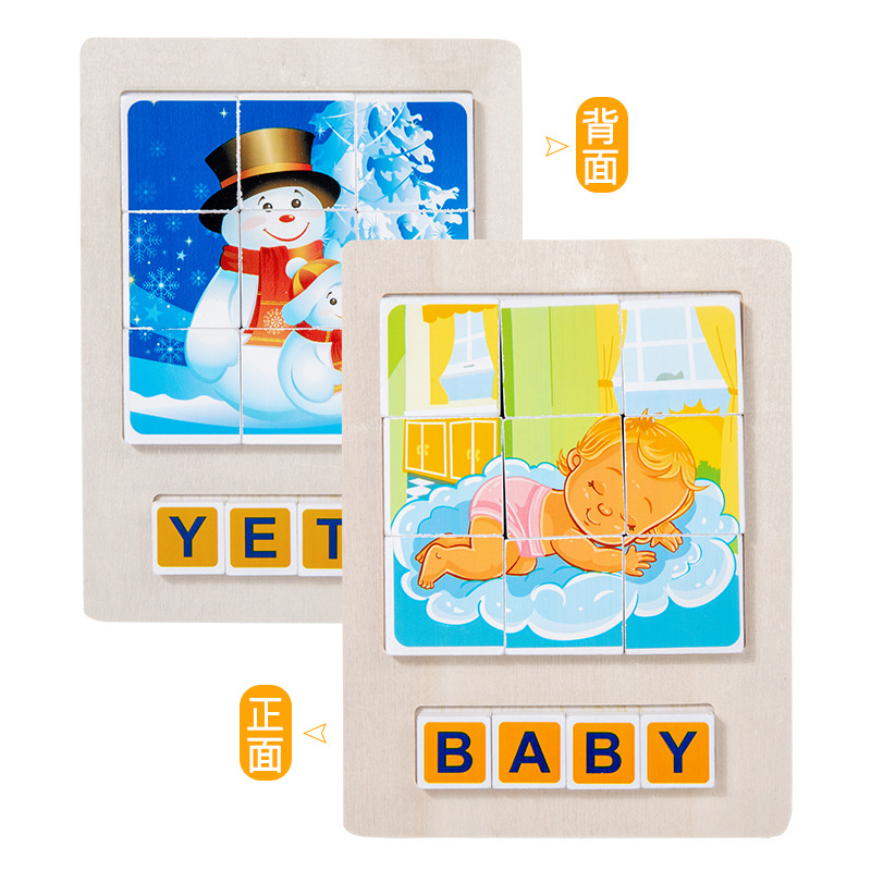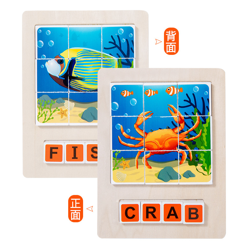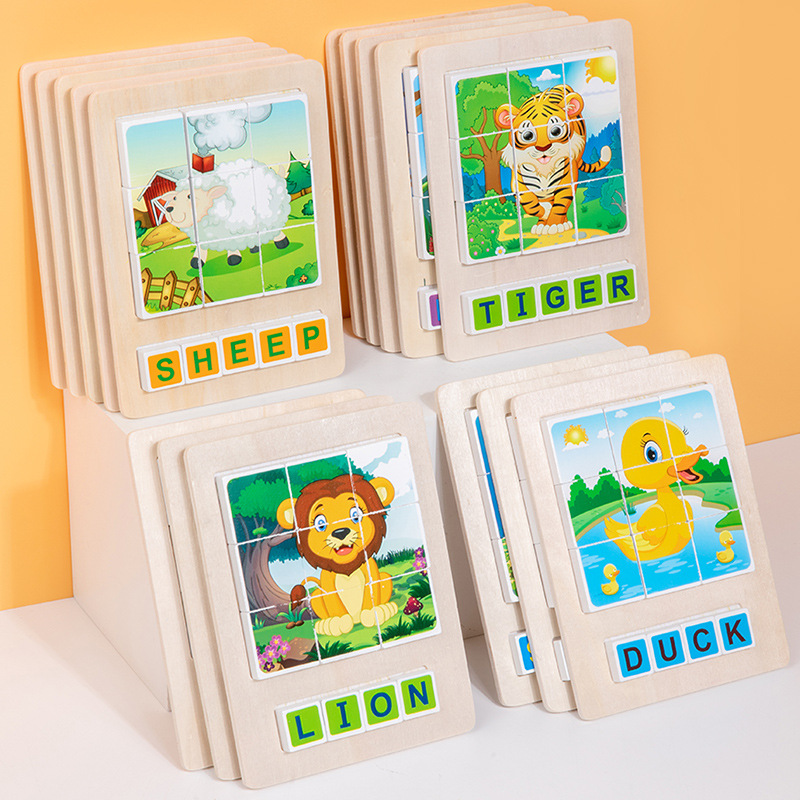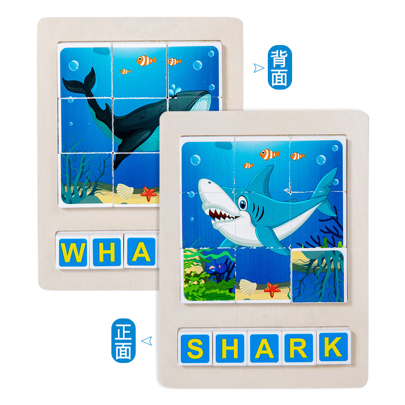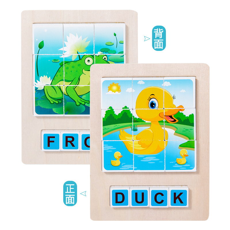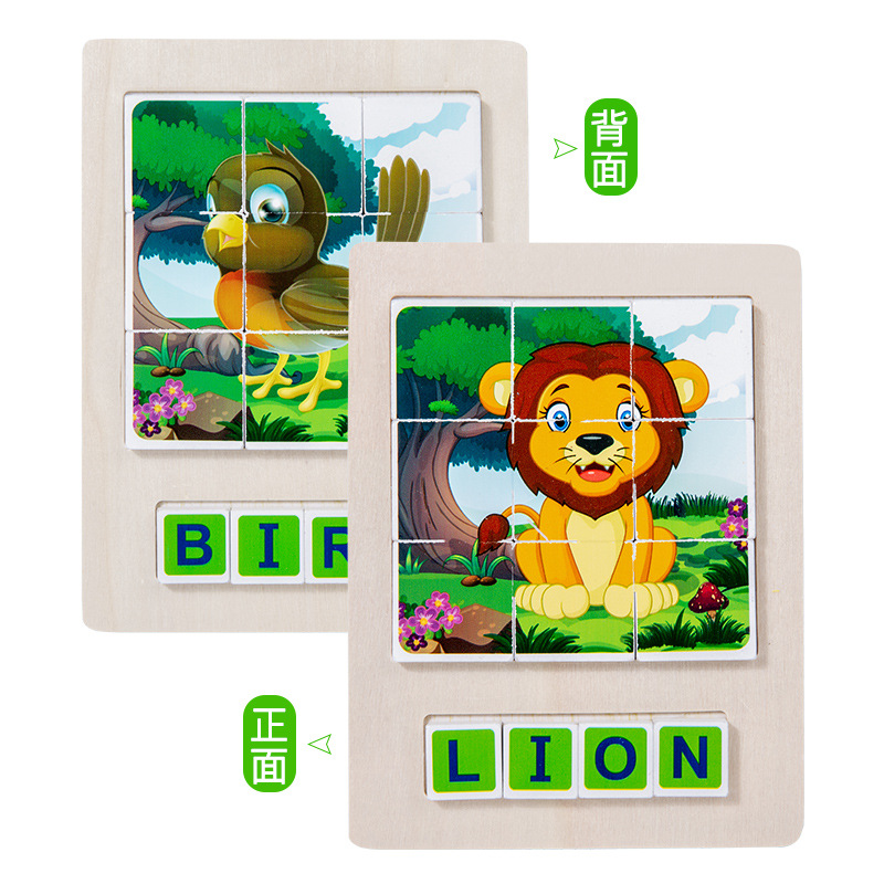 儿童木质卡通动物拼板9片幼儿园宝宝早教益智双面拼图积木小玩具