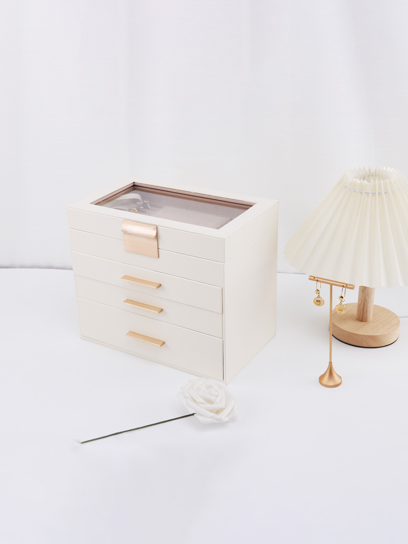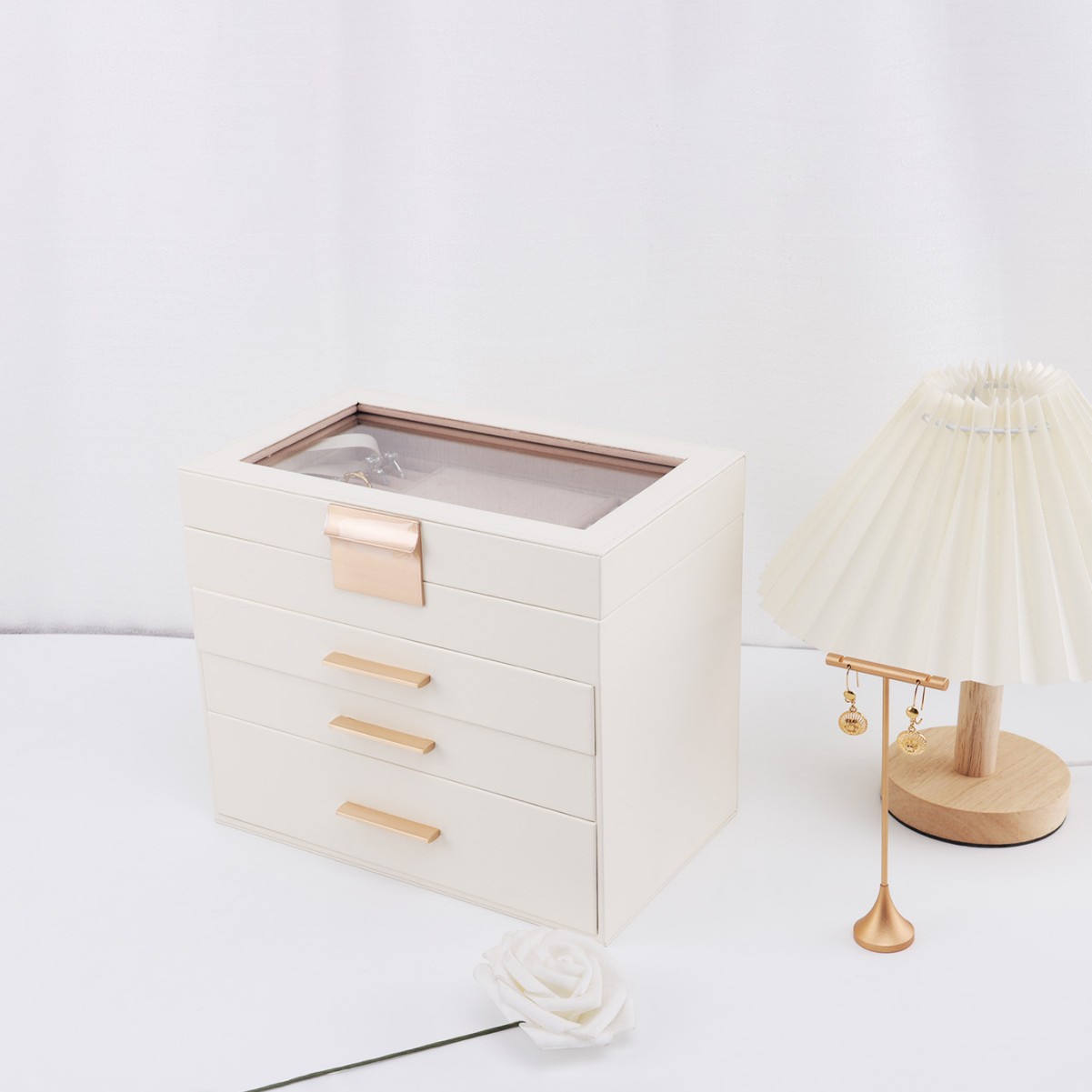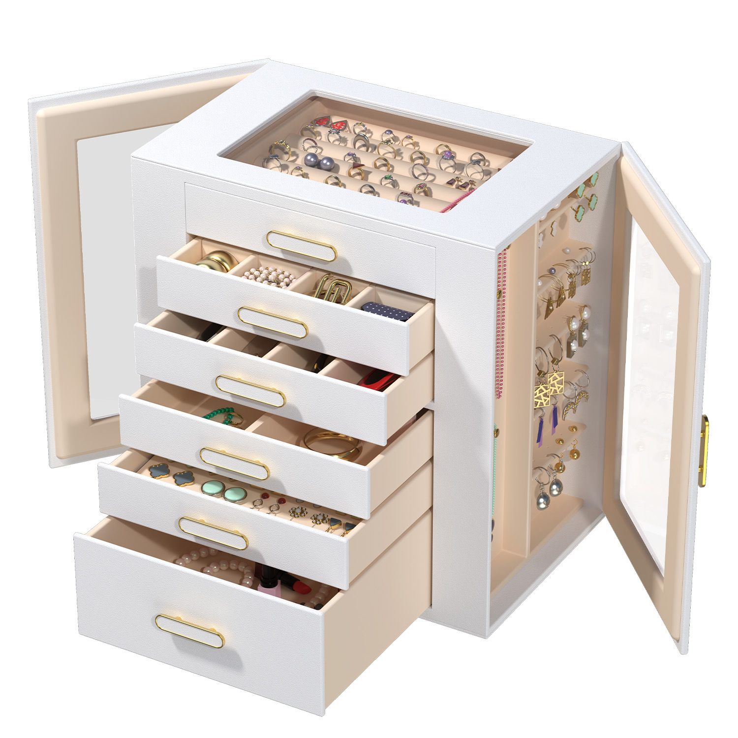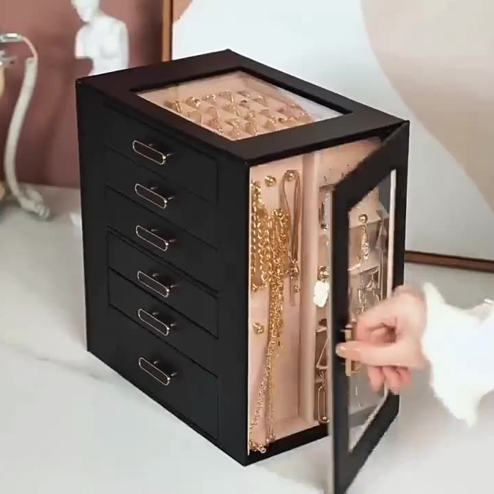 原创设计母亲节生日礼物精致皮质透明首饰盒6层耳钉收纳盒代发
