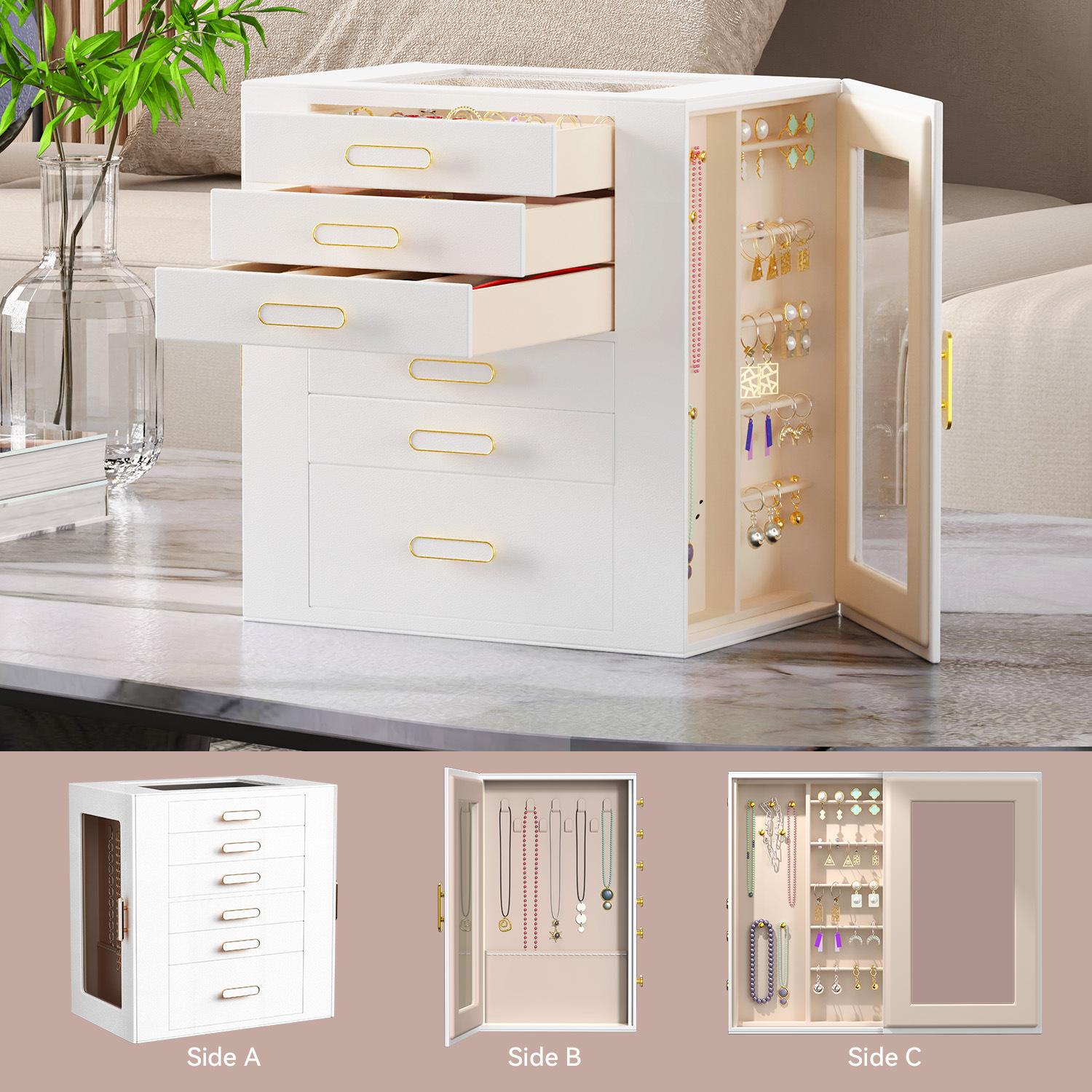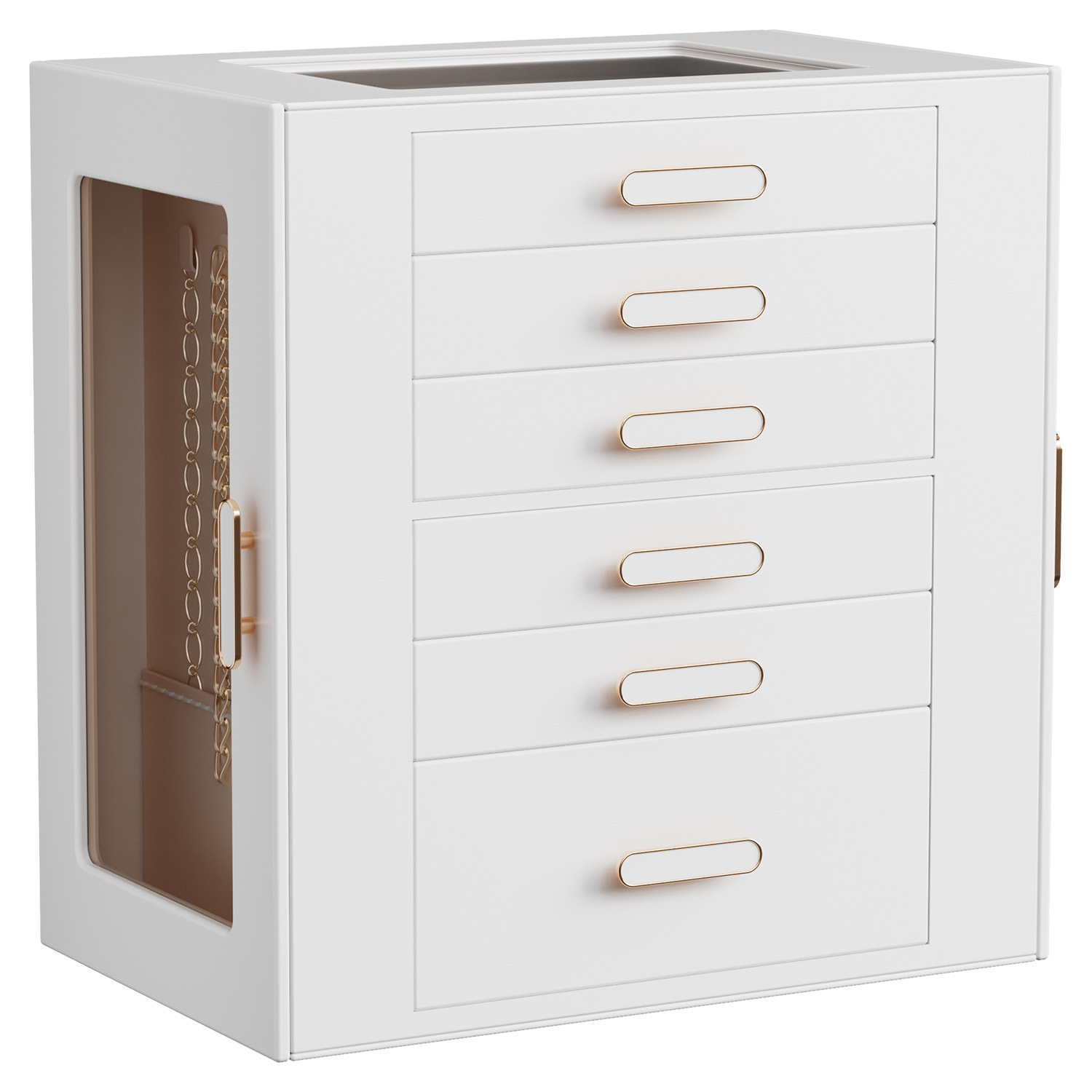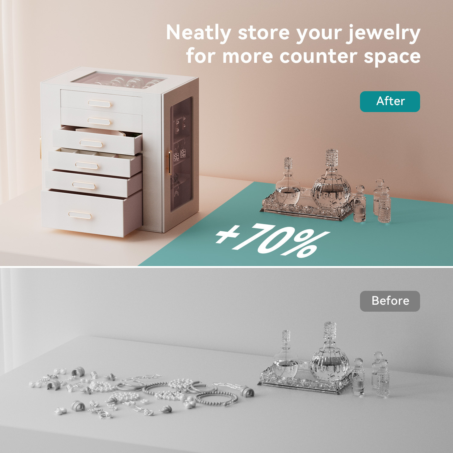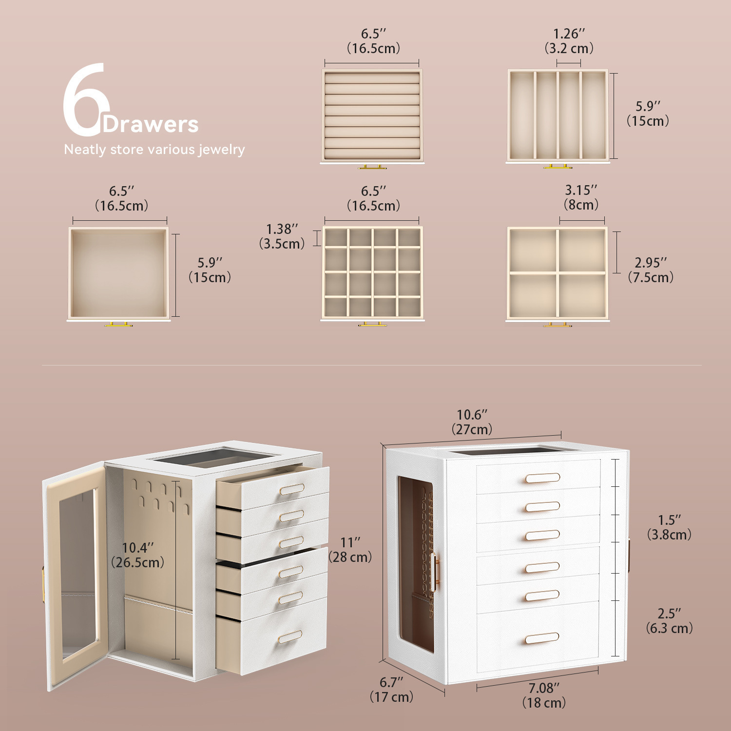 原创设计母亲节生日礼物精致皮质透明首饰盒6层耳钉收纳盒代发