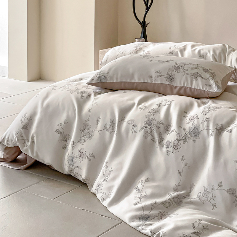 60支兰精天丝四件套新中式复古花卉夏季冰丝凉感床笠被套床品套装