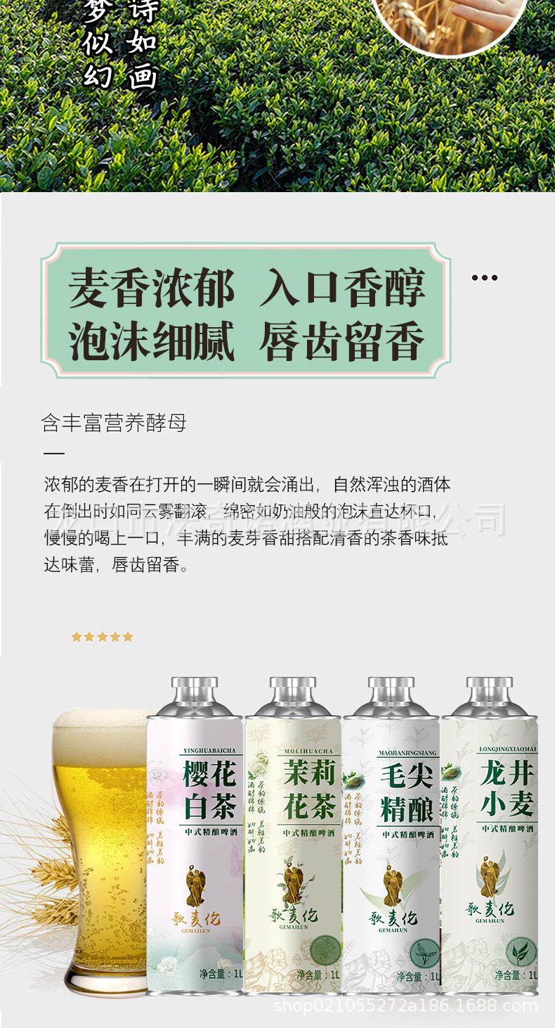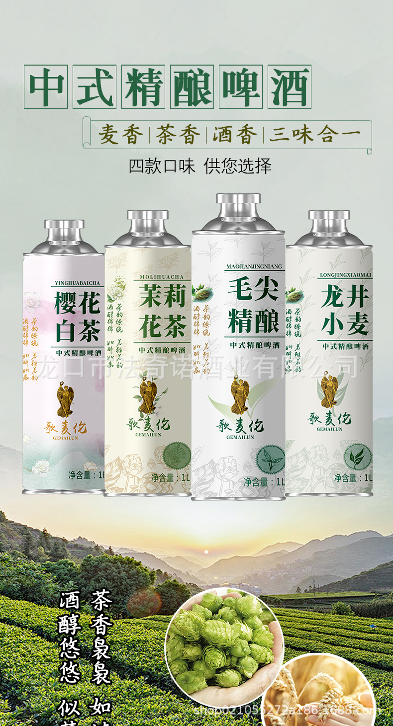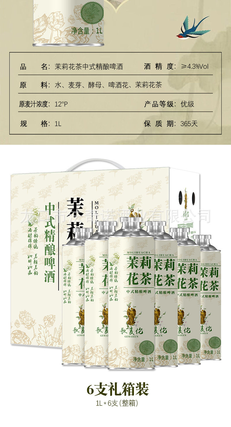茉莉花啤酒中式精酿茶啤1L*6罐装正宗精酿啤酒风味现货茶香
